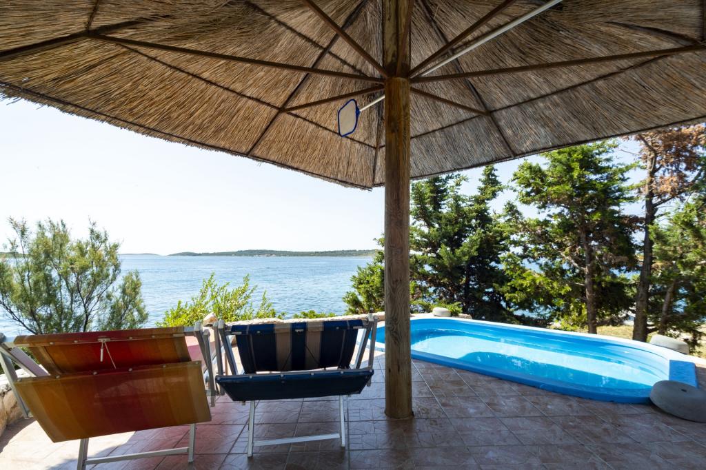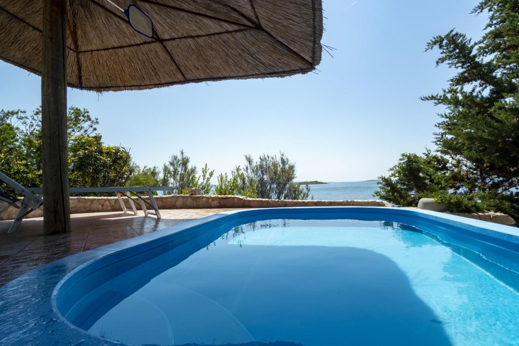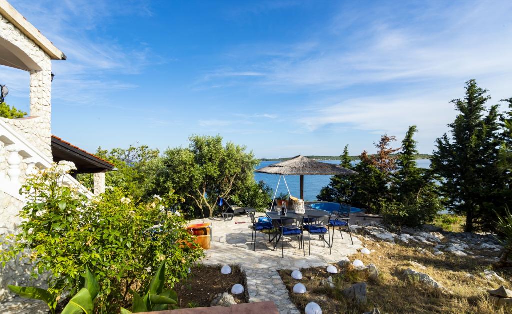 Villa Spider pro 8 osob se nachází na ostrově Žižanj (hned za Pasmanem) a 30 minut od národního parku Kornati. Pozemek má rozlohu 4500 m2 a nabízí možnost exkluzivní a romantické dovolené pro turisty, kteří milují klid, klid a soukromí. První soused je asi 400 metrů daleko. K dispozici je soukromá kamenná pláž se soukromým molem a pro děti a neplavce je menší bazén s mořskou vodou a velký slaměný deštník. Dům má 3 ložnice, dvě s manželskou postelí a jednu se 4 samostatnými lůžky a obývací pokoj s rozkládací pohovkou. Dům má solární elektřinu, která zásobuje 2 chladničky a tekoucí vodou z nádrže. Rustikální obezděná kuchyně je propojena s obývacím pokojem, kde se nachází krb. Na velké kryté terase je stůl na obědy a karty. Venkovní gril se nachází na jedné ze 4 teras.