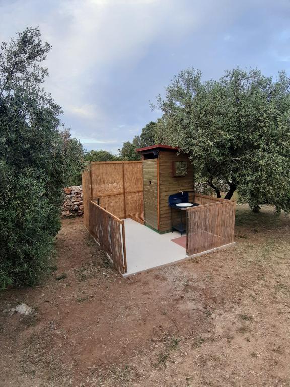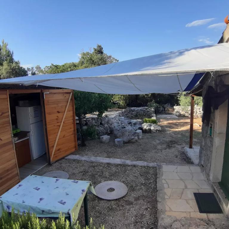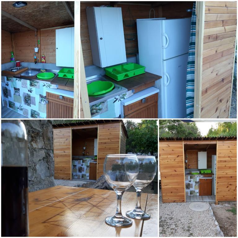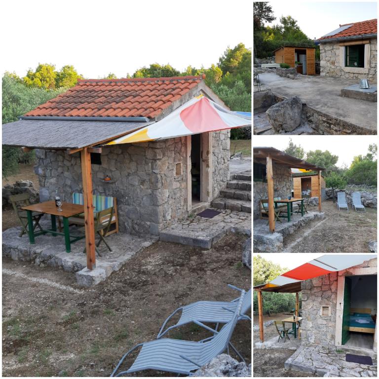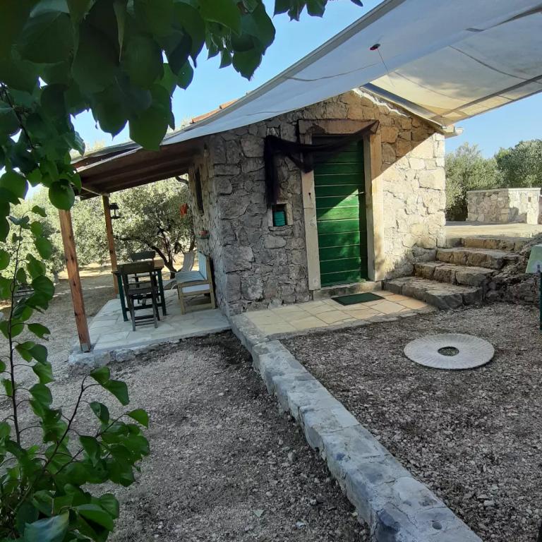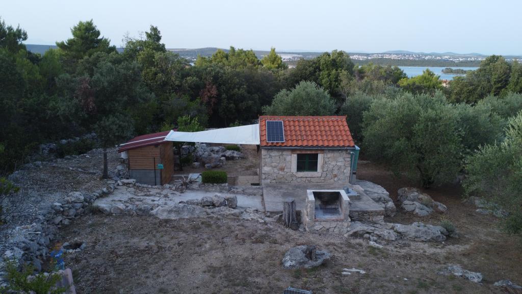 Dům se nachází na severní straně ostrova Pašman, nedaleko města Pašman. Z hlavní silnice, kde můžete zanechat auto, vede k domu 300m nenáročná turistická stezka. Dům s jednou místností 8m2 vybavený minimálním nábytkem. Na severní straně je krytá terasa na ochranu před sluncem a deštěm, zatímco na jižní straně je otevřena pro opalování. Na pozemku 3300 m2 je upravený olivový háj a vinice s několika ovocnými stromy. Elektřina ze solárního systému je 220v pouze pro svícení a nabíjení mobilních telefonů. Je zakázáno používat velkospotřebiče jako topinkovače, rychlovarné konvice, vysoušeče vlasů apod. Kuchyň je samostatná linka od domu, vybavená plynovým sporákem a plynovou lednicí s mrazákem, nádobím a dřezem s tekoucí vodou ohřívaným slunce, nádrž se musí doplnit z cisterny.při spotřebování. Vedle kuchyně je gril na dřevo. 15m od domu je WC, vedle kterého je venkovní sprcha, vodu k ní je potřeba po vypotřebování dolít z nádržky (šetřite vodou).