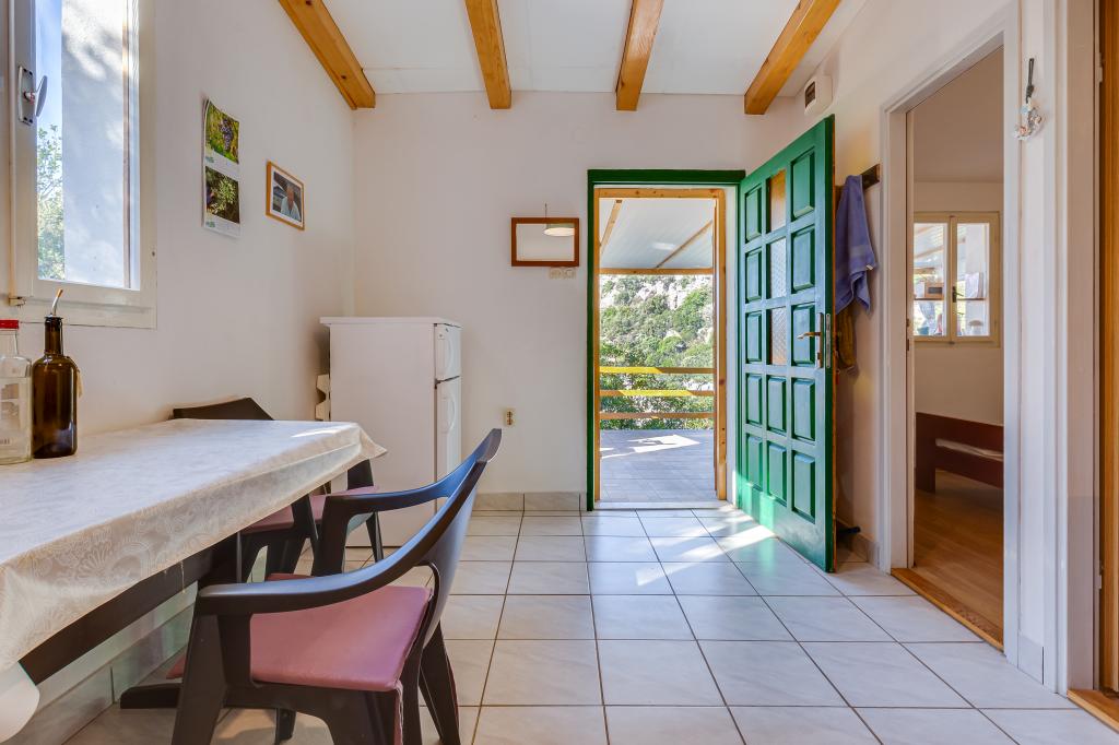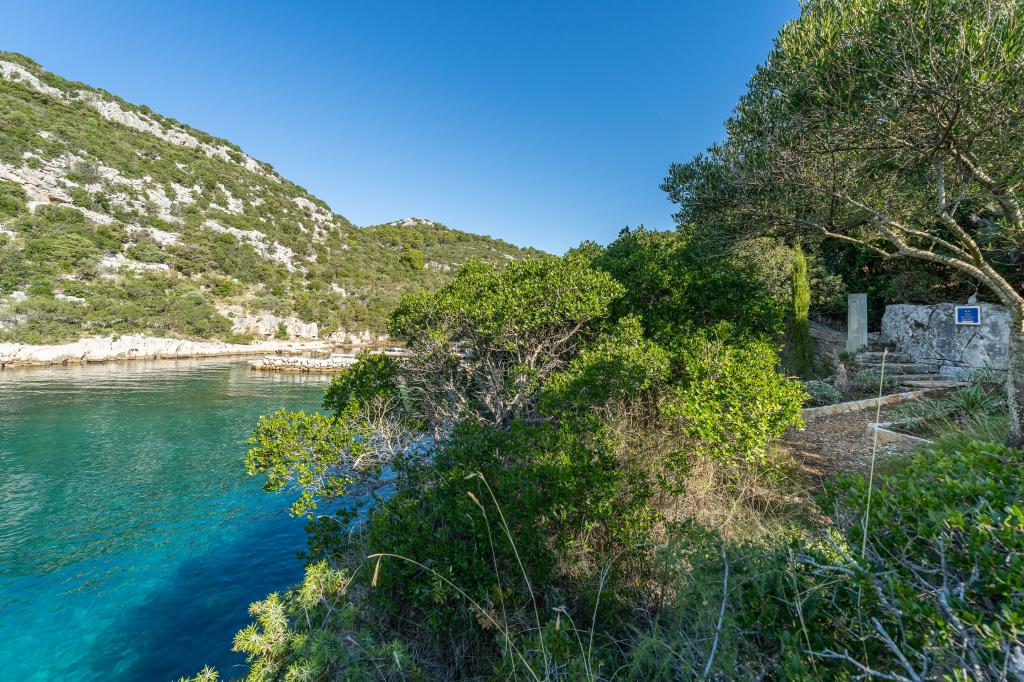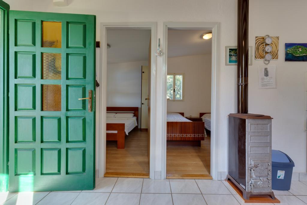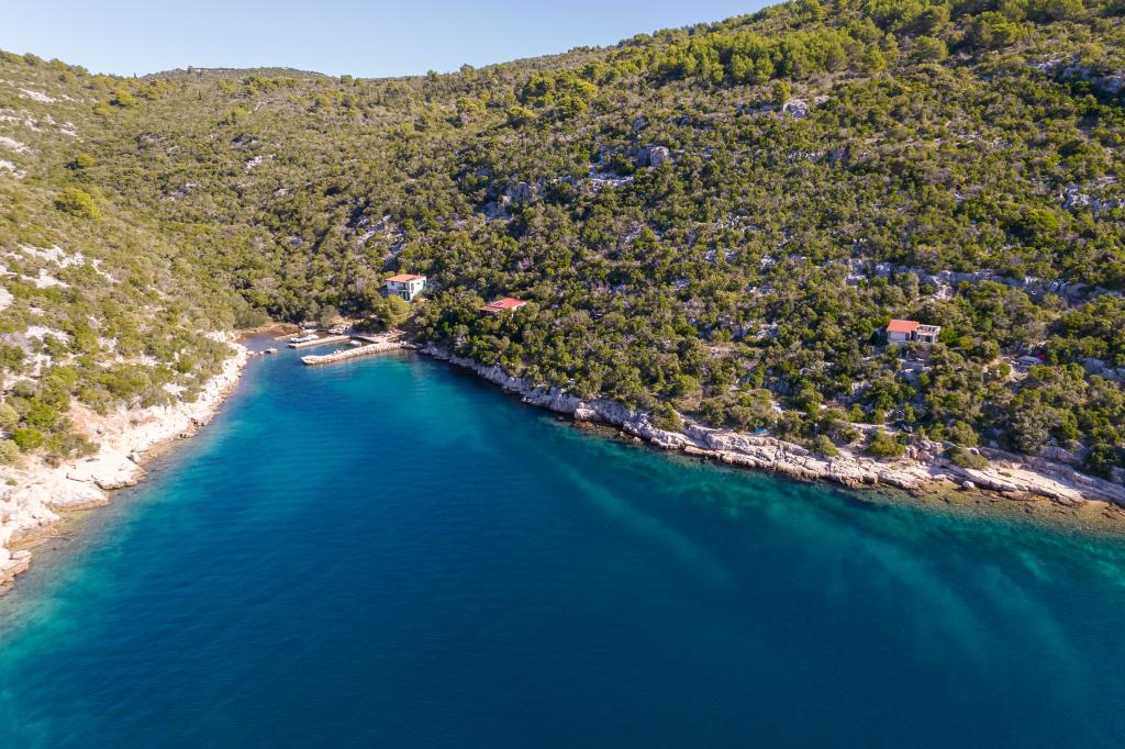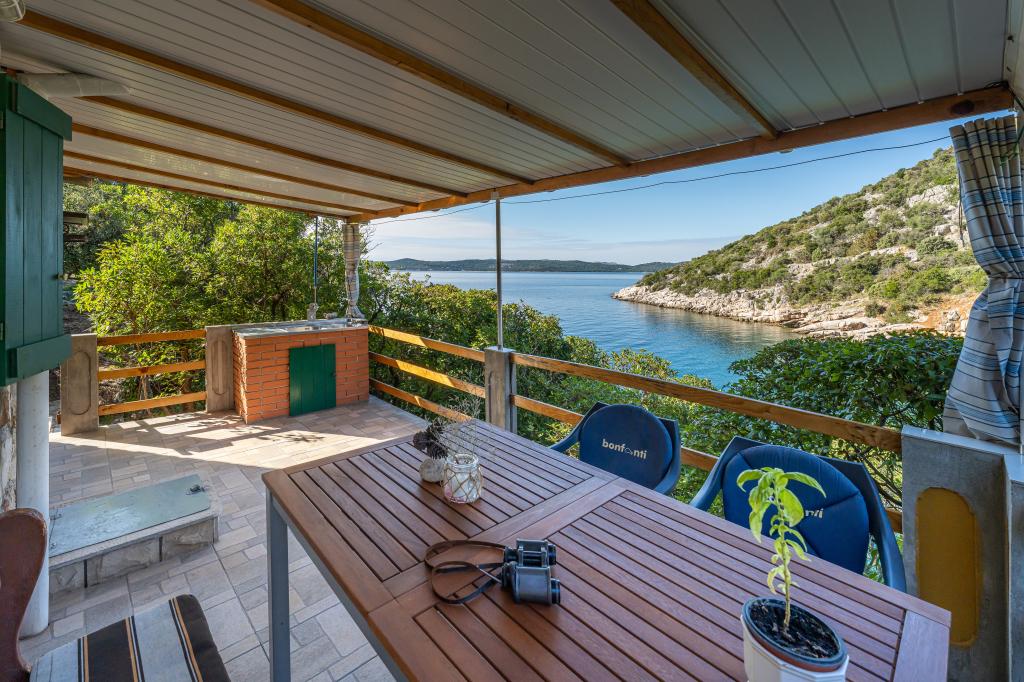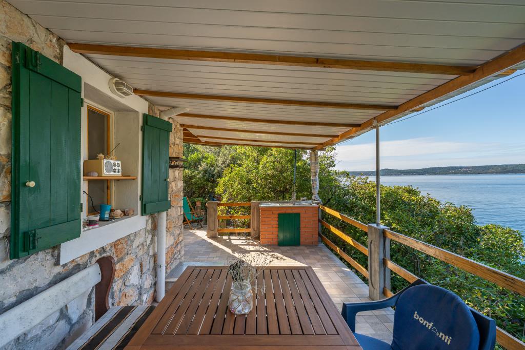 Dům se nachází na ostrově Ugljan v malé chráněné zátoce. Má terasu s výhledem na jihozápad a ostrov Iž. K domu vede cesta a na konci bílé cesty zaparkujete auto a pak máte dalších 10 minut chůze po stezce. V domě je voda a alternativní zdroj energie, t.j. má solární elektřinu na 12 V. Možnost nabíjení malých spotřebičů jako jsou mobilní telefony apod. Dům je ideální pro ubytování 2 osob. Poloha domu je taková, že se v přírodě cítíte zcela svobodně a užíváte si klidnou dovolenou. Pokud máte loď nebo motorový člun, máte také kotviště a pobyt si můžete zorganizovat dle libosti.