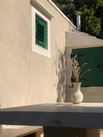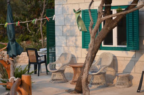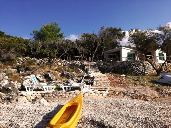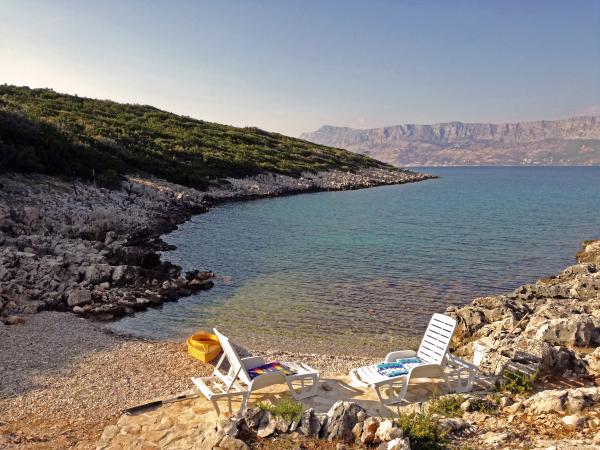 Dům se nachází v odlehlé zátoce Travna na severovýchodní straně ostrova Brač, pár metrů od pobřeží a pláže. Dům má jeden dvoulůžkový pokoj, jeden pokoj s manželskou postelí, galerii na spaní a rozkládací pohovkou, WC se sprchou a kuchyň/obývací pokoj s výhledem na moře a pláž. Kuchyň je vybavena lednicí s mrazničkou a sporákem, v celém objektu je k dispozici bezdrátové připojení k internetu. Dvůr tvoří oplocená terasa s místem k posezení a slunění. Na jedné části terasy je venkovní gril a na opačné straně hřiště je další terasa s kamenným stolem a posezením, které lze využít v odpoledních hodinách ve stínu. Terasa je osvětlená, stejně jako schody vedoucí na pláž. Hosté mají k dispozici i kajak pro 2 osoby.Pučišća je nejblíže k zařízení a nabízí několik obchodů, obchodů a kaváren, stejně jako lékárnu, poštu, bankomat a další každodenní zařízení. Cesta k domu trvá 20 minut