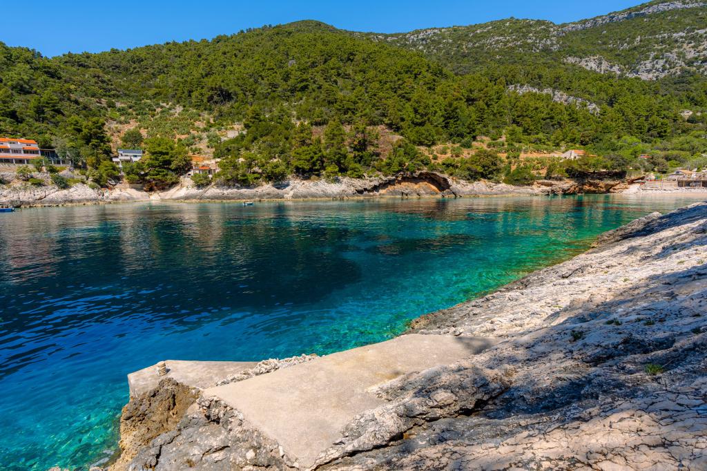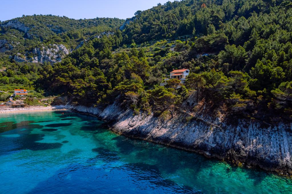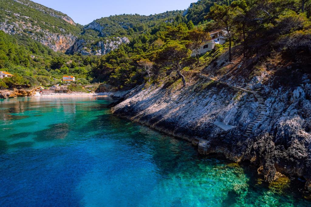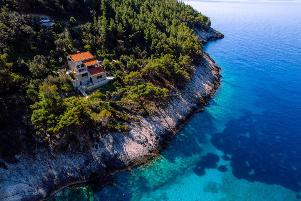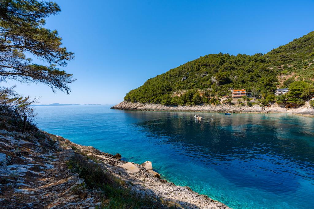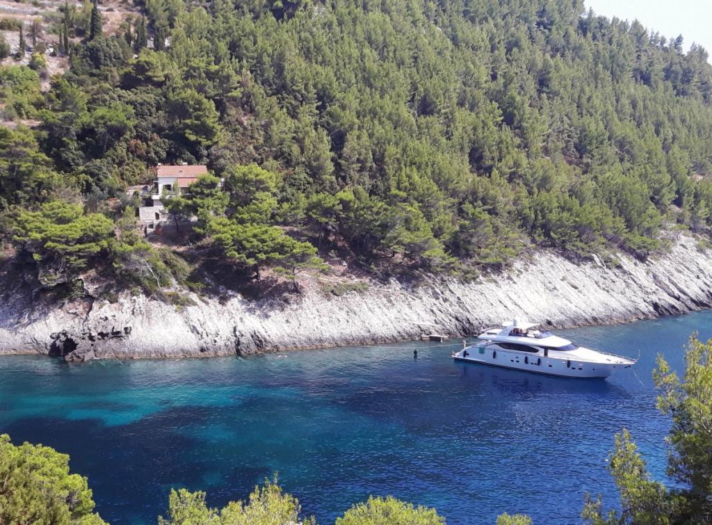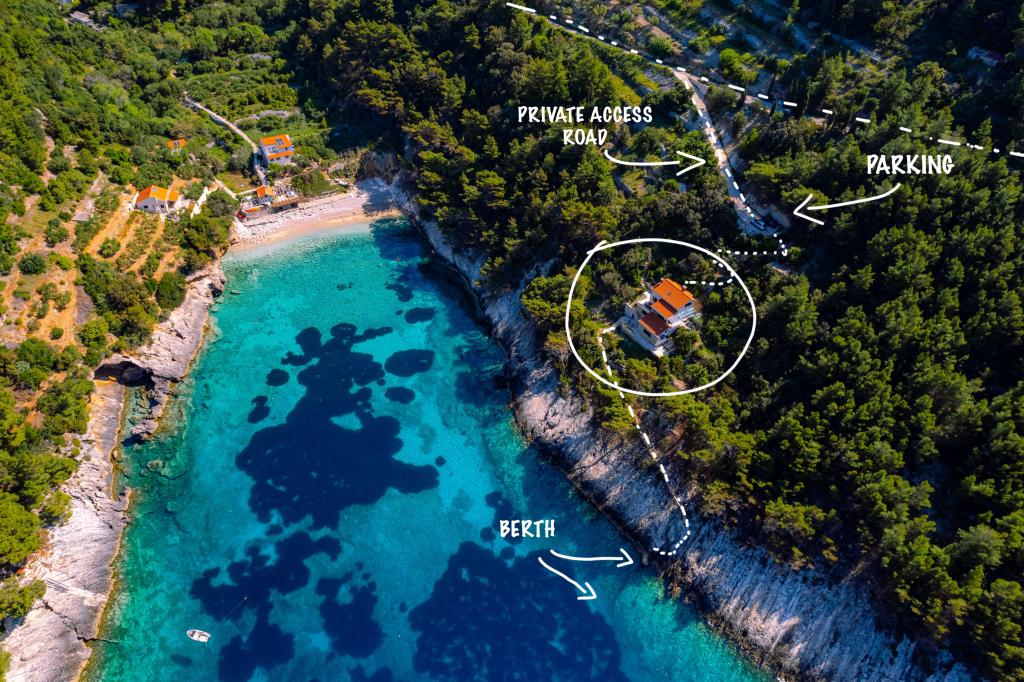 Ze zátoky, která směřuje k ostrovu Lastovo a dále: směrem k Itálii, a která je téměř odříznutá od civilizace, stojí Robinsonův dům. Dům má 4 ložnice (kapacita 8 osob), obývací pokoj, několik teras, 3 koupelny, dvě relativně dobře vybavené kuchyně, venkovní gril. Okolí je strmé, skalnaté a zelené (silná vegetace). V zátoce je krásná oblázková pláž a restaurace. Na druhé straně zálivu je několik dalších domů. Takže nejste úplně sami... Přístup k domu: Hlavní silnice končí, když přijedete na malou úzkou silničku (5 km k domu). po 5 km můžete nechat auto na parkovišti. Odtud vede k domu úzká cesta bujnou vegetací (cca 30m). Pak přichází jedinečný zážitek: krásný výhled a velmi dobře organizovaný a vybavený dům (samozřejmě v možnostech, které Robinsonská oblast umožňuje). Chceme vám představit toto ubytování jako něco jedinečného.