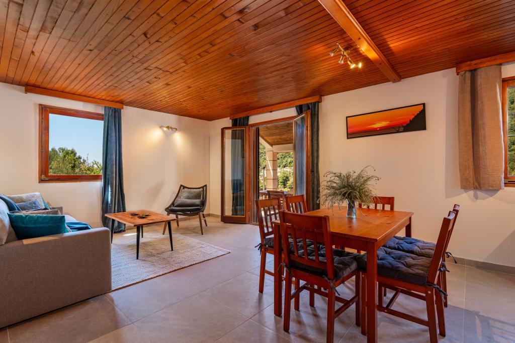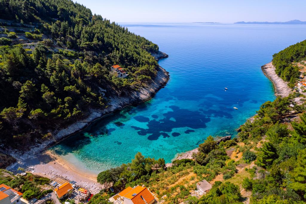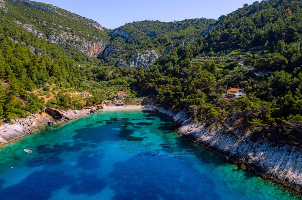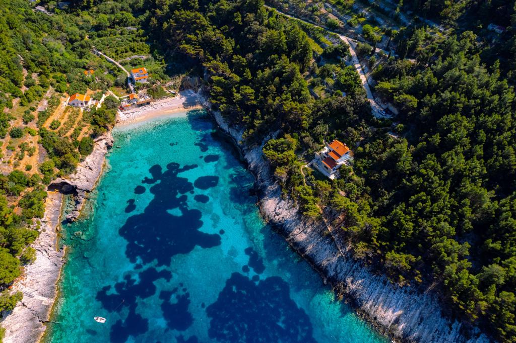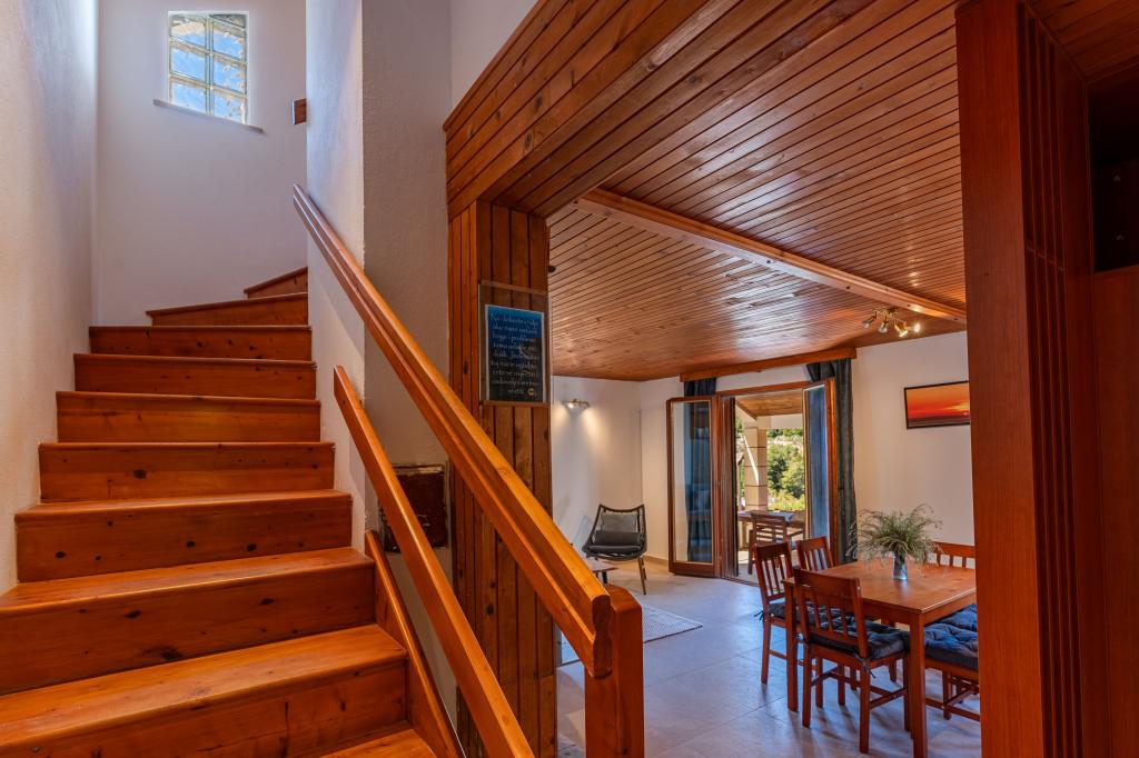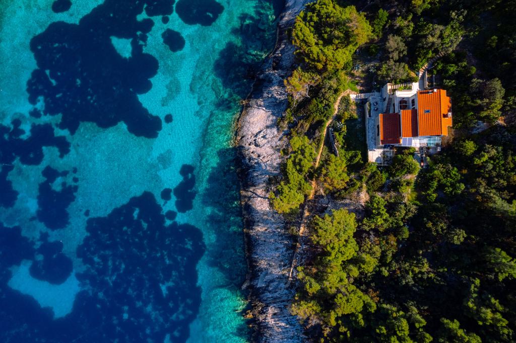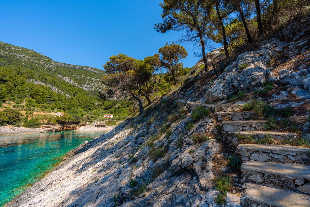 Ze zátoky, která směřuje k ostrovu Lastovo a dále: směrem k Itálii, a která je téměř odříznutá od civilizace, stojí Robinsonův dům. Dům má 4 ložnice (kapacita 8 osob), obývací pokoj, několik teras, 3 koupelny, dvě relativně dobře vybavené kuchyně, venkovní gril. Okolí je strmé, skalnaté a zelené (silná vegetace). V zátoce je krásná oblázková pláž a restaurace. Na druhé straně zálivu je několik dalších domů. Takže nejste úplně sami... Přístup k domu: Hlavní silnice končí, když přijedete na malou úzkou silničku (5 km k domu). po 5 km můžete nechat auto na parkovišti. Odtud vede k domu úzká cesta bujnou vegetací (cca 30m). Pak přichází jedinečný zážitek: krásný výhled a velmi dobře organizovaný a vybavený dům (samozřejmě v možnostech, které Robinsonská oblast umožňuje). Chceme vám představit toto ubytování jako něco jedinečného.