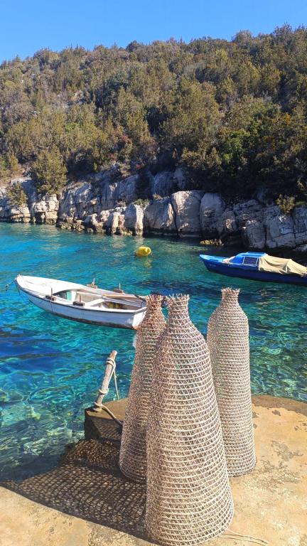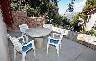 Dům a byty na samotě! Nachází se v zátoce Tatinja na severní straně ostrova Hvar. Dům má dva byty a první patro sestávající ze tří pokojů 2+1,2+1,1+1. K prvnímu sousedovi je to 500 m. Má vodu a elektřinu. Z hlavní silnice je to 1680 m šotolinové a 1 km asfaltové cesty. S autem se dostanete 10 m od bytu i domu. Moře je vzdálené 10 km a je čisté. Jsou zde pláže pro děti. Jsou zde dva byty, jeden je 2+1, má kuchyň, obývací pokoj. obývací pokoj, WC, lednice, vnitřní krb a má velkou terasu s velmi pěkným výhledem na moře. Druhý byt 3+2, sestává z ložnice, obývacího pokoje, kuchyně, WC, má dva balkony a krásný výhled na záliv. Spodní část domu má tři pokoje 2+1, 2+1, 1+1, WC, kuchyň, lednici, vnitřní krb v kuchyni a venkovní krb na grilování, dále pec na chleba. V blízkosti je Vrboska 3 km, Jelsa 5 km, Stari grad 5 km, Hvar 10 km, stejně jako pošta, banka, obchody, kavárny, restaurace a veškerá potřebná občanská vybavenost.