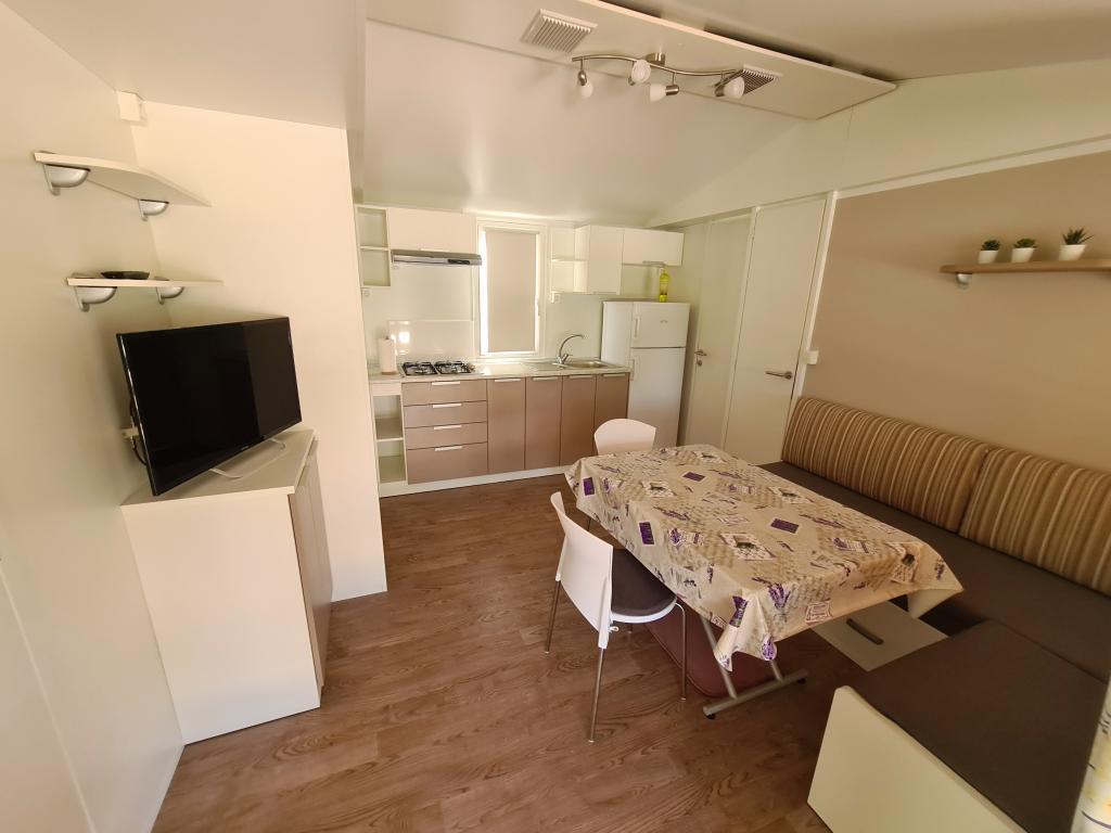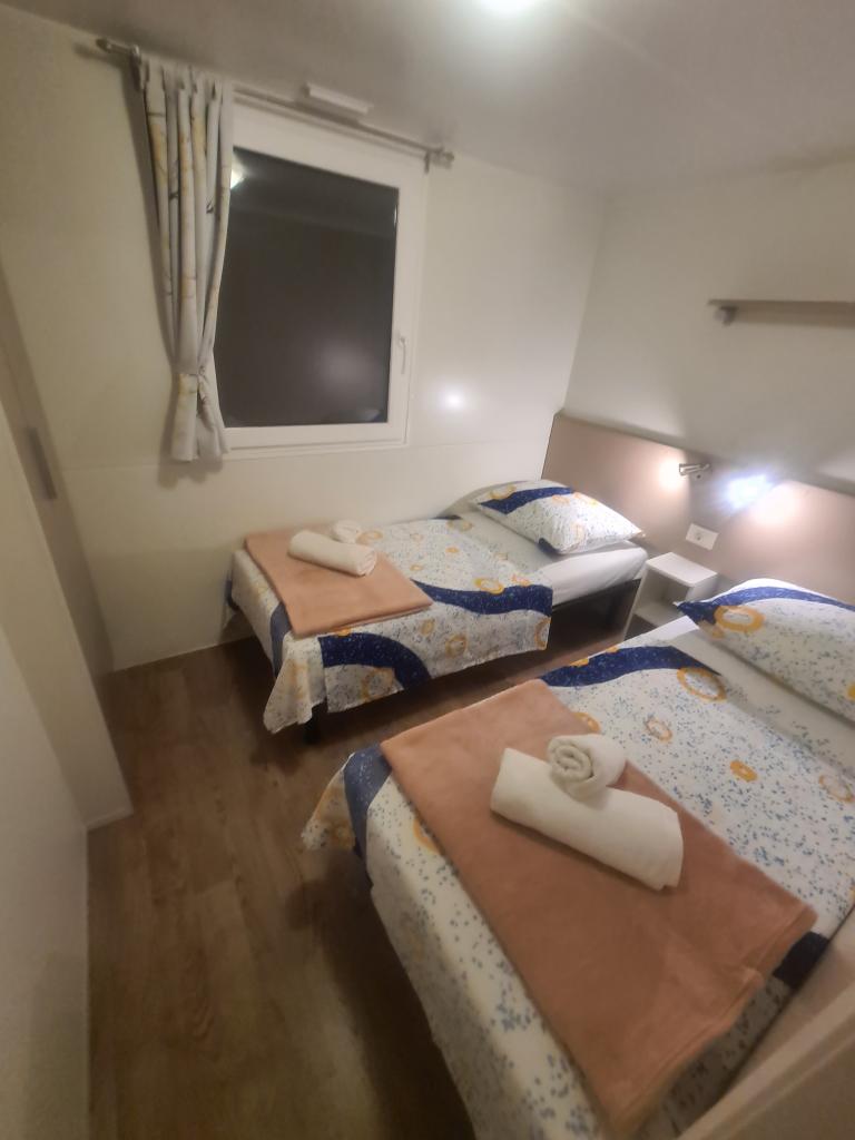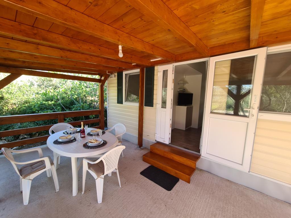 Pokud hledáte pohodlné a klidné ubytování na odlehlém místě v blízkosti moře a olivovníků, G&G Mobile Home je pro vás ideální volbou. Mobilní dům G&G se nachází na ostrově Pašman v Banj, ve vzdálenosti pouhých 20 m od moře. Kromě pohodlného interiéru a polohy poskytuje dům prostornou terasu, ze které můžete sledovat nezapomenutelné západy slunce na ostrově Pašman. Mobilní dům má klimatizaci, TV s plochou obrazovkou, plně vybavenou kuchyň s jídelním koutem, dvě ložnice, dvě koupelny se sprchou a zařízenou terasu. Zahrnuje také bezplatné WIFI a bezplatné soukromé parkoviště.