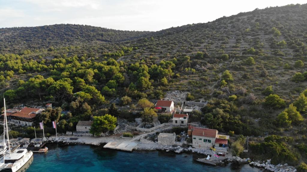 Dům Svjetla se nachází na ostrově Žut, v zátoce Hijača. Je 20 metrů od moře s betonovou a kamenitou pláží. Kotviště pro loď se nachází před domem. Dům má krásnou velkou zahradu, obklopenou idylickou přírodou. Dům má 4 lůžka ve dvou ložnicích. Před domem je gril, voda je dešťová a je třeba s ní zacházet šetrně. Elektřina je 220V solární, osvětlení, lednice, satelit. Možnost pronájmu lodi v Murteru. Parkování je zajištěno v Betině. Doprava je zajištěna lodí z Betiny za příplatek.