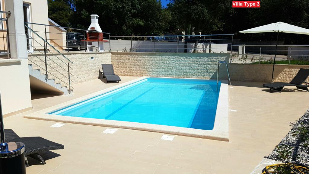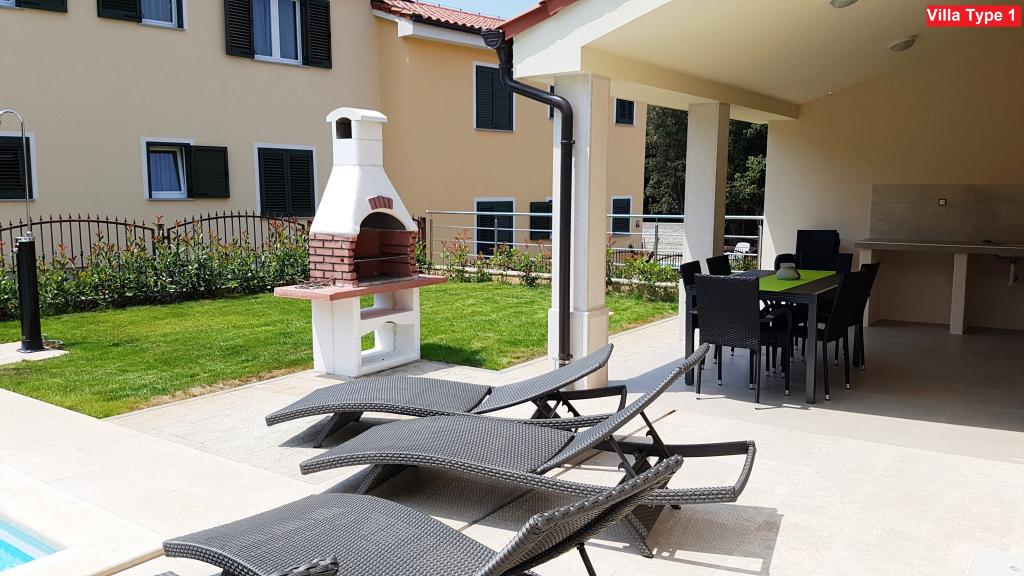 K dispozici jsou 3 typy vil, ze kterých si můžete vybrat. Všechny vily mají stejný interiér, stačí si vybrat typ vily 1, typ 2 nebo typ 3! Vila může ubytovat až 8 plus 2 hosty. Ve vile jsou 4 ložnice, každá s vlastní koupelnou. Odpočiňte si v útulném obývacím pokoji a připravte si chutné pokrmy v plně vybavené kuchyni s jídelnou. Můžete relaxovat u svého soukromého bazénu, ležet na lehátkách a užívat si krásy slunce. Speciality na grilu na dřevěné uhlí můžete připravit i pro své přátele a rodinu. Pokud chcete jít na pláž, stačí si vzít ručník a za pár minut chůze jste na pláži, ale v docházkové vzdálenosti jsou také úžasné restaurace. Vila je klimatizovaná, má WiFi, soukromé parkoviště pro 3 auta a nabízí vše pro příjemnou dovolenou.