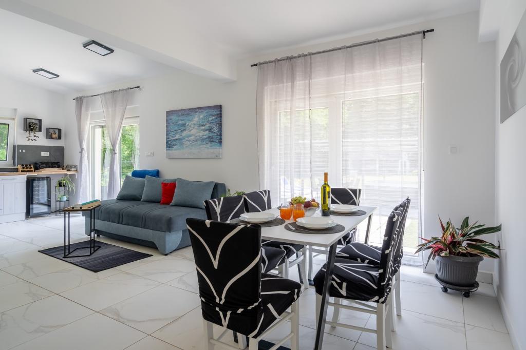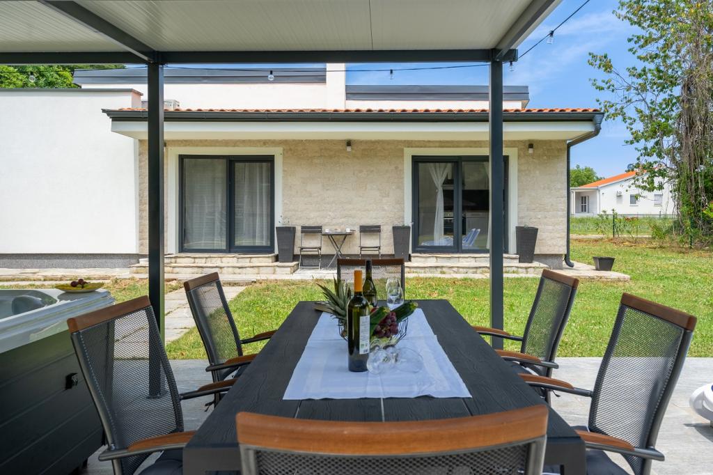 Představte si, že vás budí sluneční paprsky a zpěv ptáků z okolních stromů, zatímco budete relaxovat a užívat si jacuzzi (masážní vana, v naprostém soukromí se pohodlně usaďte na lehátko a popíjejte první ranní kávu nebo čaj). Ideální místo pro hosty, kteří rádi relaxují a užívají si zelené, slunné oázy. Jste asi 10 minut jízdy autem od čistých a malých pláží. Naši hosté mají SUP desku zdarma. Krásný nově postavený rekreační dům s velkou zahradou 1300 m2. 2 venkovní terasy pro užívání si slunce, altán se stínem pro zábavu, jacuzzi, badmintonové vybavení, soukromé bezplatné parkování ve stínu. Dům se skládá ze 3 ložnic (každý pokoj klimatizovaný), 2 koupelen a pračky, velkého klimatizovaného obývacího pokoje a vybavené kuchyně s myčkou. Jste 20 minut od letiště v Pule a 25 minut od římského amfiteátru Arena v centru Puly. Národní park Brijuni a město Rovinj jsou vzdálené asi 30 minut.
