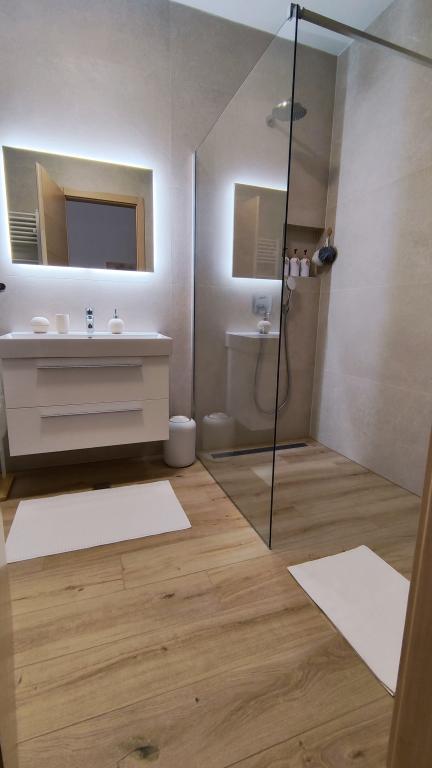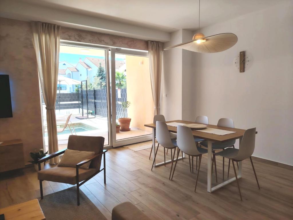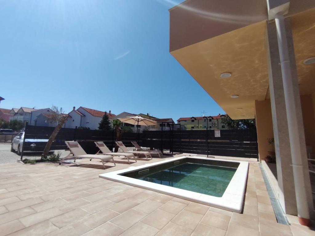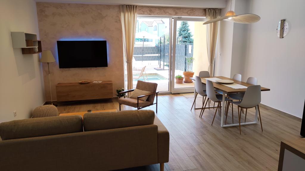 Nově postavený dvoupatrový rekreační dům s bazénem a dvěma samostatnými bytovými jednotkami (přízemí a první patro). Každá bytová jednotka má rozlohu 95 metrů čtverečních a je vybavena 3 ložnicemi, kuchyní, koupelnou, terasou a obývacím pokojem. Parkování je zajištěno.