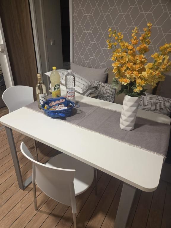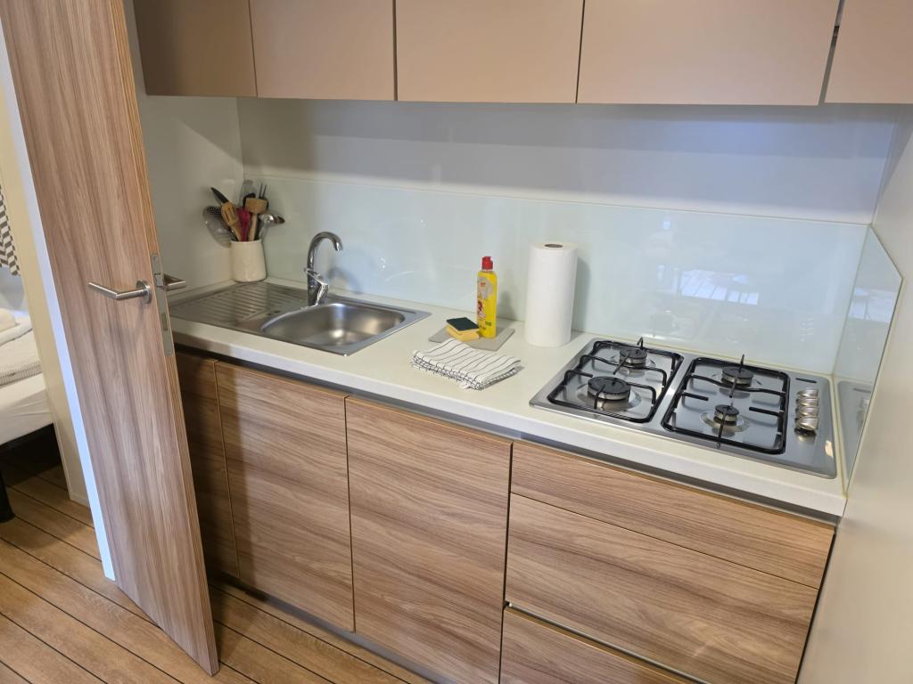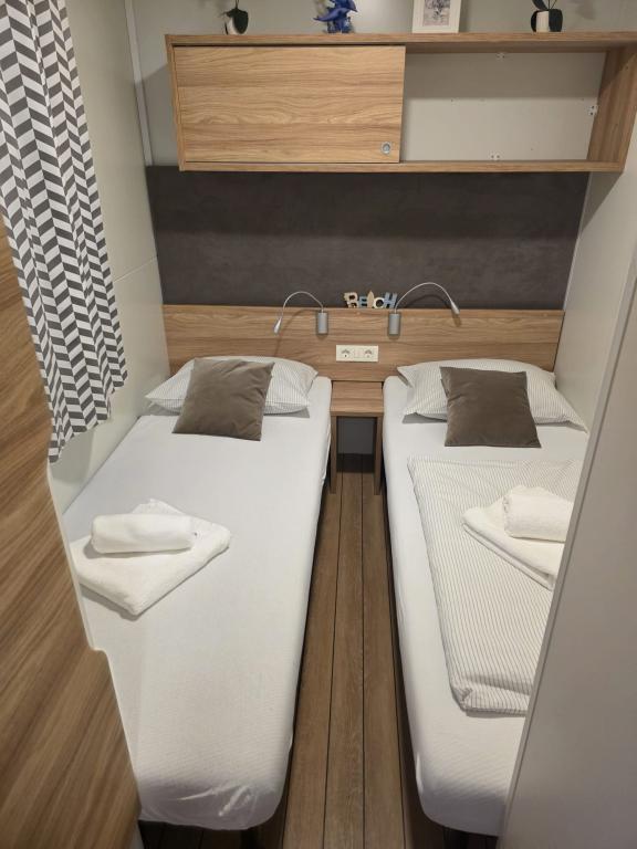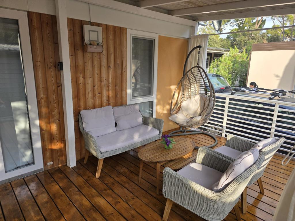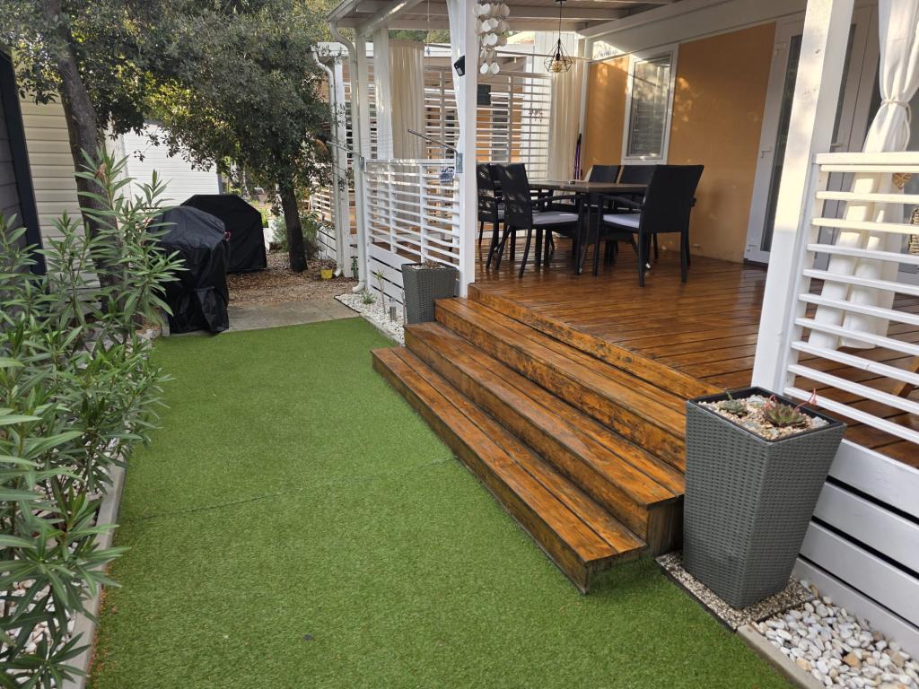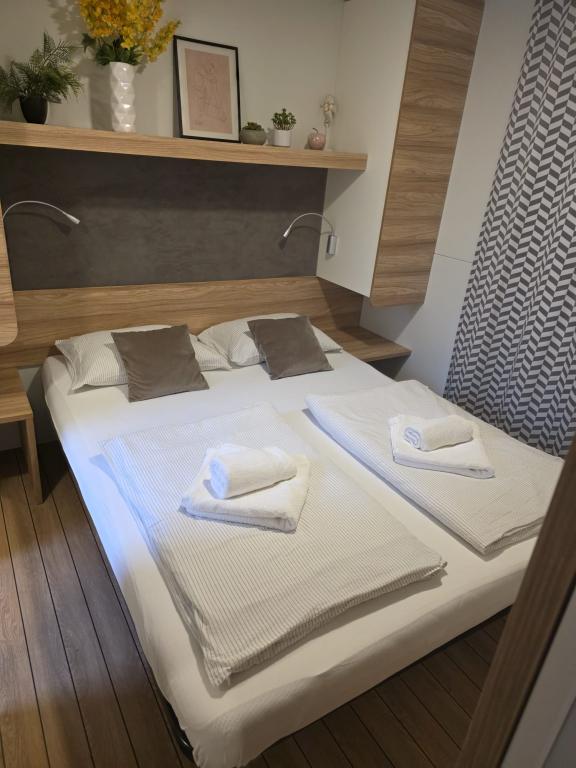 Komfortní ubytování: Mobilní dům Glamour Pakoštane v Pakoštane nabízí dvě ložnice a dvě koupelny s prostorným obývacím pokojem. Součástí nemovitosti je plně vybavená kuchyň, klimatizace a bezplatné Wi-Fi. Volnočasové vybavení: Hosté si mohou užít terasu, bar a dětský bazén. K dalšímu vybavení patří jídelní kout, venkovní nábytek a bezplatné soukromé parkoviště na místě. Vynikající poloha: Kemp se nachází 27 km od letiště Zadar, jen pár kroků od pláže Punta. Nedaleko se nachází přístav Kornati a Muzeum kulturního dědictví Biogradu, obě vzdálené 8 km. V okolí se nabízí možnost plachtění.