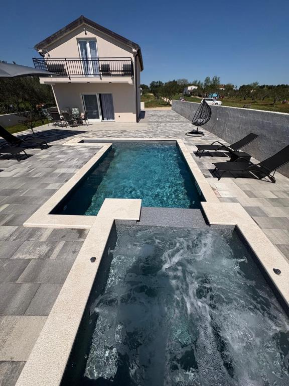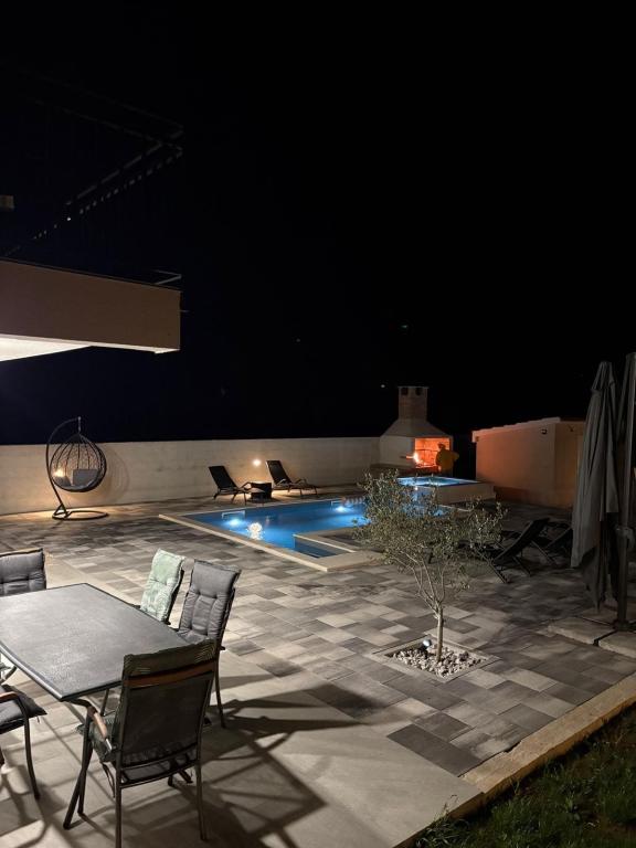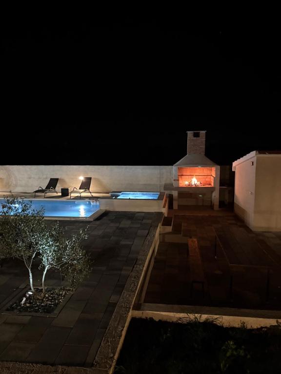 Rekreační dům se nachází v srdci olivového háje, pouhé 2 km od moře a je ideálním místem pro kompletní dovolenou v klidu a pohodě. Je obklopen přírodou a poskytuje pocit soukromí daleko od městského ruchu. Zvláštní atmosféru vytváří vyhřívaný bazén, ideální pro užívání si jarních a letních dnů. Prostorná zahrada je ideálním místem pro rodinné aktivity. V prvním patře domu se nacházejí 3 ložnice s manželskými postelemi a malou koupelnou. Třetí ložnice má také balkon s krásným výhledem do zeleně a v přízemí se nachází prostorná kuchyň a obývací pokoj. Rekreační dům Frano je pro vás ideální volbou, protože kombinuje pohodlí přírody a blízkost moře a nabízí vám vše, co potřebujete pro nezapomenutelný pobyt. Dům je vybaven všemi domácími spotřebiči a venkovním krbem.