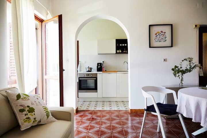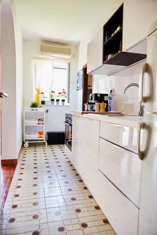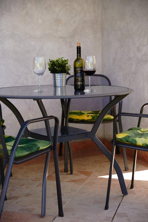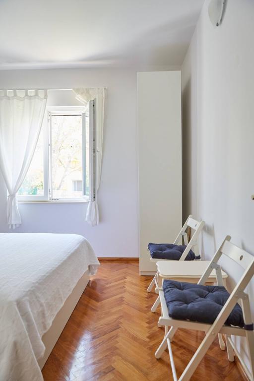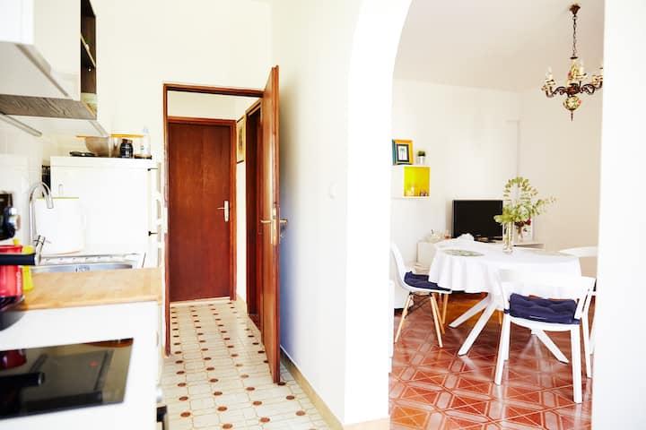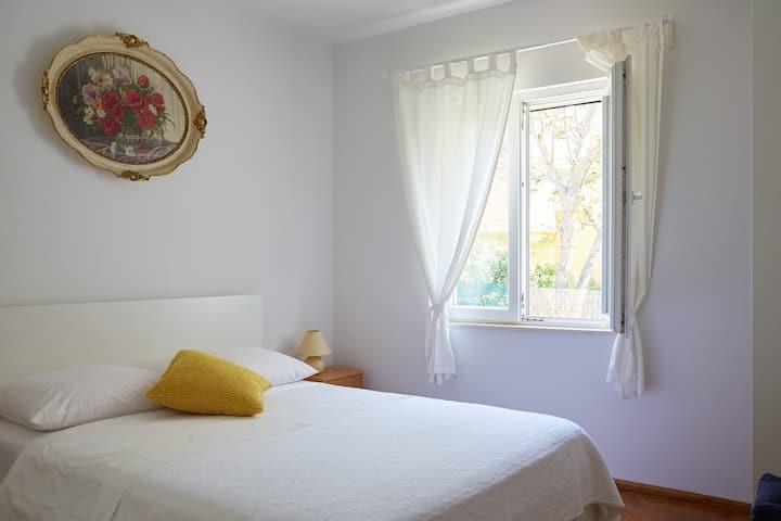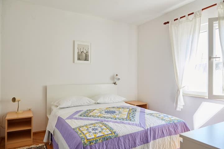 Krásný rodinný dům postavený v tradičním dalmatském duchu. Dům má dvě ložnice, kuchyň, obývací pokoj a velký balkon. Na zahradě rostou tradiční středomořské rostliny. K dispozici je také parkoviště ve dvoře.