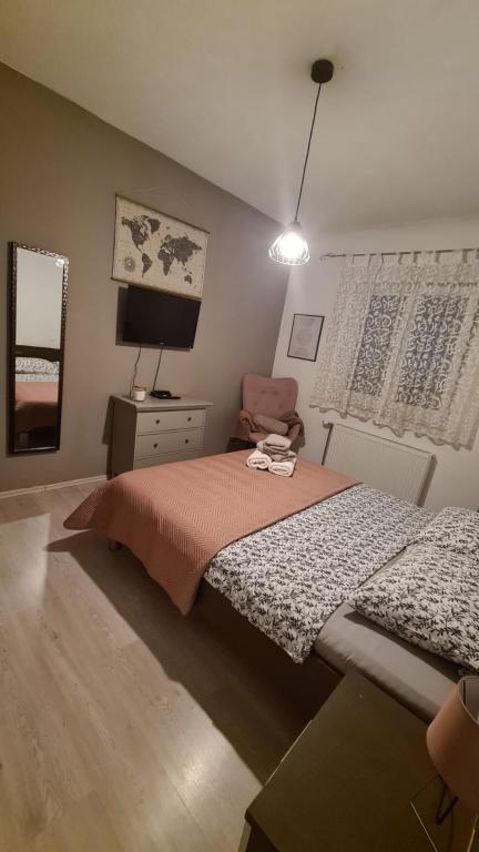 Moderní vila s bazénem, 3 km od centra města. V areálu je plavecký bazén 8x4 m a dětský bazén 3x1,5 metru. Bohatý obsah pro děti, stolní fotbal, kulečník, stolní tenis, skluzavka, trampolína...