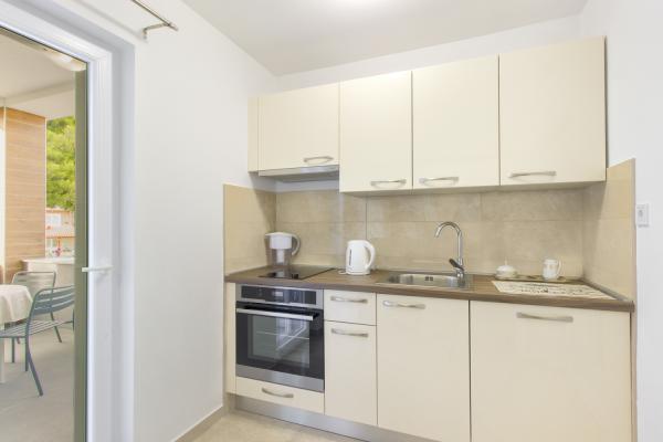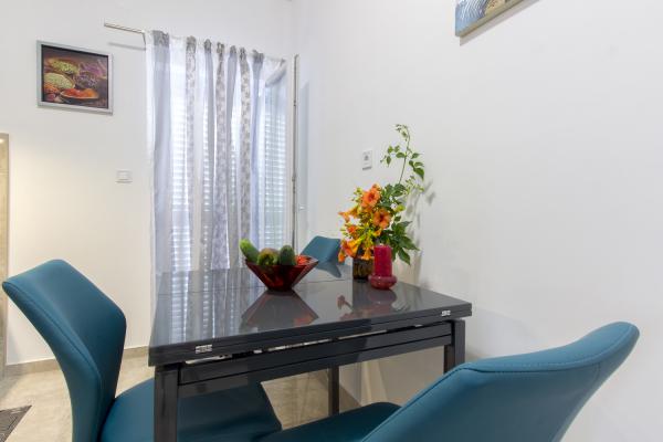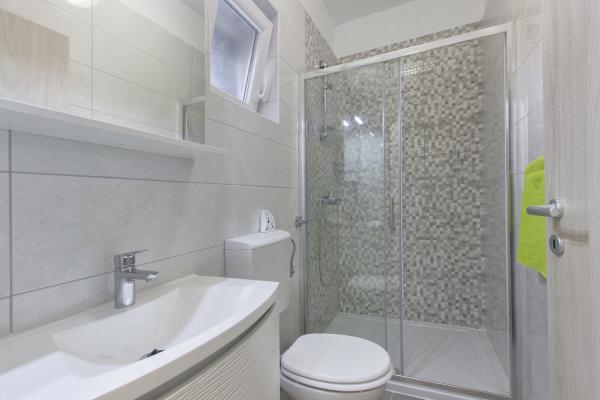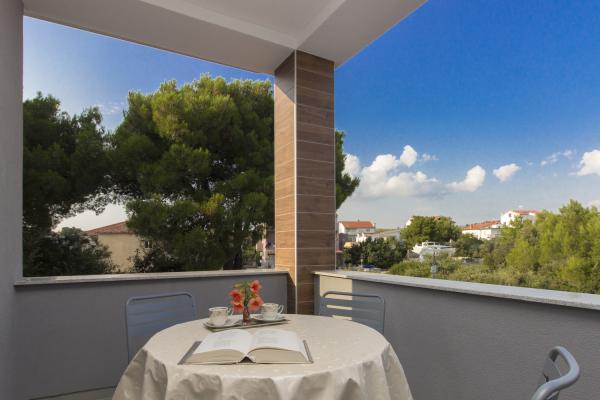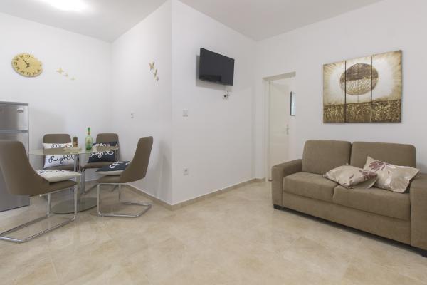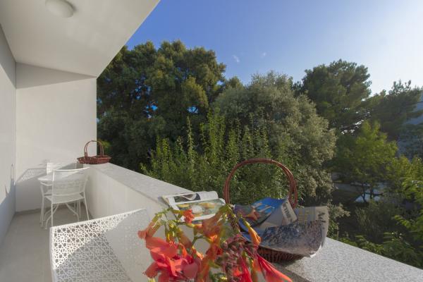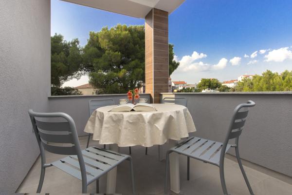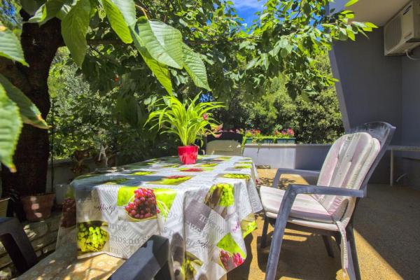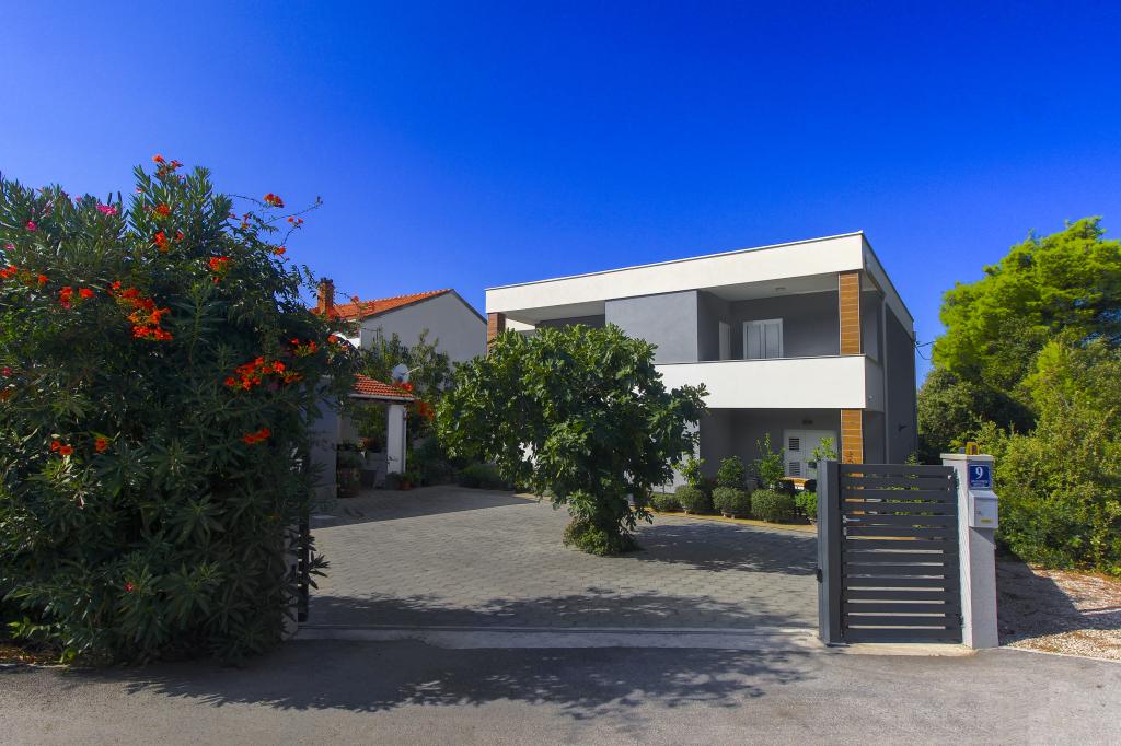 NOVÁ VILA SE ZAHRADOU A NÁDVOŘÍM Krásná, moderní vila v přírodním středomořském zeleném prostředí. Vila má 60 m2 obytné plochy, zahradu a dvůr o celkové ploše 400 m2, hlídané parkování. Vila má: - 2 ložnice - 1 koupelnu - kuchyň s jídelnou - balkon/terasu Plně vybavená/kuchyň, pokoj a koupelna Wi-Fi, klimatizace, parkoviště, registrace hostů - zahrnuto v ceně! ZAHRADA A DVŮR: – Dětské hřiště/ - dvůr s automatickým otevíráním/zavíráním dveří. - Užijte si plody bio zeleniny z naší zahrádky.