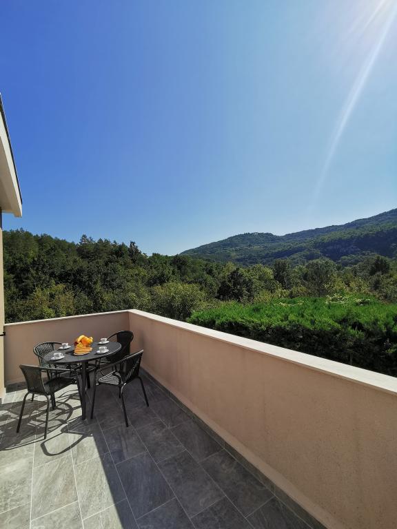 Vítejte na magické Istrii! Villa Mandalena se nachází nedaleko města Buzet, v osadě Mandalenići, obklopené lesy. Villa Mandalena je ideální pro každého, kdo chce uniknout z masové turistiky a užít si intimitu a ticho nebo strávit aktivní dovolenou s mnoha rekreačními zařízeními, procházkou, na kole, sbíráním chřestu a hub ... nebo si prostě jen užít klid v bazénu a chytat barva. Pokud chcete ruch města a moře za pouhých 45 minut jízdy, budete si moci užít kouzlo „modré“ Istrie. Prostorné prostředí, zeleň, hrst slunce a blízkost istrijských měst a památek vám umožní skutečně si užít dovolenou! Samotná vila se rozkládá na 280 m2 ve 2 patrech a obsahuje celkem dva nově zrekonstruované byty, z nichž AP 1 (6 2) se nachází v prvním patře, zatímco AP 2 (4 2) se nachází v přízemí. Oba apartmány mají samostatný vchod a jsou vybaveny klimatizací, satelitní TV a připojením k internetu. Hosté si mohou užít prostornou zahradu o rozloze 500 m2 se soukromým bazénem o rozměrech 4x8 metrů obklopeným lehátky. Vila obsahuje soukromé parkoviště pro 4 auta a umožňuje pobyt s domácími mazlíčky. Zažijte, prociťte, uvolněte tělo i duši a strávte nezapomenutelné chvíle na Istrii!
