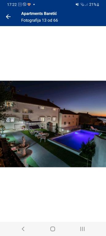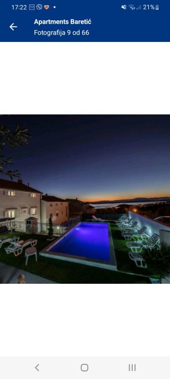 Apartmány Baretic se nachází 800 m od moře nebo 20 minut chůze .. v domě je 5 apartmánů, s 2 až 5 osobami na apartmán ... Každý apartmán má své vlastní parkoviště. Všechny apartmány mají také bazén.