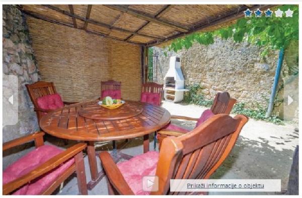 Kompletně zařízený sedmerosobna nativní (postavena v roce 1884). Klimatizovaný dům pro 10 osob. 1 apartmán s vlastním vchodem ze dvora pro 2 osoby, 1 pokoj s vlastním vchodem ze dvora pro 2 osoby, 2 ložnice pro 3 osoby, jídelna, 2 kuchyně, gril, 2 dvory, čtvrtý 80x120 bazénem, altánkem, parkoviště pro několik aut , Parkování pro člun nebo jachtu. Bohaté sportovní, rekreační a kulturní zařízení v údolí. Frankopan hrad několik set metrů od domu. Klidné a zelená údolí. Pokud máte rádi přírodní prostředí a hledají klid a zdravotní údolí je ideální v jarních, letních a podzimních měsících. Domácí zvířata povolena bez příplatku. Nádvoří uzavřené vysokými kamennými zdmi, což umožňuje soukromí.