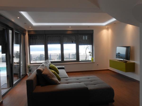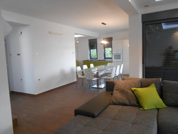 Vila s bazénem v klidné části města Crikvenica. Bazén je měření 3,5 - 7,5 metrů. Tato nemovitost je na dvou podlažích se dvěma suterénu. V přízemí se nachází kuchyň, jídelna, obývací pokoj a koupelna. V prvním patře jsou čtyři ložnice, dvě koupelny a terasa s krásným výhledem na moře, Město a jeho okolí. V suterénu domu se nachází jedna koupelna a pračka. V hotelu je velká zahrada s trávníkem, gril, zpevněné terasy a velké parkoviště. Je vhodný pro děti a domácí zvířata, jak je plně oplocený všechny. Doporučit se s lidmi, kteří chtějí soukromí, klid a mír. Nemovitost se pronajímá za novoročních svátků