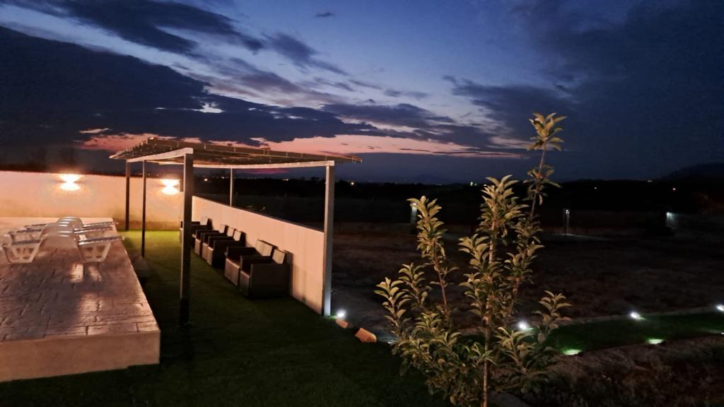 Prostorný dvůr nabízí mnoho možností pro zábavu a odpočinek pro vás a vaše nejmenší. Od šipek, tenisových a fotbalových stolů až po trampolíny a houpačky. Zatímco si vaše děti hrají, vy můžete relaxovat posezením na velké houpačce na vzdušné terase nebo v pavilonu. Nabízíme také gril pro zábavné večery s přáteli.