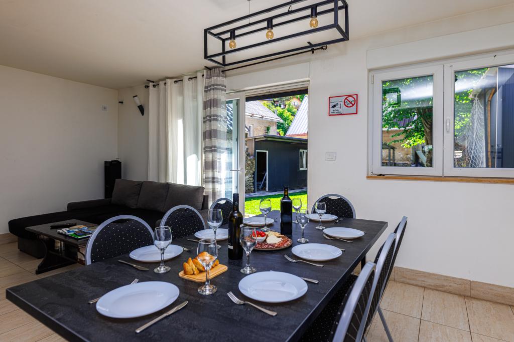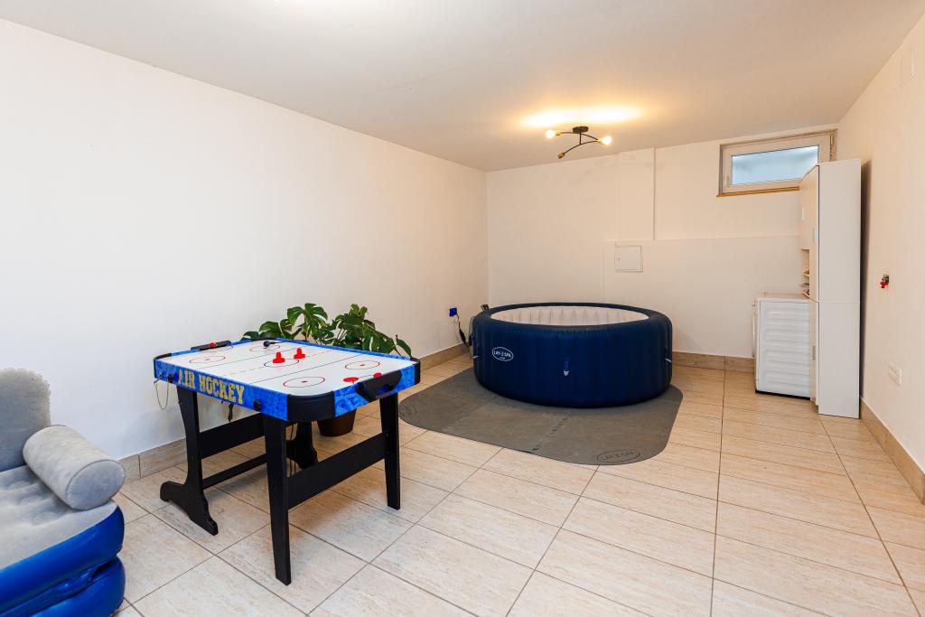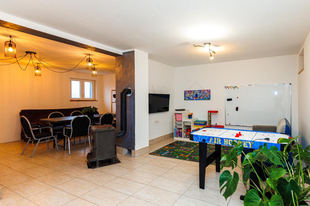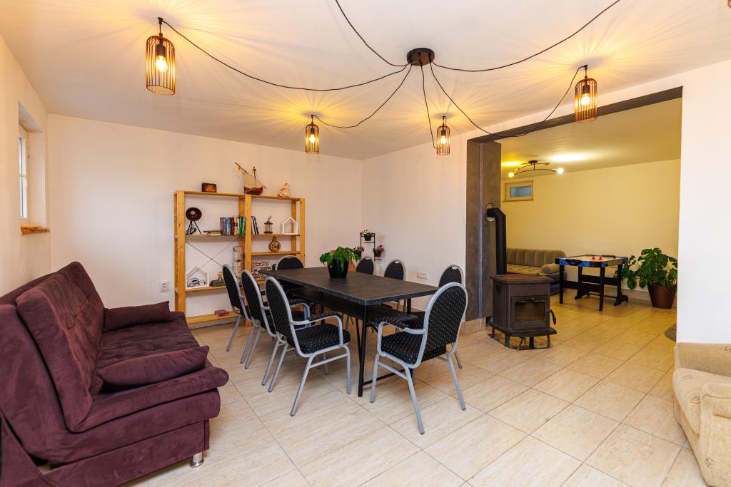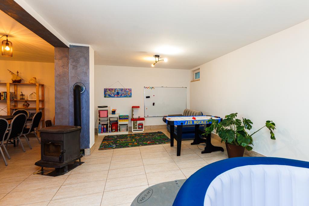 Vítejte ve Ville SIN, vašem ideálním místě pro dovolenou v klidné vesničce Lič, zasazené do krásné přírody Gorského kotaru. Tento okouzlující rekreační dům je ideální pro rodiny, větší skupiny a skupiny přátel s možností ubytování až pro 14 osob a poskytuje perfektní kombinaci pohodlí, soukromí a zábavy pro všechny věkové kategorie. Vila SIN nabízí prostorný a pečlivě zařízený interiér se čtyřmi pohodlnými ložnicemi, dvěma moderními koupelnami (vana a sprchový kout) a velkým obývacím pokojem propojeným s plně vybavenou kuchyní. Zvláštní atrakcí je vnitřní vířivka, ideální místo k relaxaci a zábavě po celý rok, ať už se chcete zahřát v zimě nebo si odpočinout po aktivním dni. Dům je perfektně přizpůsoben rodinám s dětmi - zahrada nabízí prostorné hřiště. Uvnitř domu si ti nejmenší užijí koutek se stolními hrami, dětskými knihami, kreslenými filmy a další zábavou, což zajistí, že každý okamžik bude naplněn smíchem a radostí. Pro dospělé poskytuje exteriér domu ideální prostor k relaxaci - terasa s venkovním grilem a prostorem, který vás zve k posezení u lahodných jídel venku. Okolní příroda Gorského kotaru nabízí nespočet možností k rekreaci a objev