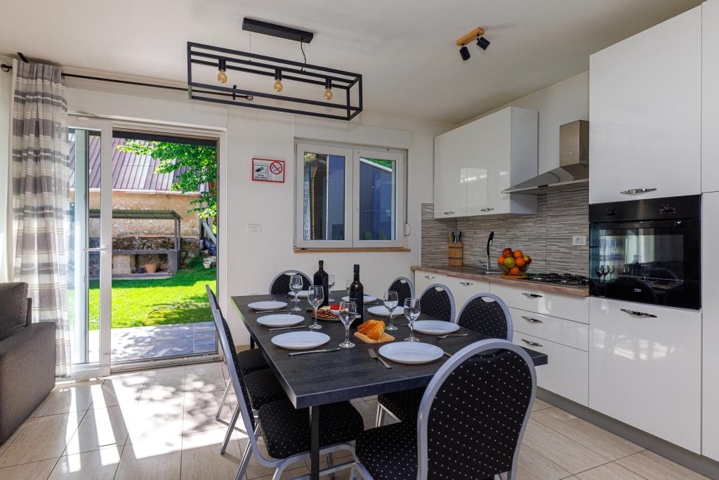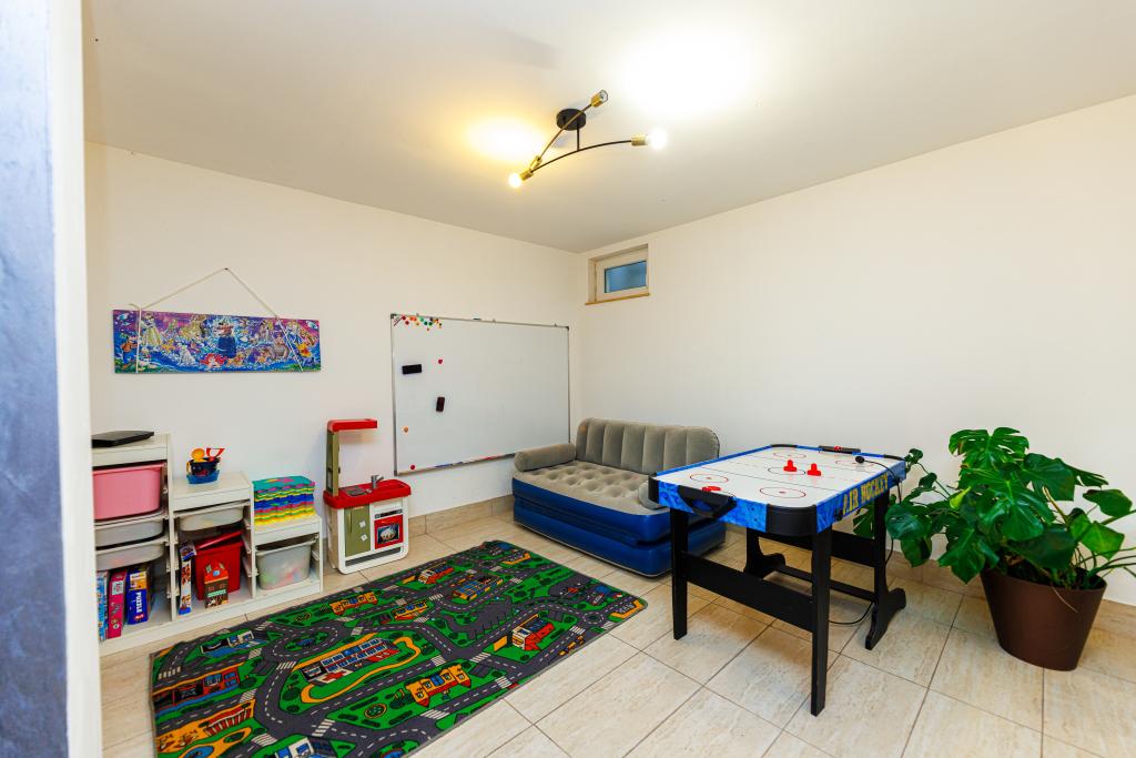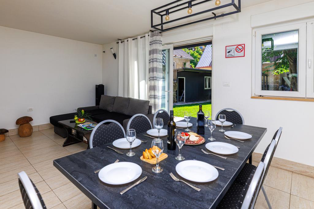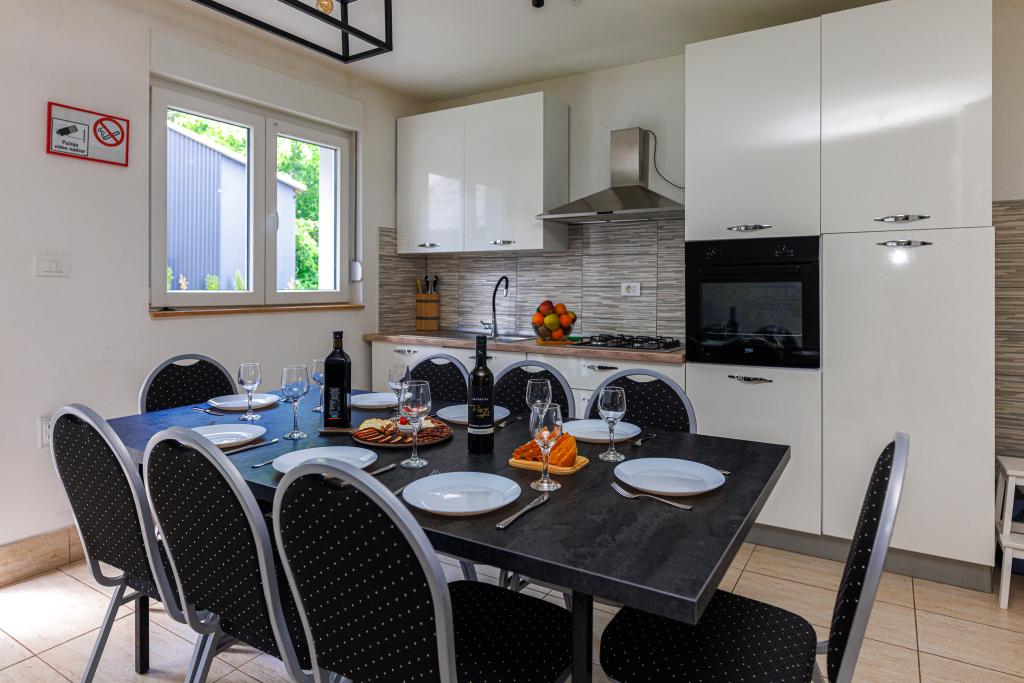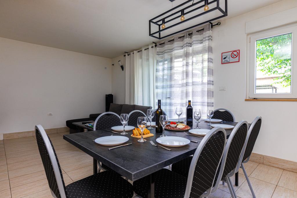 Vítejte ve Ville SIN, vašem ideálním místě pro dovolenou v klidné vesničce Lič, zasazené do krásné přírody Gorského kotaru. Tento okouzlující rekreační dům je ideální pro rodiny, větší skupiny a skupiny přátel s možností ubytování až pro 14 osob a poskytuje perfektní kombinaci pohodlí, soukromí a zábavy pro všechny věkové kategorie. Vila SIN nabízí prostorný a pečlivě zařízený interiér se čtyřmi pohodlnými ložnicemi, dvěma moderními koupelnami (vana a sprchový kout) a velkým obývacím pokojem propojeným s plně vybavenou kuchyní. Zvláštní atrakcí je vnitřní vířivka, ideální místo k relaxaci a zábavě po celý rok, ať už se chcete zahřát v zimě nebo si odpočinout po aktivním dni. Dům je perfektně přizpůsoben rodinám s dětmi - zahrada nabízí prostorné hřiště. Uvnitř domu si ti nejmenší užijí koutek se stolními hrami, dětskými knihami, kreslenými filmy a další zábavou, což zajistí, že každý okamžik bude naplněn smíchem a radostí. Pro dospělé poskytuje exteriér domu ideální prostor k relaxaci - terasa s venkovním grilem a prostorem, který vás zve k posezení u lahodných jídel venku. Okolní příroda Gorského kotaru nabízí nespočet možností k rekreaci a objev