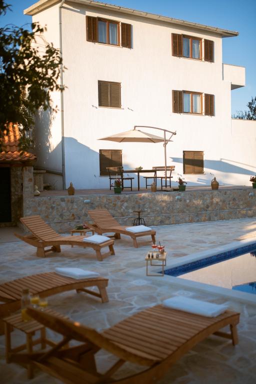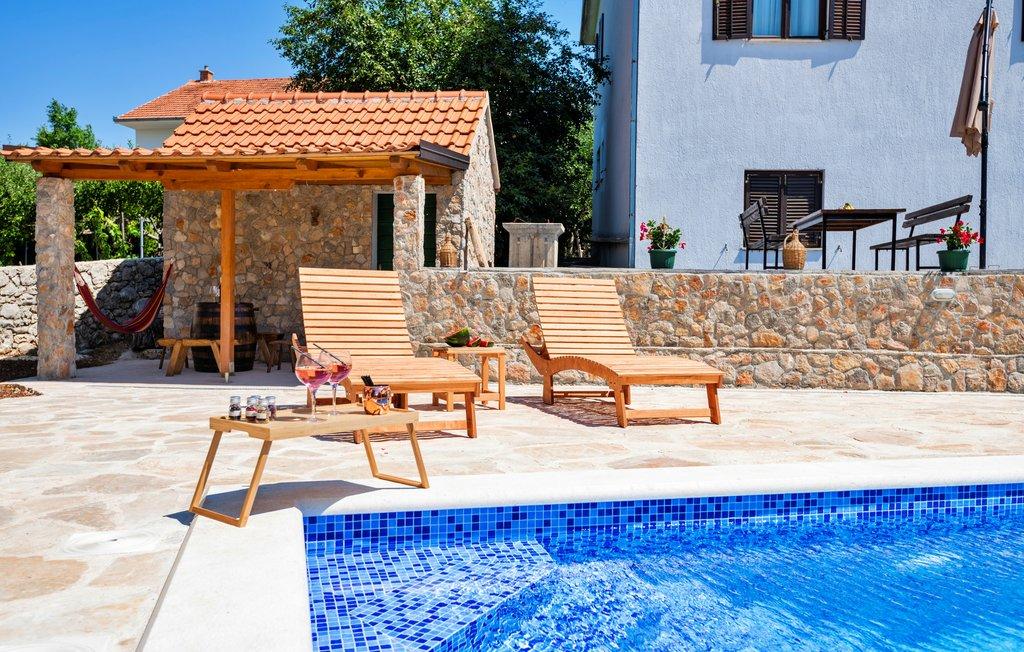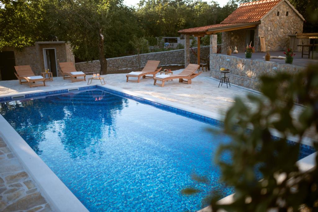 Kromě ubytování mohou hosté využívat místní sezónní produkty ze zahrady, jako jsou: třešně, jahody, višně, jablka, hrušky, švestky, rozmarýn atd. Rekreační dům Pearl in Stone se nachází v půvabném městečku Gornji Vinjani a nabízí prostornou zahradu, klid, soukromý bazén a výhled na dvůr a les. Má 4 ložnice, TV s množstvím programů, klimatizaci a bezplatné Wi-Fi. Plně vybavenou kuchyň s myčkou nádobí a lednicí, pračku a koupelnu se sprchou na toaletě a prádelnu. Nabízí sezónní venkovní vyhřívaný bazén o rozměrech 9x4 m se samostatným herním domečkem a zábavou a gril. Hosté si mohou odpočinout v krásně upravené zahradě. K dispozici jsou 2 jízdní kola a kajak, stolní tenis, stolní fotbal, šipky a další vybavení. Rekreační dům Pearl in Stone má 4 ložnice: 2 pokoj