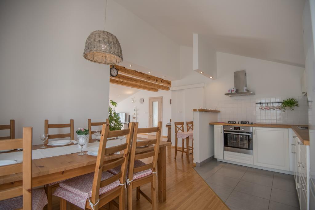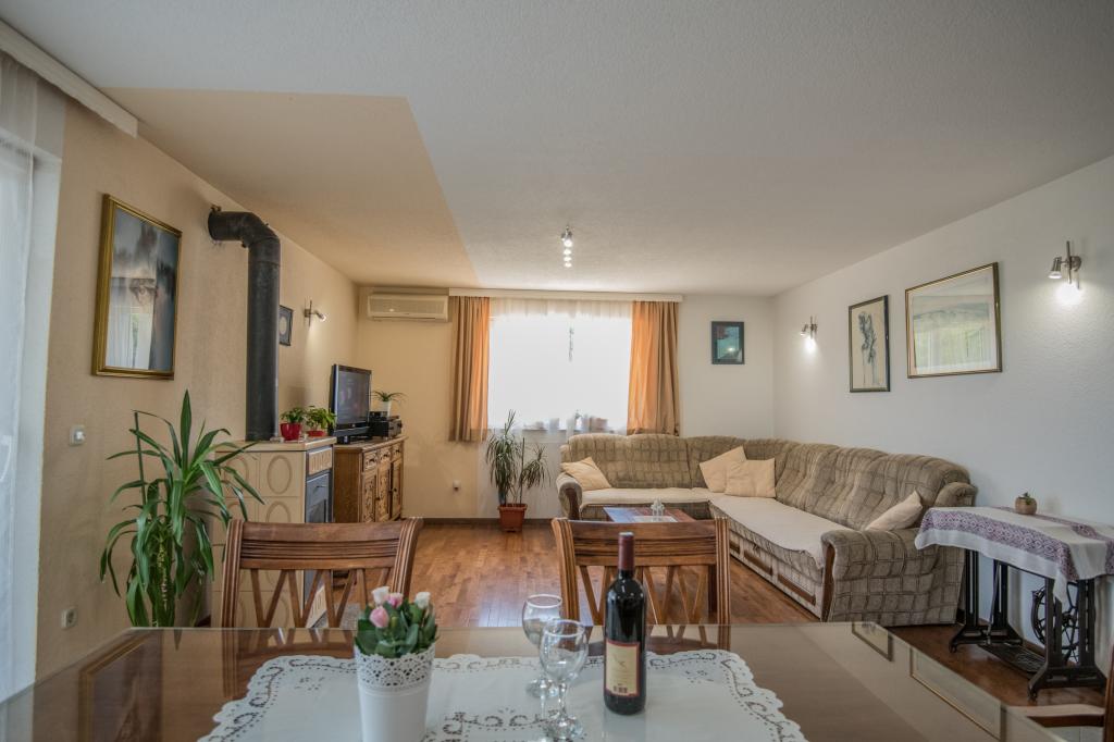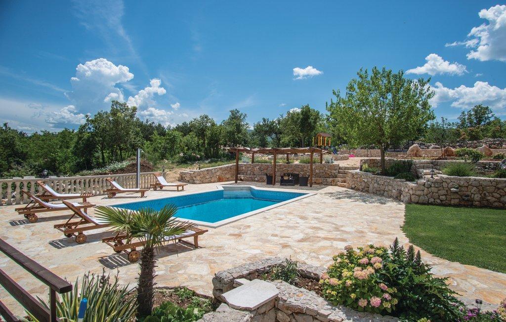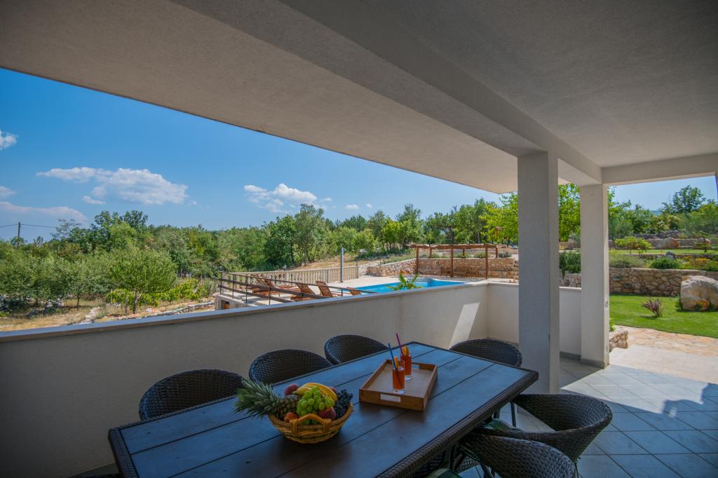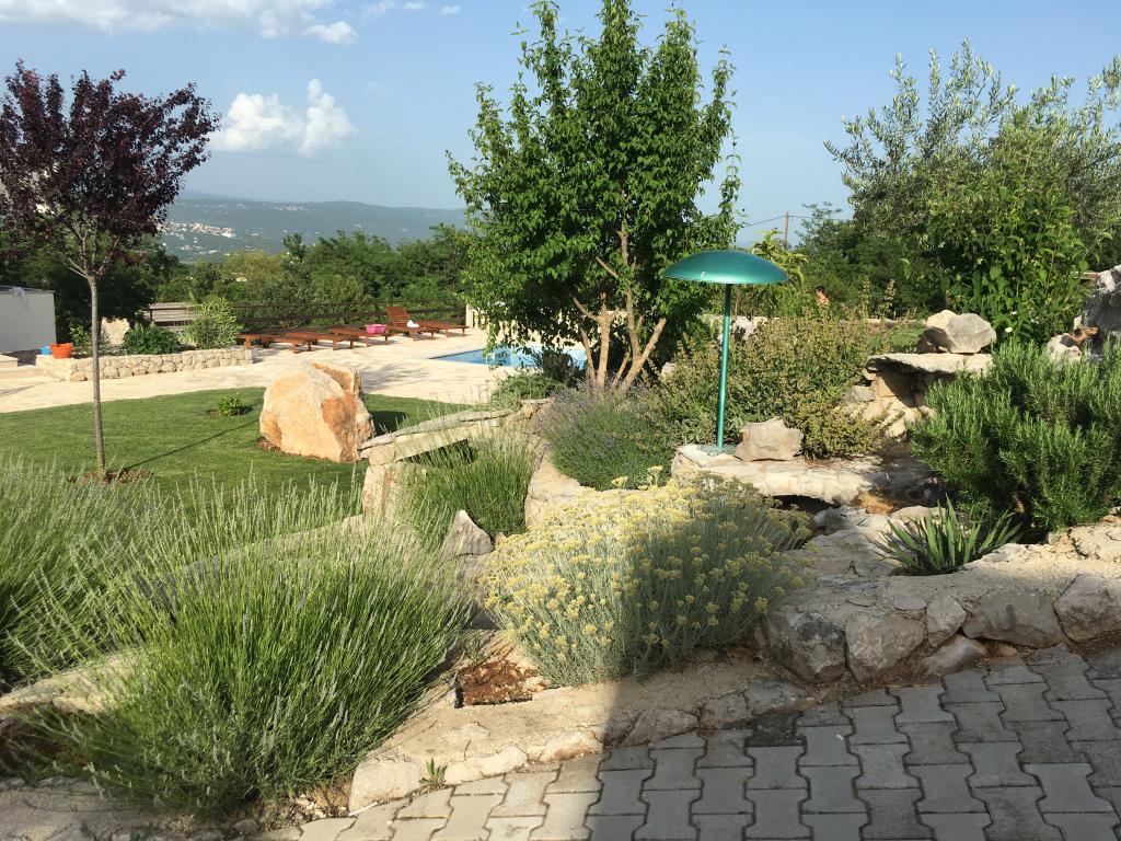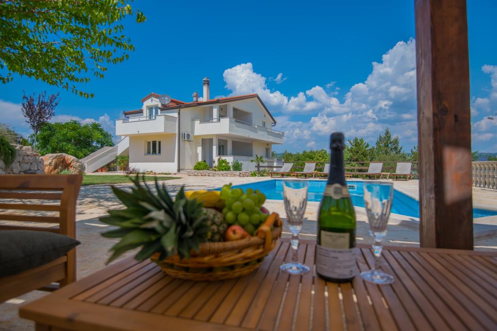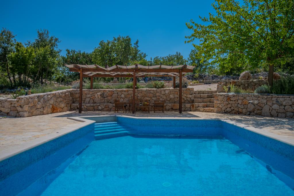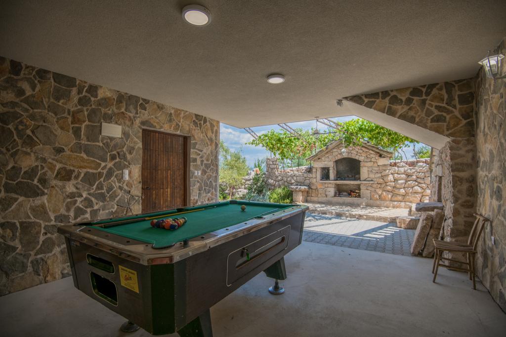 Komfortní prázdninový dům se nachází na velkém (4500 m2) pozemku v idylické krajině střední Dalmácie, nedaleko města Imotski, které je známé svými Červenými a Modrými jezery. Dům se skládá ze dvou samostatných bytových jednotek, které jsou moderně řešené a zařízené. Jedna jednotka se nachází v přízemí a sestává ze tří pokojů, obývacího pokoje, kuchyně, koupelny, WC a verandy. Druhá jednotka se nachází v podkroví se dvěma ložnicemi, obývacím pokojem, kuchyní, koupelnou a velkou terasou. Nejnižší výška stropu horního patra je 200 cm v obývacím pokoji. Jsou propojeny vnějším schodištěm. Z terasy je výhled na město Imotski, které je známé svými Červenými a Modrými jezery. Na jižní straně domu je velký bazén, gril a dětské hřiště. Makarská riviéra je vzdálená 15 minut jízdy autem a Imotski je 5 km daleko. Grubine vám může nabídnout typickou dovolenou v Dalmácii. Tato oblast se nachází v blízkosti pobřeží Makarské riviéry, která je zdaleka nejoblíbenější v Dalmácii.