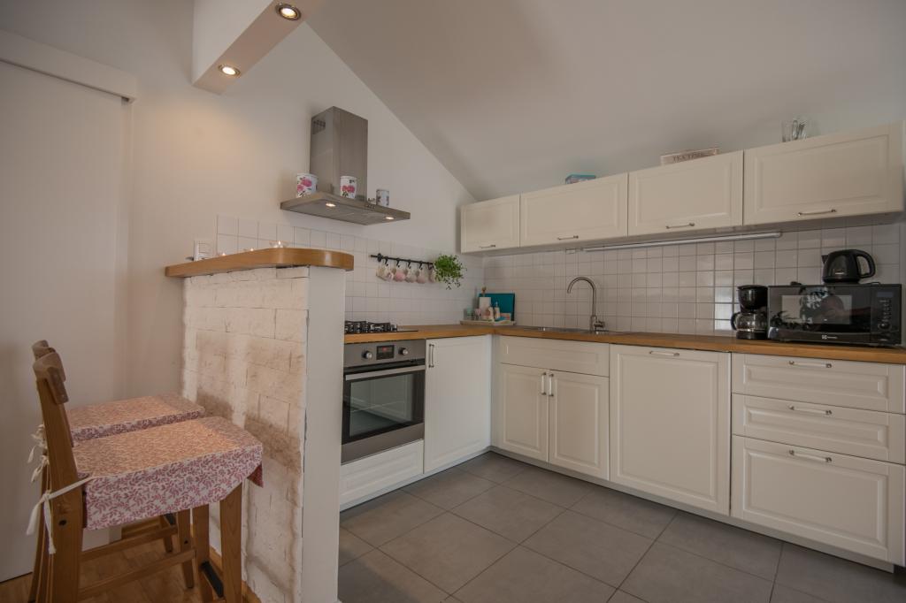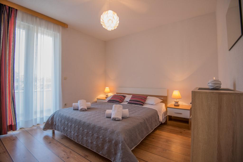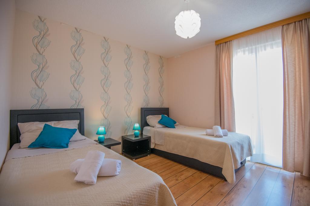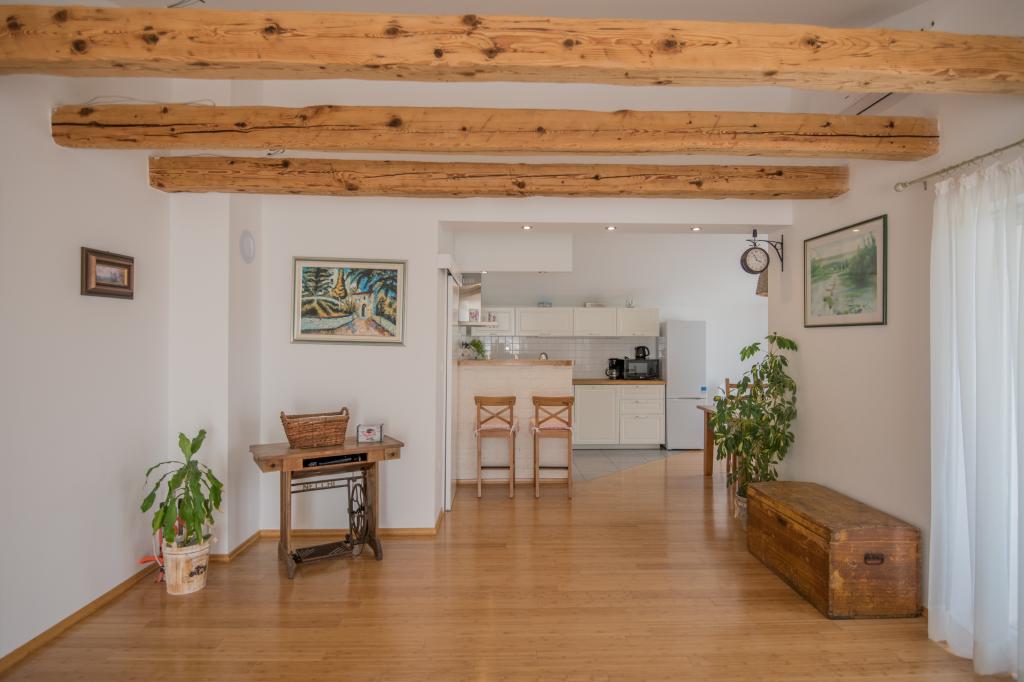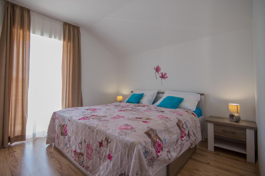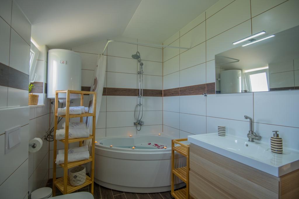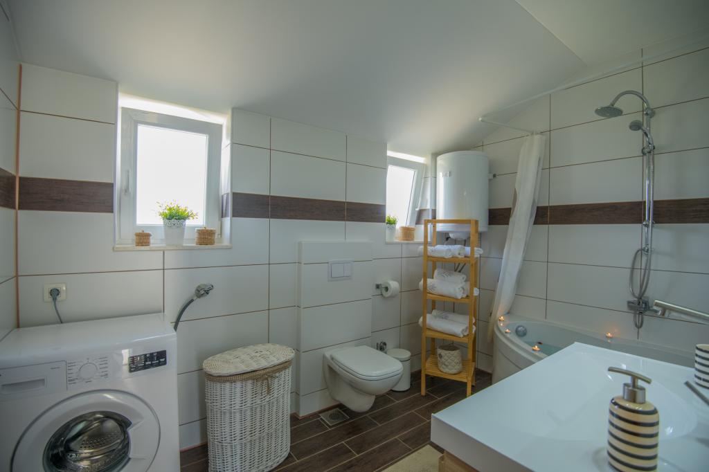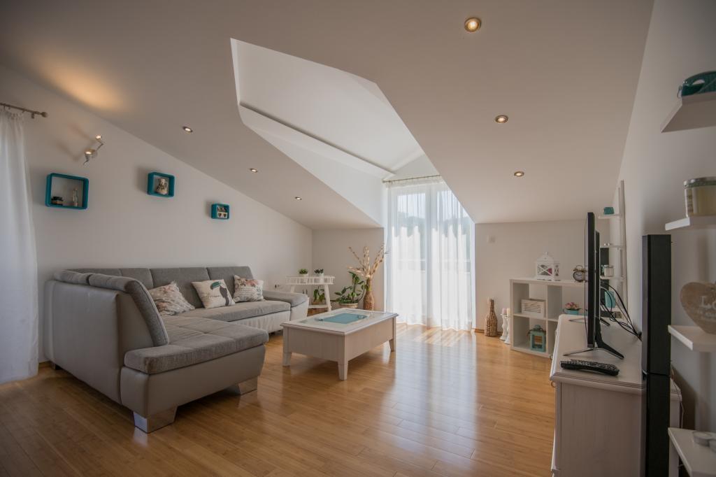 Komfortní prázdninový dům se nachází na velkém (4500 m2) pozemku v idylické krajině střední Dalmácie, nedaleko města Imotski, které je známé svými Červenými a Modrými jezery. Dům se skládá ze dvou samostatných bytových jednotek, které jsou moderně řešené a zařízené. Jedna jednotka se nachází v přízemí a sestává ze tří pokojů, obývacího pokoje, kuchyně, koupelny, WC a verandy. Druhá jednotka se nachází v podkroví se dvěma ložnicemi, obývacím pokojem, kuchyní, koupelnou a velkou terasou. Nejnižší výška stropu horního patra je 200 cm v obývacím pokoji. Jsou propojeny vnějším schodištěm. Z terasy je výhled na město Imotski, které je známé svými Červenými a Modrými jezery. Na jižní straně domu je velký bazén, gril a dětské hřiště. Makarská riviéra je vzdálená 15 minut jízdy autem a Imotski je 5 km daleko. Grubine vám může nabídnout typickou dovolenou v Dalmácii. Tato oblast se nachází v blízkosti pobřeží Makarské riviéry, která je zdaleka nejoblíbenější v Dalmácii.