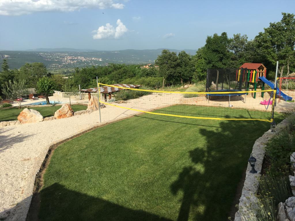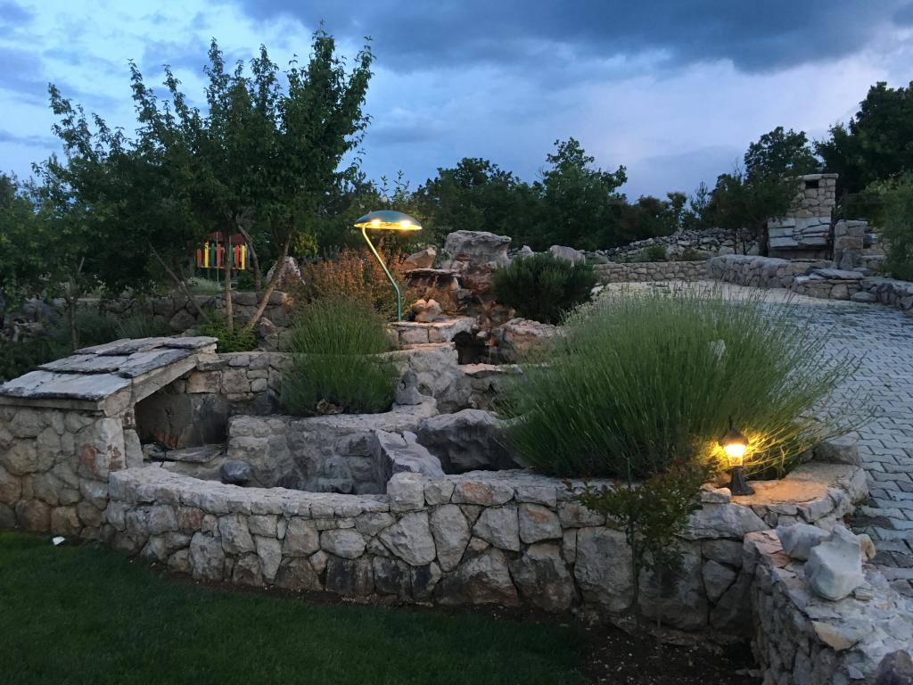Dvůr a okolí domu je krásně vyzdobeno trávníkem a zahradou, se spoustou zeleně a svíčkami. Nedílnou součástí nabídky je hřiště pro děti, místo pro grilování a posezení i místo pro zábavu.