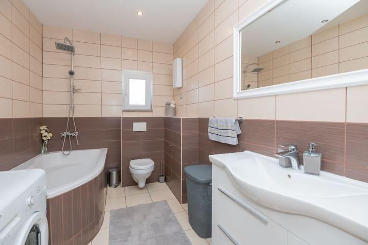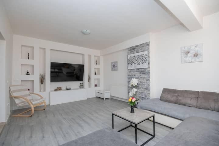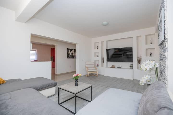 Vezměte celou rodinu a přátele do tohoto skvělého ubytování se spoustou prostoru pro zábavu. Rodinný dům ideální pro rodiny s dětmi. Hosté se ubytují v celém domě s plně vybavenou kuchyní, prostorným obývacím pokojem, 4 ložnicemi, 2 koupelnami a doprovodnými vnitřními a venkovními hracími plochami pro děti a velkým dvorem s bazénem (8×4 m) a vířivkou pro 4 osoby. V domě je minikino a posilovna.
