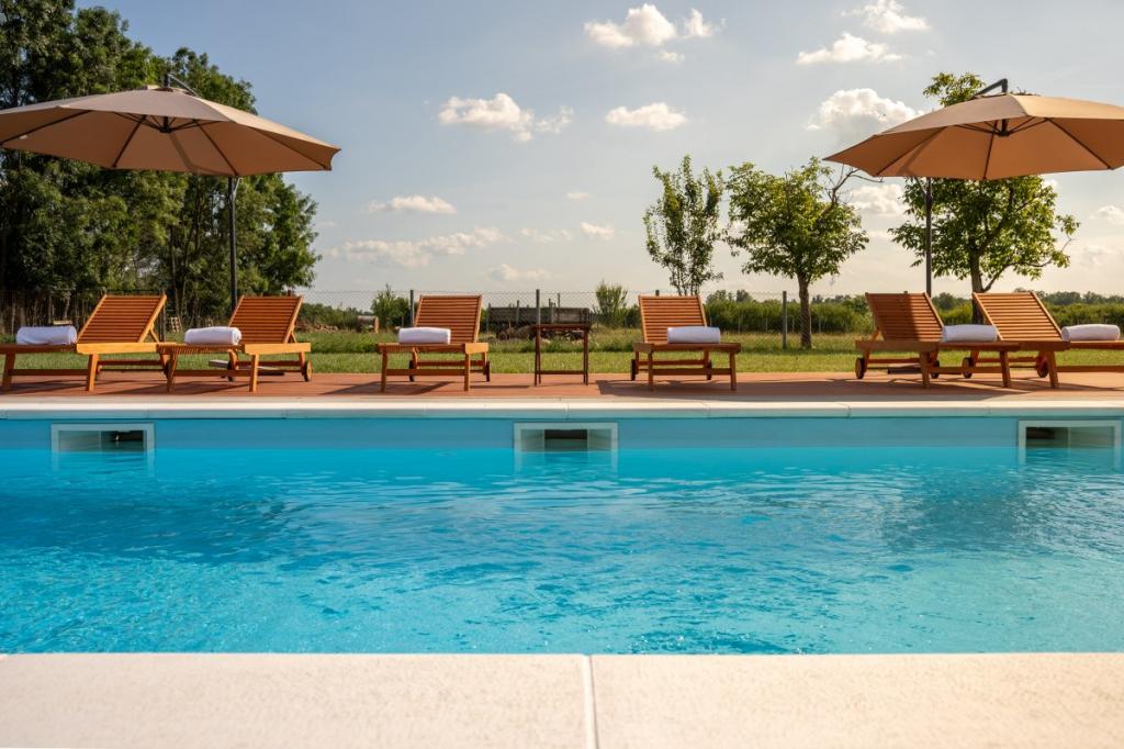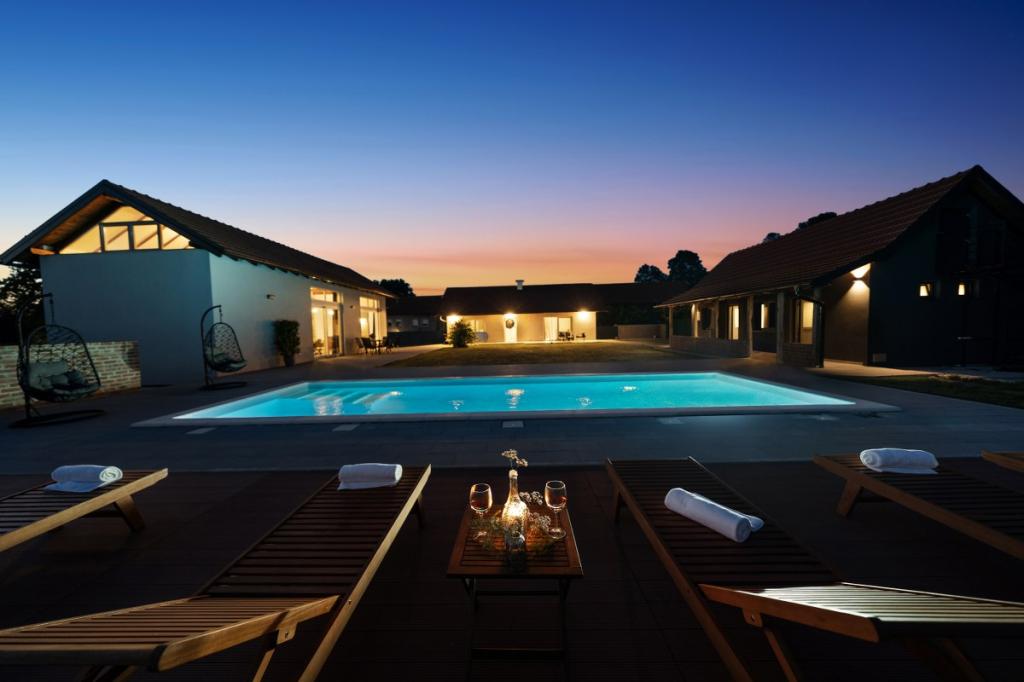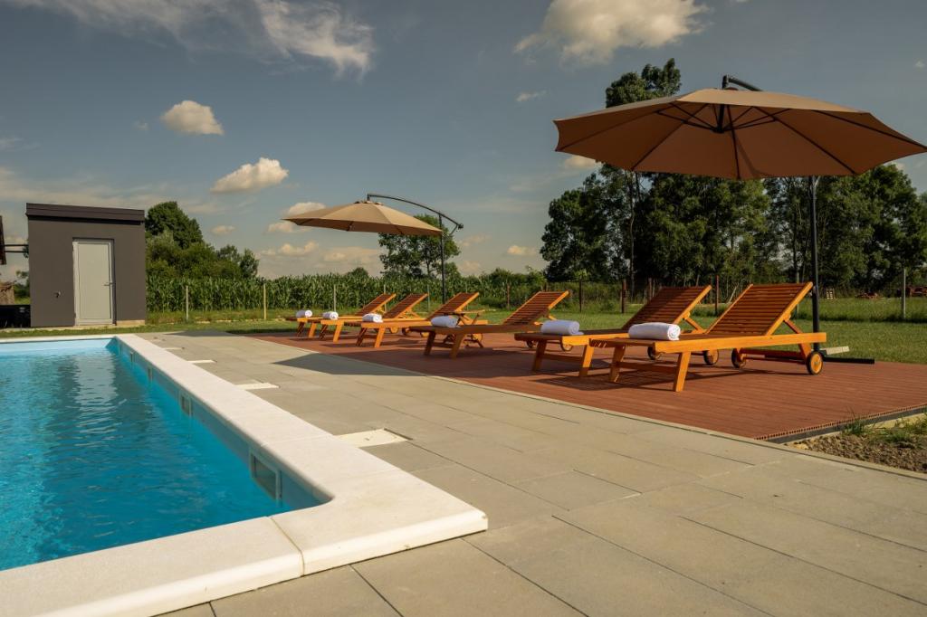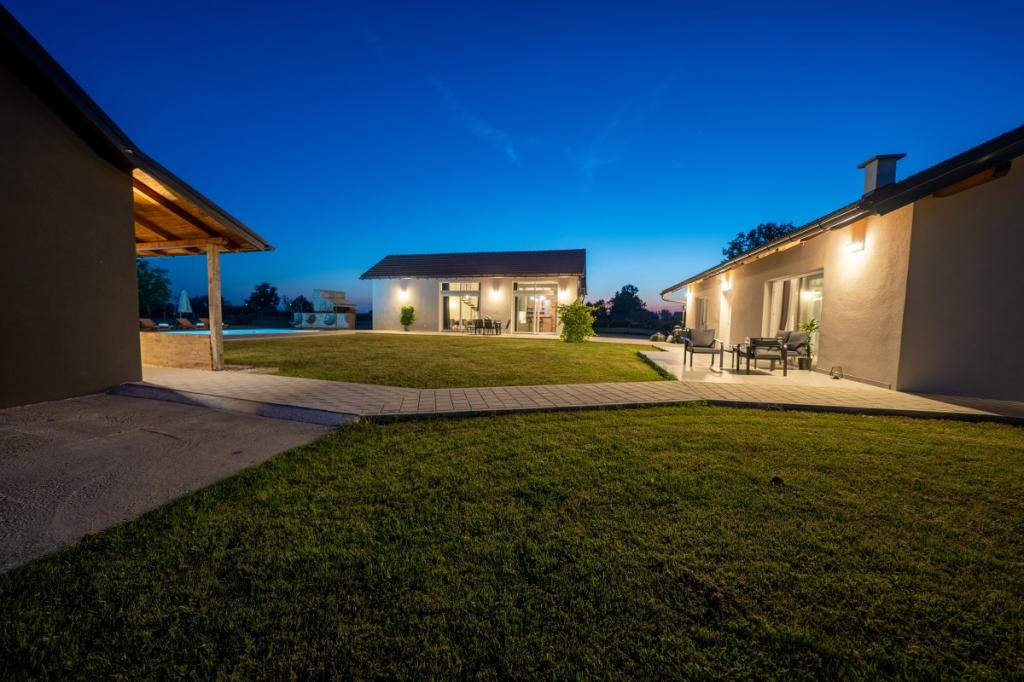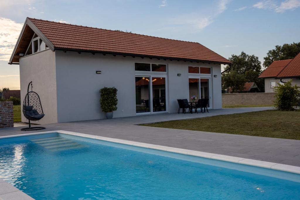 Zelena Oáza je moderní nemovitost s bazénem se 3 domy - 2 rekreační domy a 1 dům pro oslavy, ideální pro rodinnou dovolenou nebo posezení s přáteli. Maximální počet lůžek je 8+2. 4* dům se skládá ze 4 dvoulůžkových pokojů, 3 koupelen, 2 kuchyní se všemi spotřebiči, venkovního altánu 50 m2 s rybářským přístřeškem a grilem a dětského hřiště. 4 TV, 6 klimatizací, bezplatné parkoviště pro 10 aut.