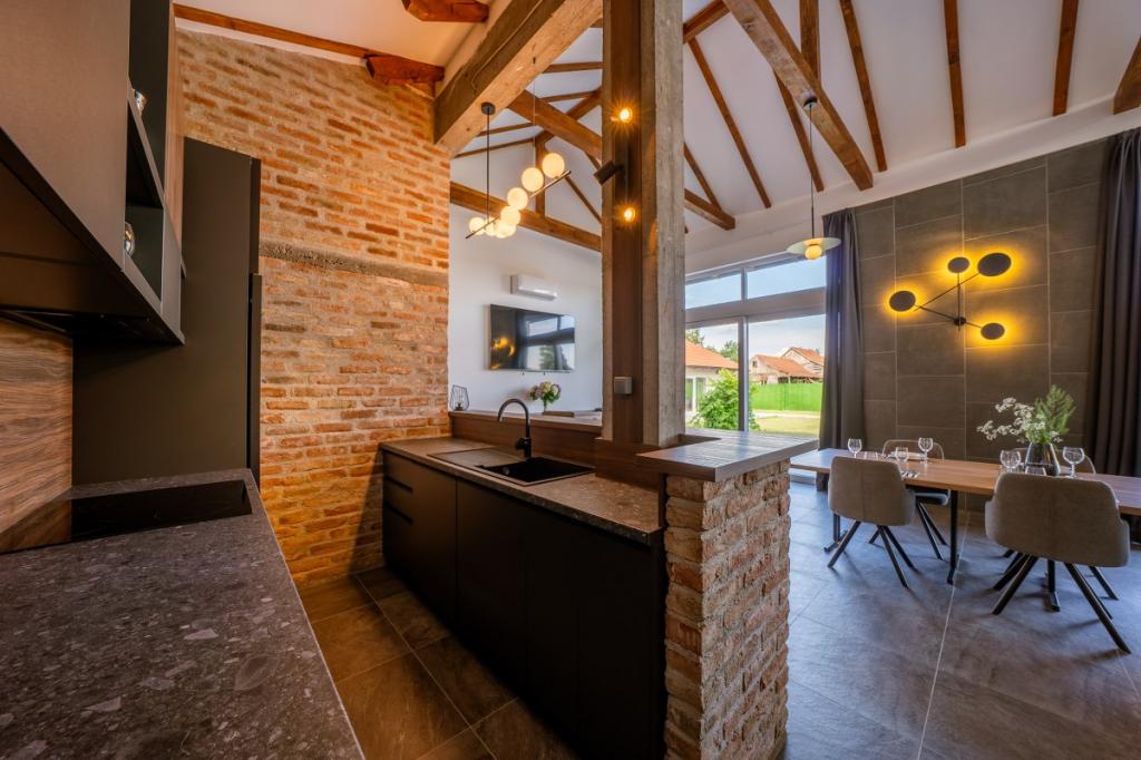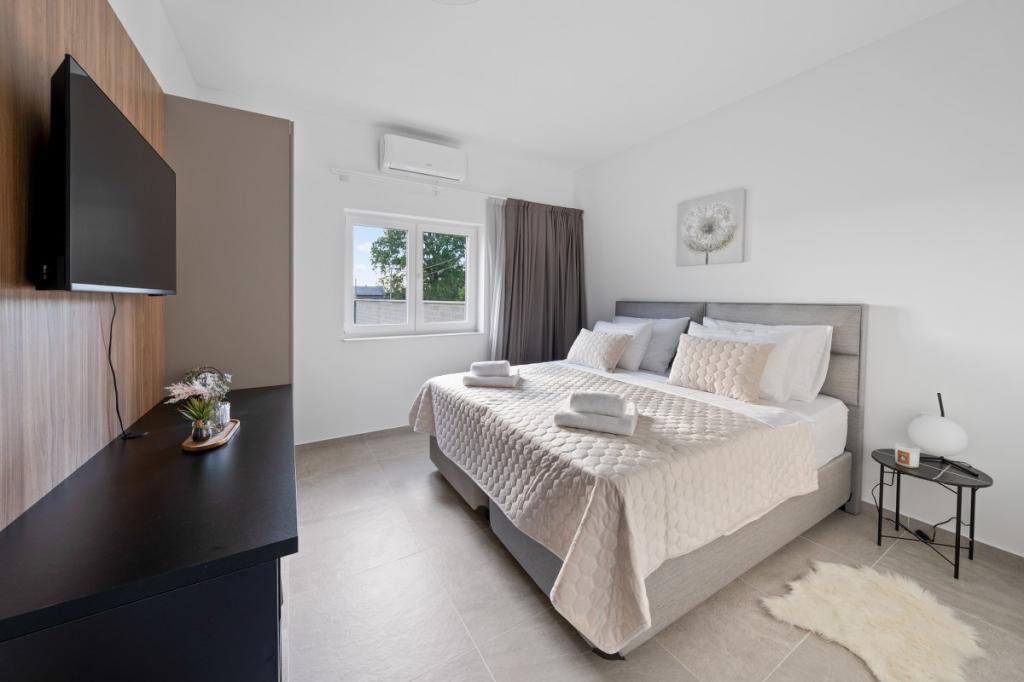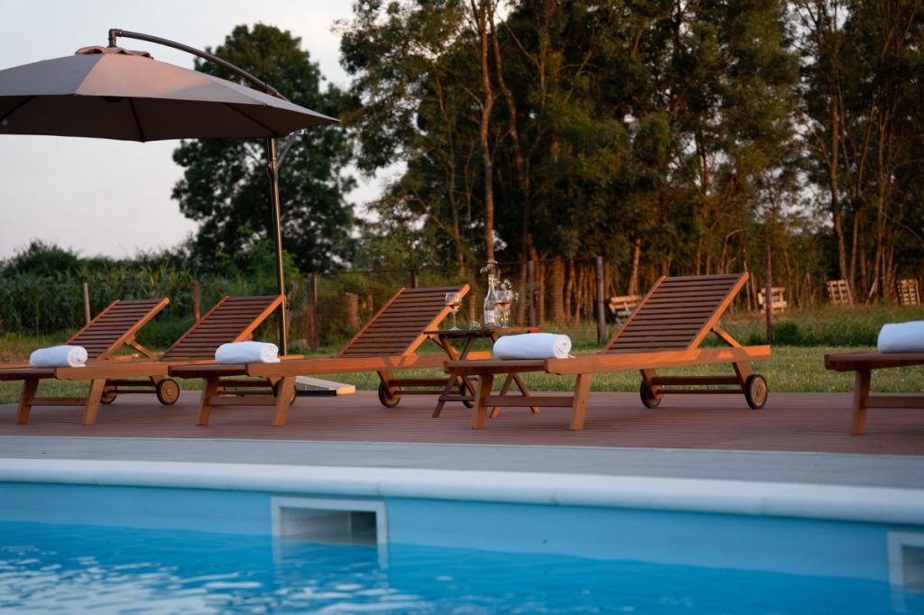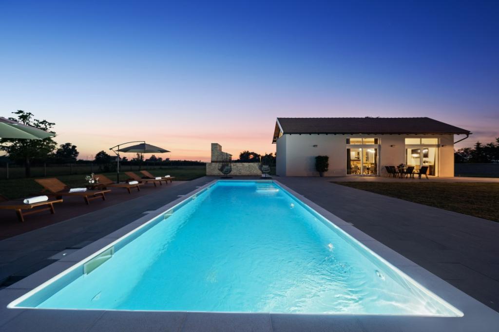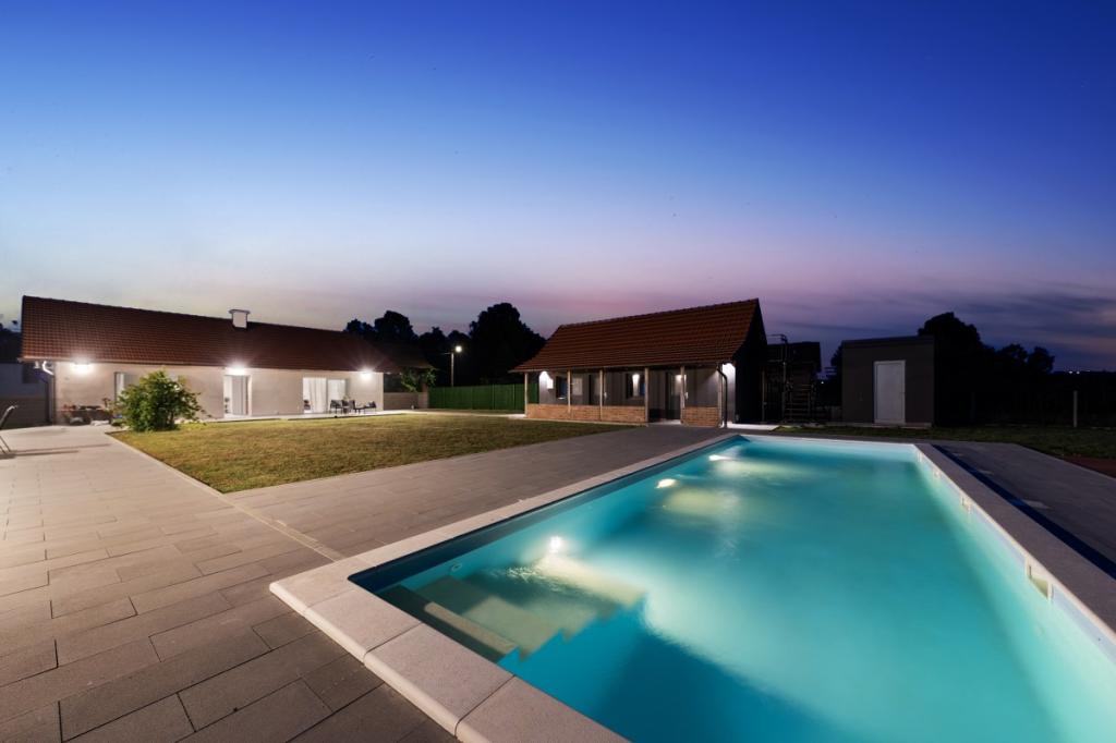 Zelena Oáza je moderní nemovitost s bazénem se 3 domy - 2 rekreační domy a 1 dům pro oslavy, ideální pro rodinnou dovolenou nebo posezení s přáteli. Maximální počet lůžek je 8+2. 4* dům se skládá ze 4 dvoulůžkových pokojů, 3 koupelen, 2 kuchyní se všemi spotřebiči, venkovního altánu 50 m2 s rybářským přístřeškem a grilem a dětského hřiště. 4 TV, 6 klimatizací, bezplatné parkoviště pro 10 aut.