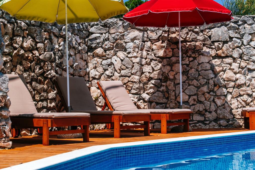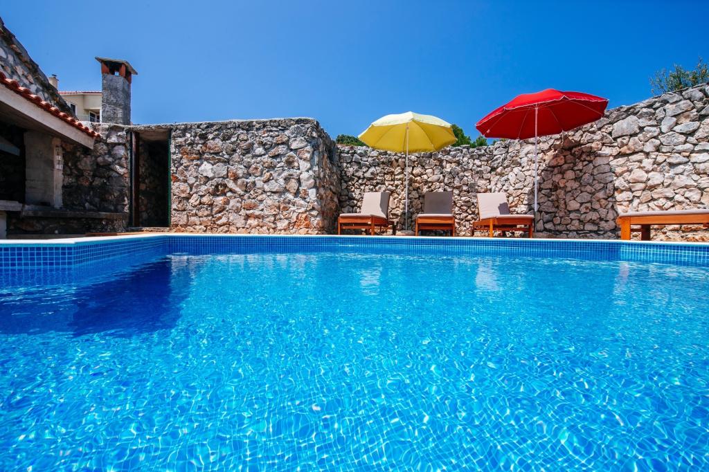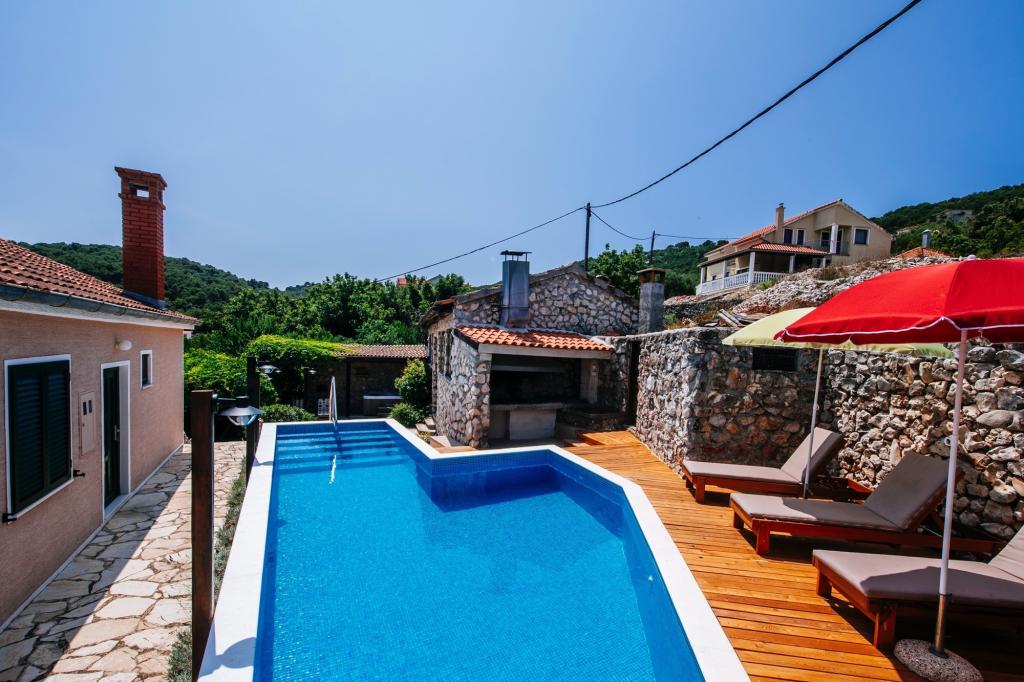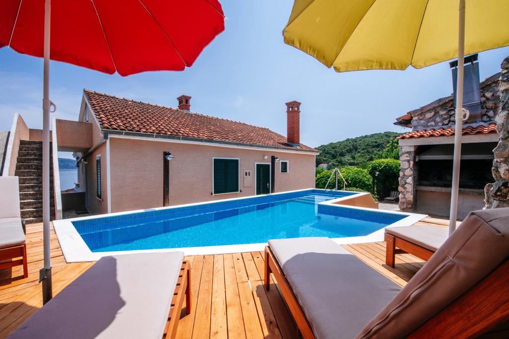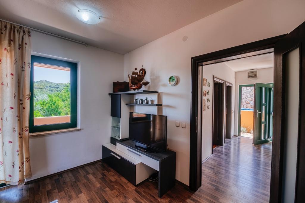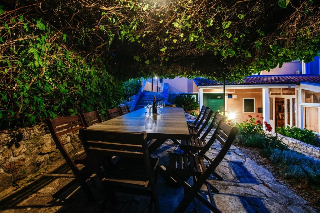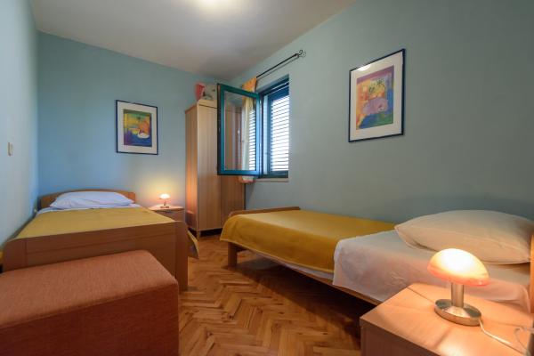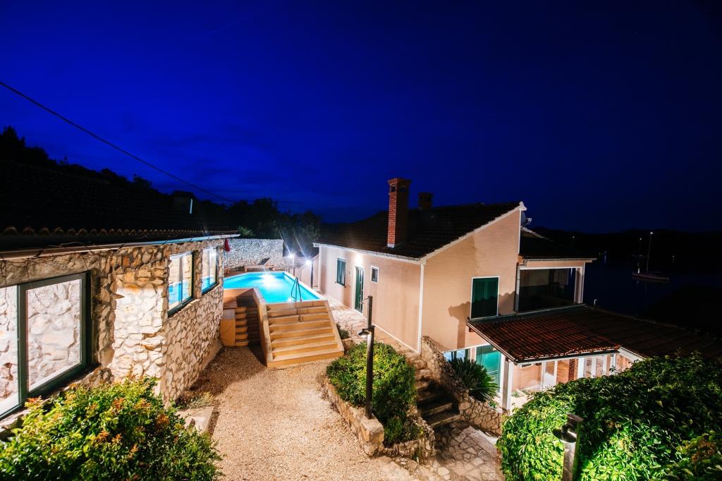 Rodinný dům na 2 podlažích. 1. 5 km od centra města Mali Iž, vyvýšená poloha, 30 m od moře, 30 m od pláže. : Pozemek 600 m2, zahrada na různých úrovních - rostlinami a květinami, dvůr, bazén (3 x 8 m, hloubka 130 cm, 17. 05. -27 09..) S vnitřními schůdky. Nepravidelné bazén. Zahradní sezení, terasa (15 m2). V domě: přístup na internet, pračka. Příjezd končí 40 m od domu. Parkování u 40 m. Obchod 150 m, restaurace 100 m, kamenitá pláž, skalnatá pláž 40 m. Vířivku a saunu. Na pozemku se nachází hned vedle domu, a ještě se krásně zdobené hostinec s grilem, trouba, velký jídelní stůl, bar, mrazák, lednicí pro nápoje, kulečníkem, šipkami a 2 WC.