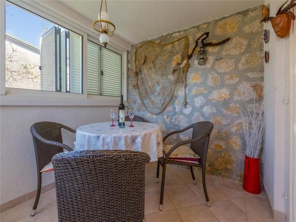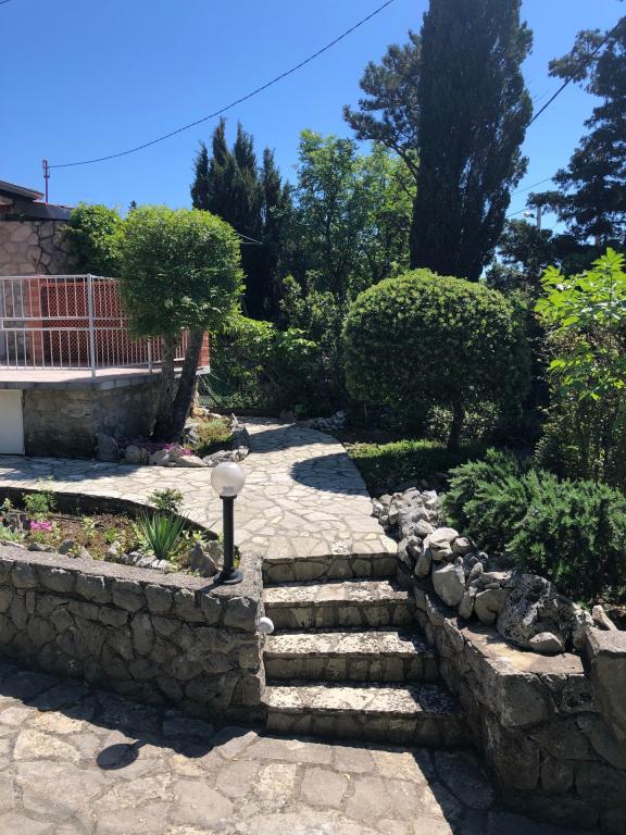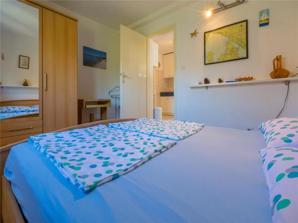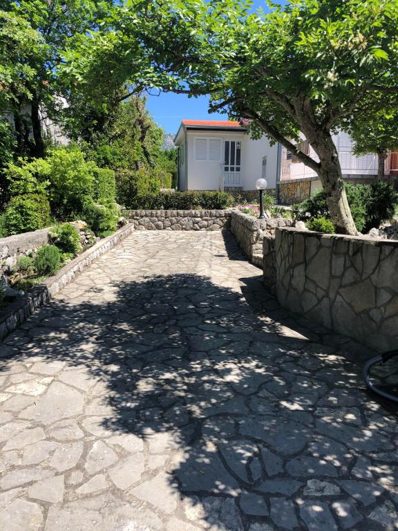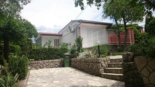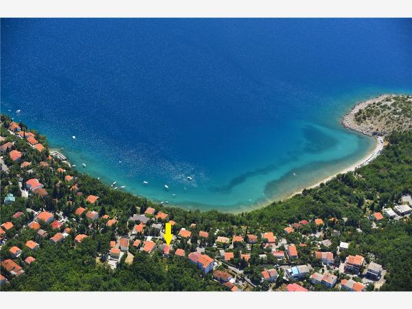 Plně zařízený rekreační dům 50 m2 se zahradou 240 m2, hlídané parkoviště pro 2 vozidla, jen 70 m od přírodní oblázkové pláže s výhledem na ostrov Krk. Nachází se v klidném prostředí vhodném pro dokonalý odpočinek a relaxaci. Skládá se z ložnice, prostorné jídelny a samostatné kuchyně a velkého obývacího pokoje a dvou teras obklopených zelení.