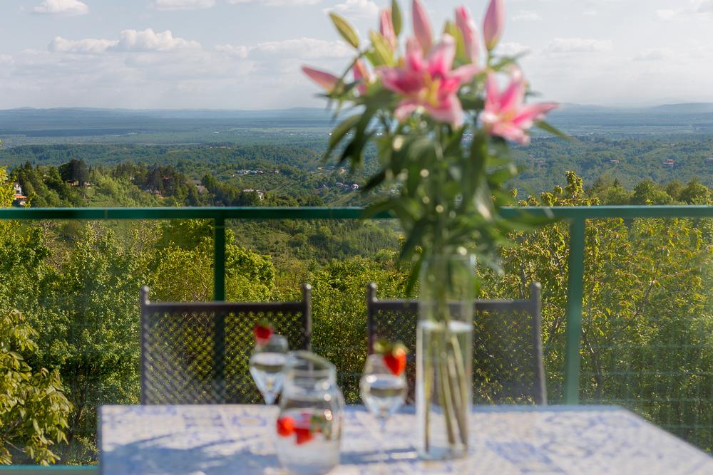 Villa Plešivica view je kombinací tradičního, místního a moderního, industriálního stylu, který je obklopen nedotčenou přírodou. Zvláštní pozornost je věnována detailům, které dodávají vile eleganci, vzdušnost a teplo. Přestože se jedná o novostavbu, byla v roce 2022 kompletně zrekonstruována. Skládá se z jedinečné vstupní haly, prostorného obývacího pokoje, dvou ložnic, samostatné kuchyně, dvou nádherných koupelen a pozdní terasy. Specialitou této vily jsou skleněné panely, které nabízejí otevřený výhled na oblohu a pohádkové svahy vinic a sadů. Areál samotné vily tvoří přetékající bazén, čtyři různé terasy a okouzlující altán. To vše rámuje přes 3000 m2 travnatých ploch ohraničených autochtonními ovocnými stromy a bohatou vegetací. Vila nabízí také lázeňskou a wellness oázu. Samotná výzdoba vily je eklektická a představuje kombinaci současného designového nábytku v kombinaci s restaurovanými art deco a art nouveau kousky, které jsou součástí rodinného dědictví.