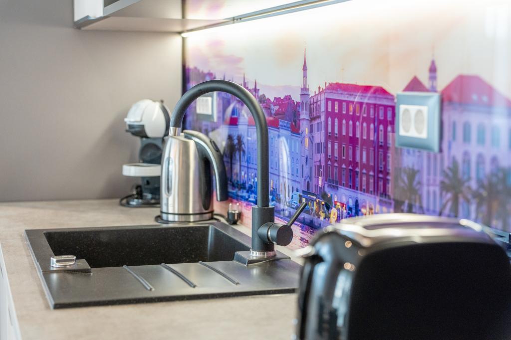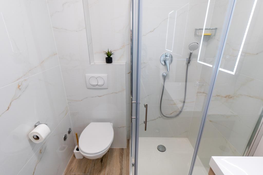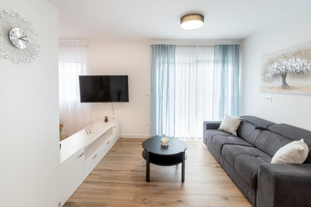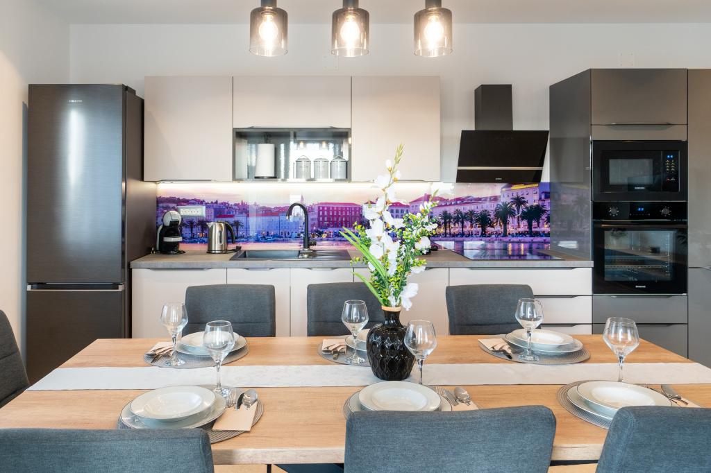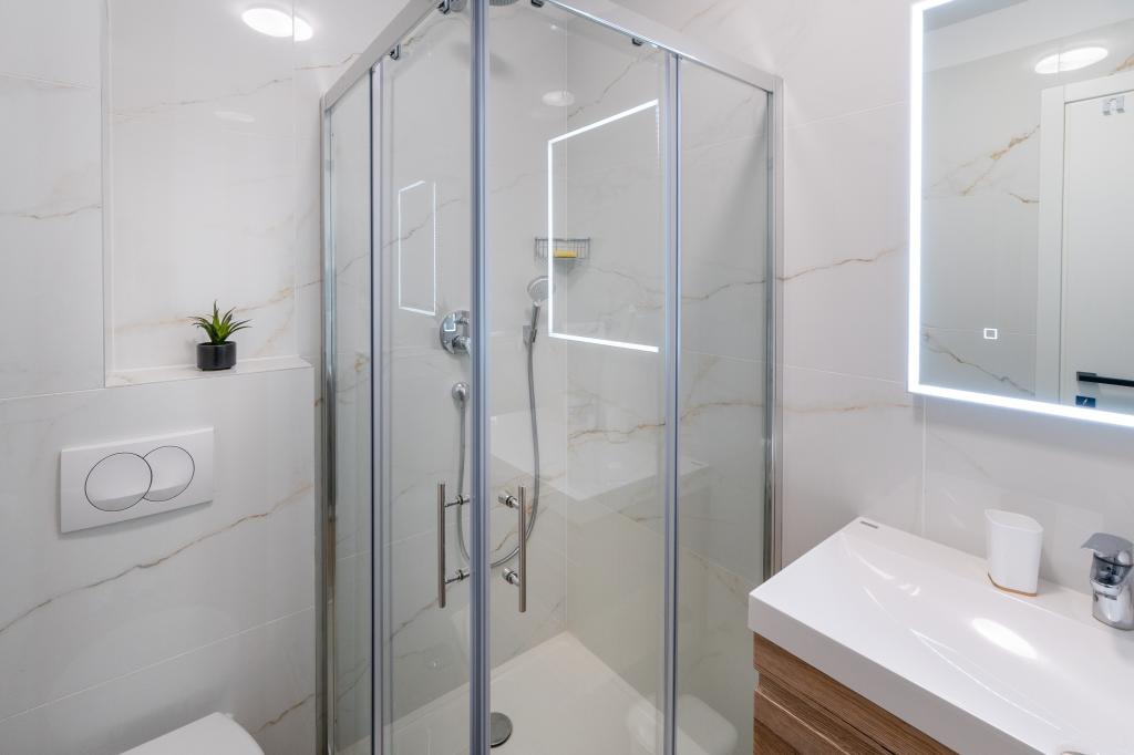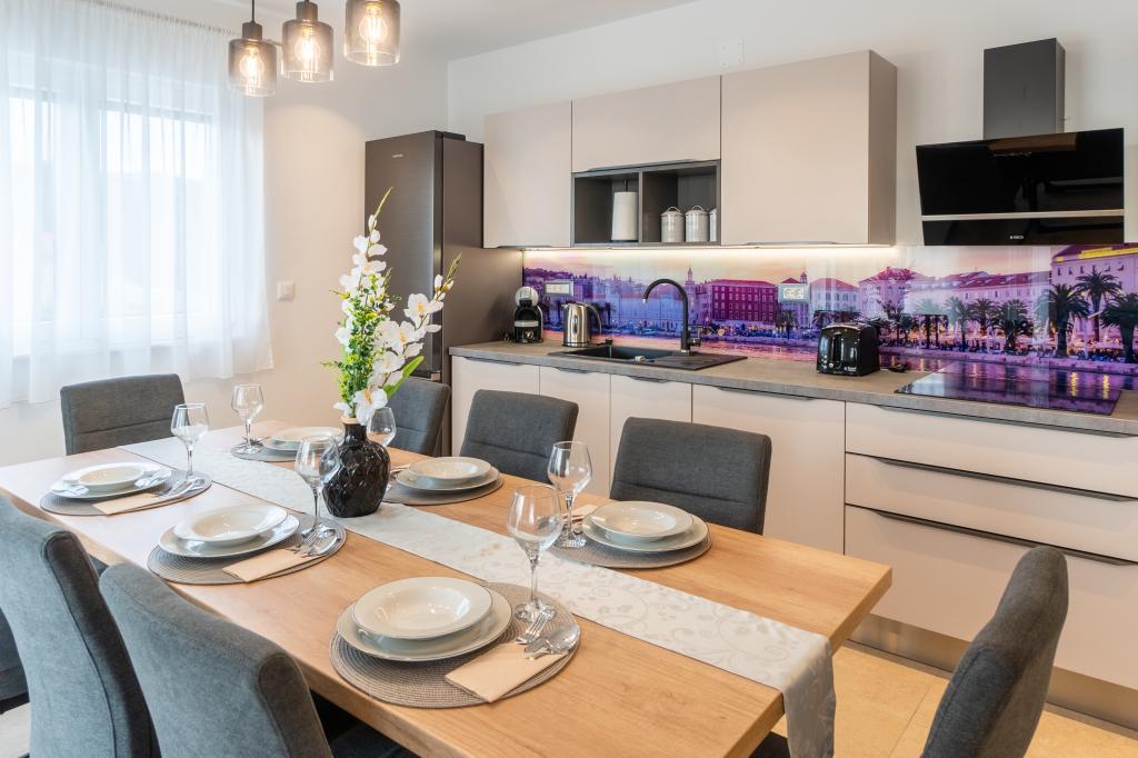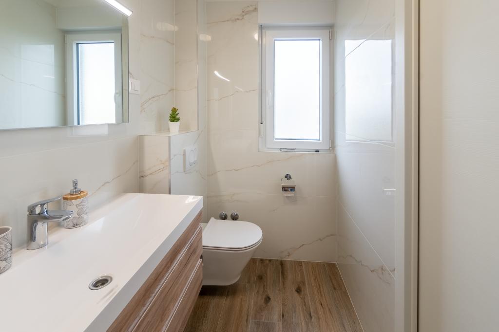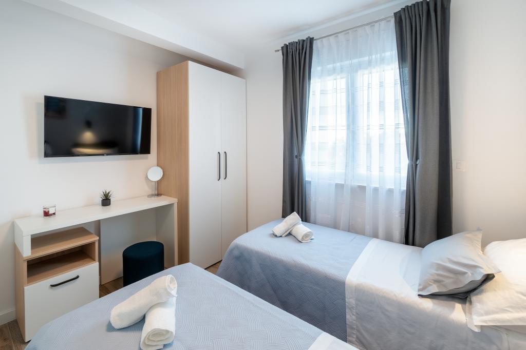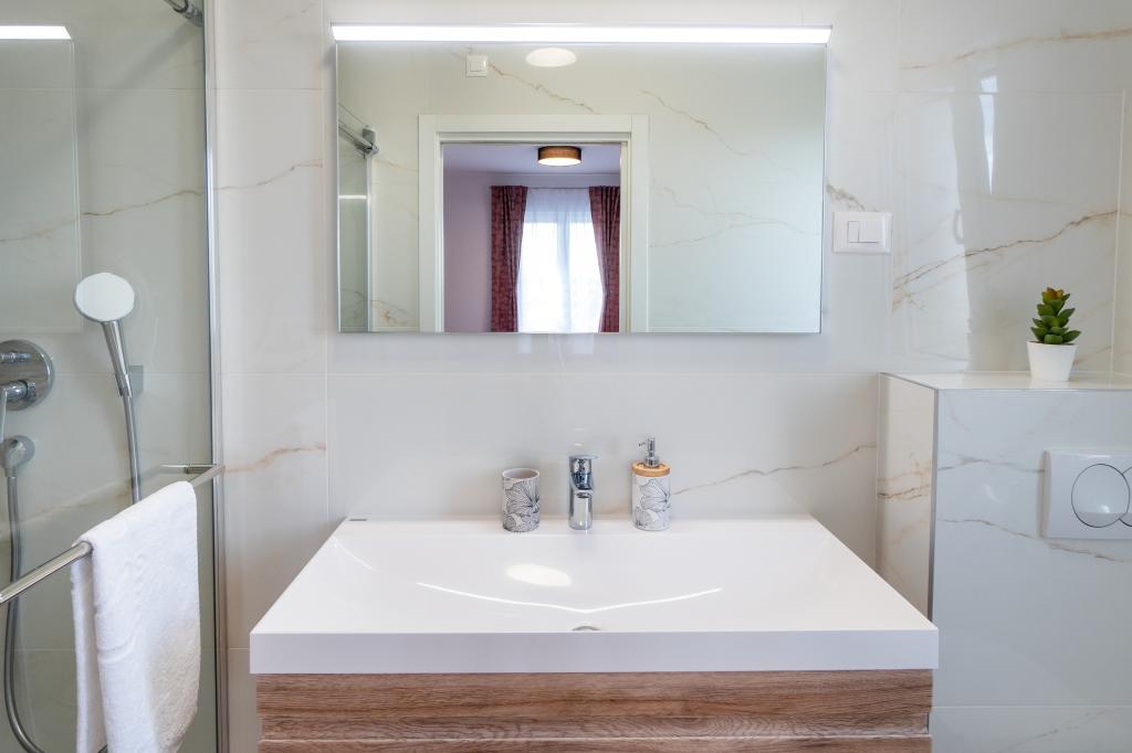 Nové zařízení. Užijte si se svou rodinou v tomto moderním ubytování s krásnými západy slunce a výhledem na moře. Klidná čtvrť. Dva byty, které se pronajímají jako celek. V přízemí se nachází studio sestávající z kuchyně, koupelny a pokoje s manželskou postelí, v obývacím pokoji je také přistýlka. V prvním patře je velký apartmán sestávající z kuchyně, obývacího pokoje, balkonu se zahradním nábytkem ideální pro ranní kávu, dvou pokojů s manželskou postelí a jednoho pokoje se dvěma samostatnými lůžky, které lze v případě potřeby propojit. Tento byt má dvě koupelny, z nichž jedna je součástí pokoje a jedno WC. Ve druhém patře budovy je velká terasa s výhledem do celého areálu a hydromasážní vana pro 5 osob, lehátka na slunění, gril, letní kuchyně a stůl a židle. Venku je také menší zastřešené zázemí s grilem a stolem a lavicemi.