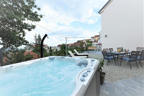 Rekreační dům Amberg je moderní a plně vybavený a nachází se ve starém centru města Kastav, na svahu pod historickou zátokou Creekvine, chráněnou památkovou rezervací. Dům je skrytý z pohledu s jedinečným výhledem na Kvarnerský záliv a okolní hory a nabízí komfort prvotřídního rekreačního domku. Poloha je ideální pro návštěvníky, kteří chtějí objevit Opatijskou Riviéru, Istrii a Kvarner. Dům má tři světlé a prostorné dvoulůžkové pokoje, tři koupelny, galerii. Všechny pokoje mají vlastní koupelnu. Jeden pokoj má vlastní velkou terasu. Všechny mají vlastní TV s plochou obrazovkou a samostatné klimatizační jednotky. Některé pokoje mají toaletu a pracovní stůl. V dolní části domu se nachází obývací pokoj, dobře vybavená kuchyň a jídelna, hřiště, prádelna a úschovna jízdních kol. Wifi je k dispozici v celé budově. Ve dvoře je vířivka pro šest osob (2x2 m), kvalitní zahradní nábytek, houpačka a gril. Ideální pro rodinu a přátele.