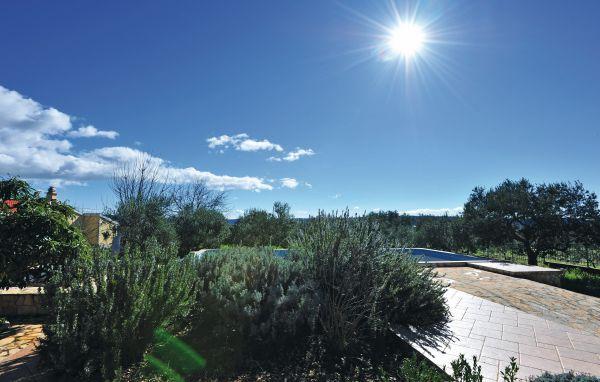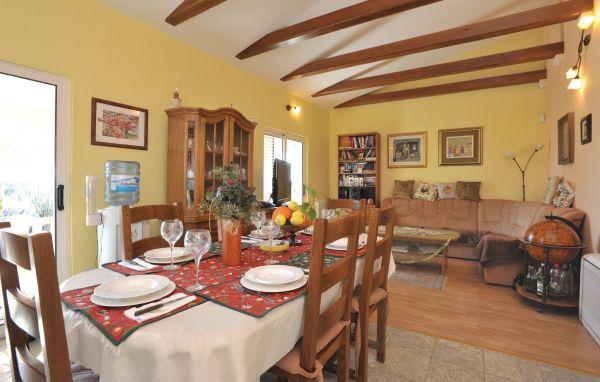 Komletno zařízená vila s 3 ložnice, kuchyň a koupelna + samostatné zařízeného bytu, bazén (55 m2), sauna s posilovacími stroji, fotbalové hřiště s umělou trávou, bowling, venkovní terasa, vnitřní a venkovní gril, parkoviště pro několik aut, oplocení . Na pozemku je velká olivovníky a středomořské rostliny a květiny.