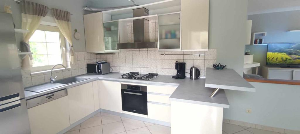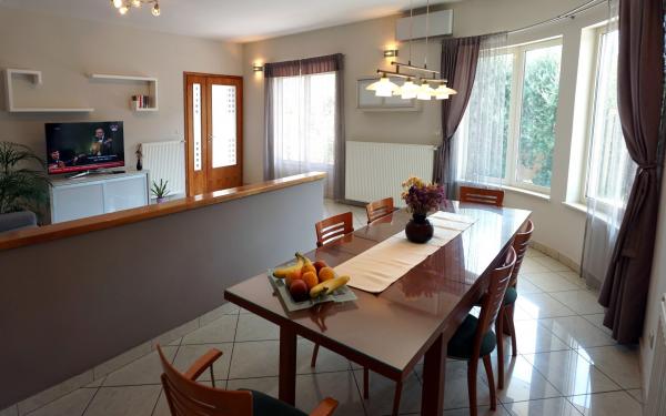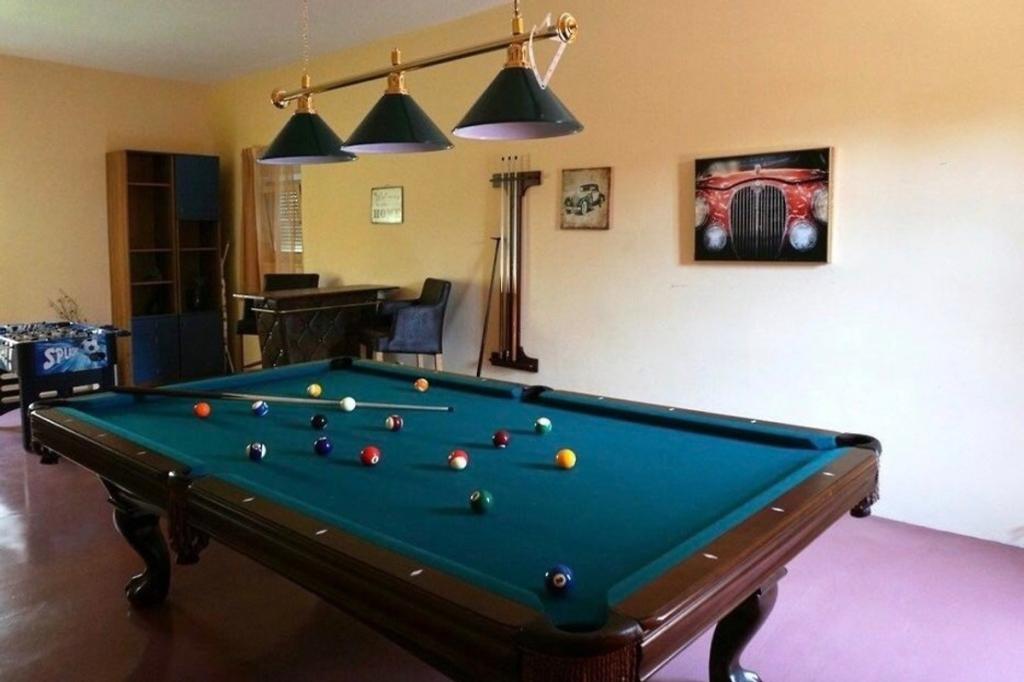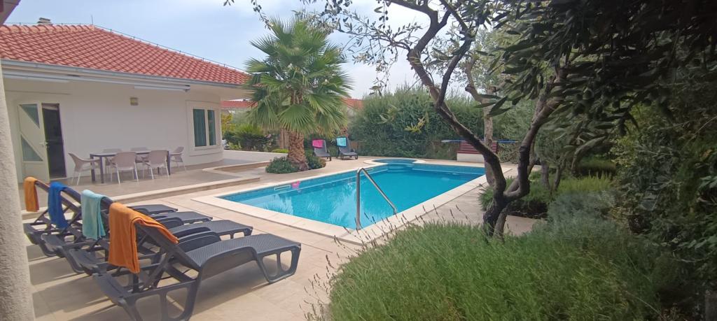 Vítejte v našem krásném prázdninovém domě, kde na vás čeká příjemný bazén s uklidňující jacuzzi, prostorný zahradní ráj a okouzlující herna, abyste si v naší prostorné rodinné oáze vytvořili nezapomenutelné vzpomínky. Náš moderní interiér pojme 8 hostů a má velkou místnost s kulečníkem, šipkami, stolním fotbalem a stolním tenisem. Vstupte do vytříbeného interiéru naší vily, která pohodlně ubytuje 8 osob ve 4 elegantně zařízených ložnicích a 3 koupelnách. Tři pokoje jsou vybaveny pohodlnými manželskými postelemi, přičemž jeden nabízí dvě pohodlné samostatné postele. Srdcem vily je prostorný a pohodlný otevřený obývací pokoj, který plynule ladí s příjemnou jídelnou a moderní kuchyní. Prostorná oplocená zahrada s příjemným bazénem je obklopena okouzlujícími květinami, středomořskými bylinami a ovocnými stromy a vytváří idylické prostředí pro venkovní relaxaci, koupání, stolování a hry.