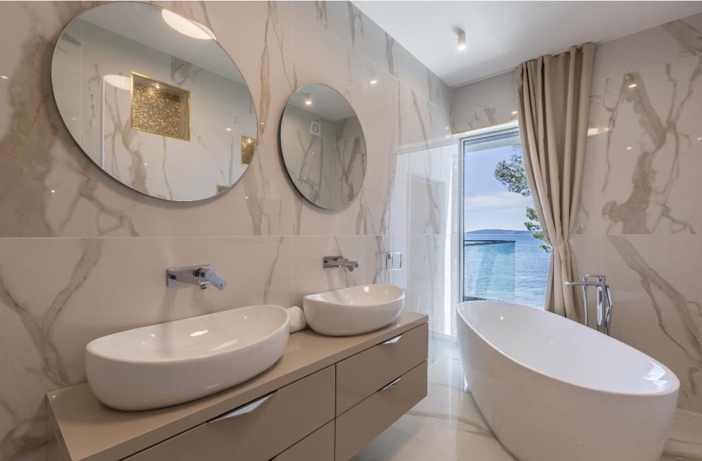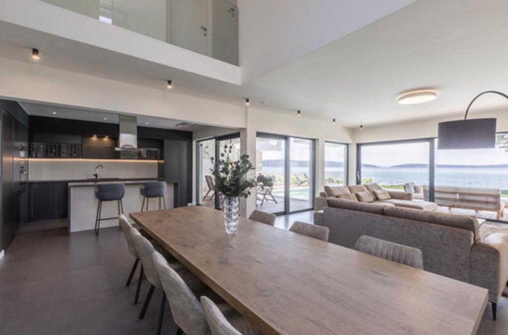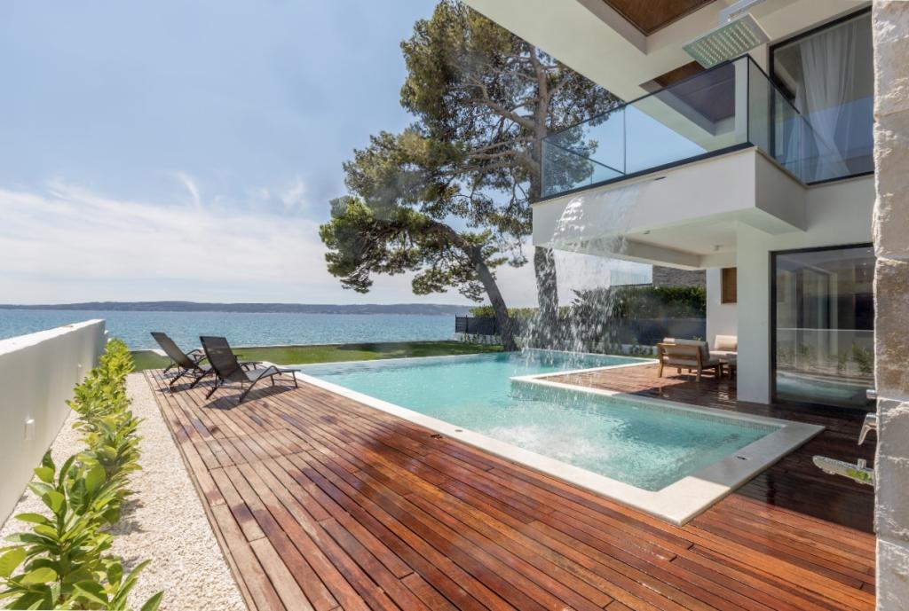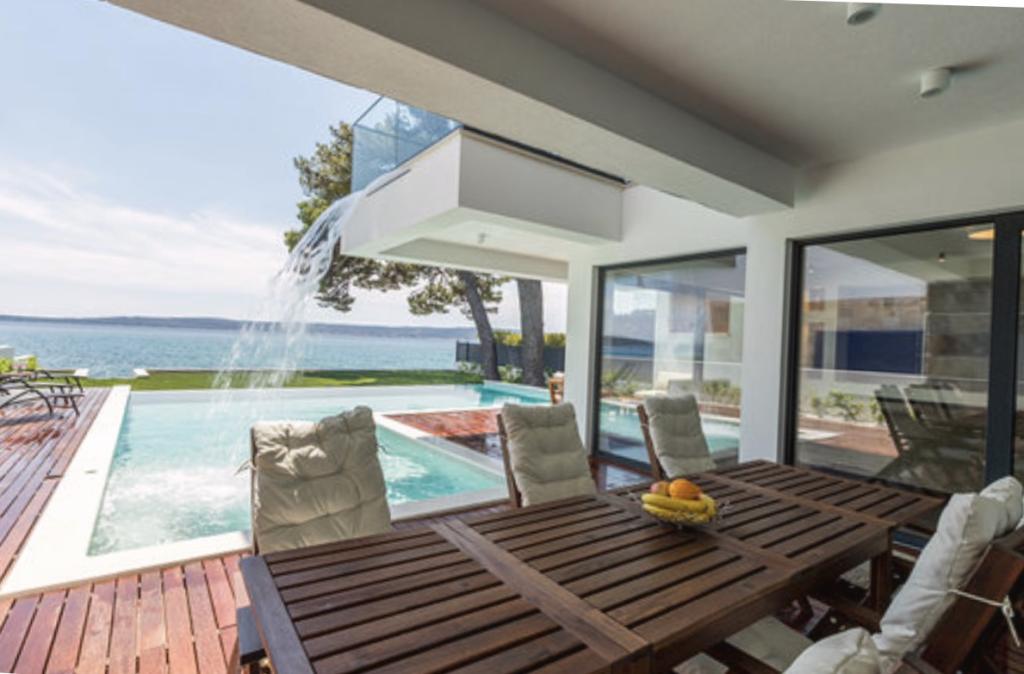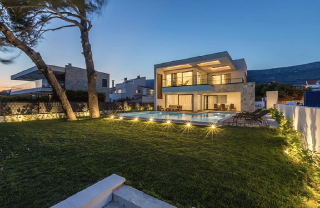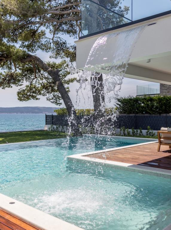 Villa Sea Star je pečlivě navržena, vyzařuje luxus a pohodlí a je skutečným příkladem moderní vily, která se rozkládá na třech podlažích: suterén, přízemí a první patro. Z jižních balkonů je výhled na krásné modré Jaderské moře až na Čiovo a Split. Vila má 4 ložnice, 4 koupelny a venkovní WC u bazénu a je ideálním ubytováním pro 8 osob. Z balkonu hlavní místnosti se do prostorného bazénu spouští vodopád. Vlastnost vily je 1200 m2 a obytná část zaujímá 400 m2. Dvůr je obohacen o nekonečný bazén, venkovní gril a salonek s nádherným výhledem na modré Jaderské moře a jen pár kroků od pláže a vstupu do moře. Vila má také garáž a soukromé parkoviště pro 4 auta. Váš příjezd vám umožní vychutnat si krásu odpočinku a luxusu, který může poskytnout pouze Dalmácie a vila Sea Star.