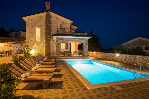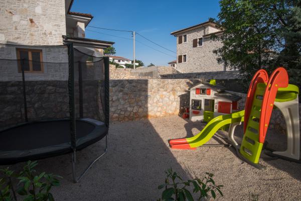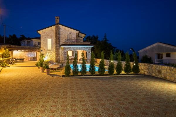 Villa nádvoří je pěkný kamenný dům, který nabízí ideální dovolenou. To je roztříděn s pěti hvězdami. Nachází se na ostrově 15 minut jízdy od centra města. Je plně vybavené a moderní. Venkovní areál má tři parkovací stání, bazén, dětské hřiště, barbecue, jackuzijem a stolní tenis. Bazénu zahrnuje slunečník a šest lehátka pro úplnou relaxaci. Pro naše hosty, můžeme také najít čtyři bezplatné zapůjčení jízdních kol, aby si jízdu v přírodě. Interiér bytu tvoří kuchyňská linka se všemi spotřebiči, obývací pokoj a jídelna a WC. V patře jsou tři ložnice a dvě koupelny. Celá vila má 4 klimatizace, internet zdarma, čtyři televize se satelitním příjmem. Z balkonu domu, tam je krásný výhled na ostrov Cres.