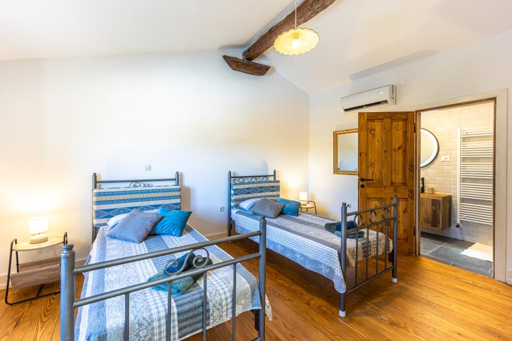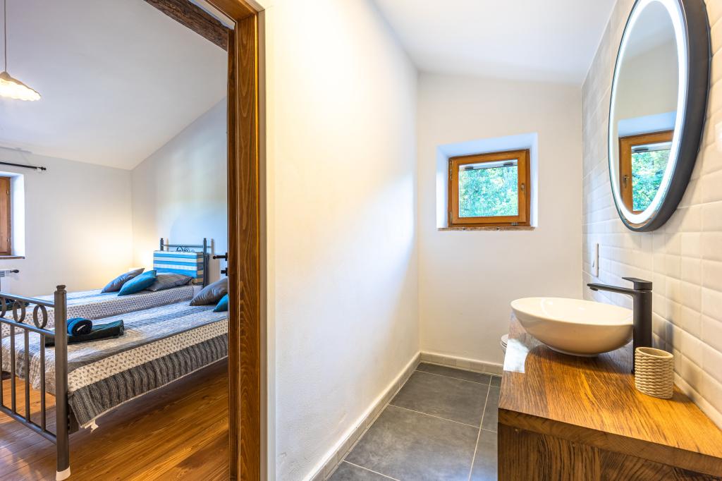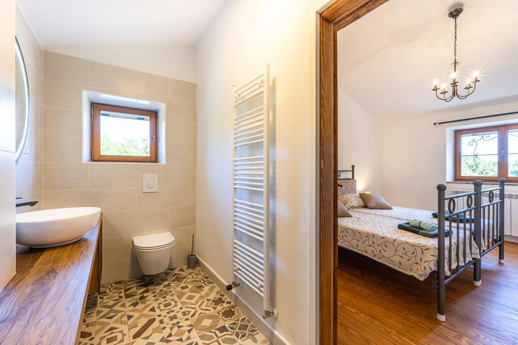 Každá ložnice ve vile má vlastní plně vybavenou koupelnu, takže všichni hosté mají svůj soukromý prostor a pohodlí. Pohovka v obývacím pokoji je rozkládací a lze ji přeměnit na manželskou postel. Kuchyň je také plně vybavena lednicí, mikrovlnnou troubou, sporákem, varnou konvicí, toustovačem a kompletními příbory. Pobavte se s přáteli na přední verandě obklopené stromy a před bazénem nebo v obývacím pokoji. Máme bezdrátové připojení k internetu, pokud si potřebujete odpočinout od dobrodružství po istrijském venkově, a televizi v každé ložnici. Každý pokoj je vybaven klimatizací. Jednou z klíčových výhod vily je, že se nachází v malé a klidné istrijské vesničce daleko od rušného západního pobřeží Istrie, a přesto je jen 15 minut autem od moře a mnoha neprozkoumaných pláží jižně od letoviska Rabac. .