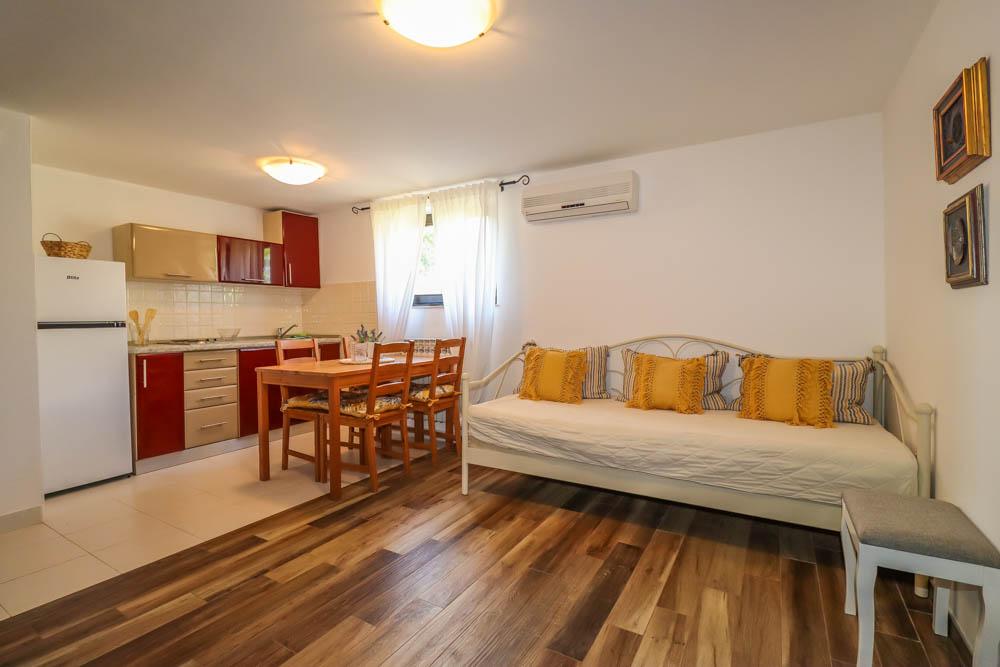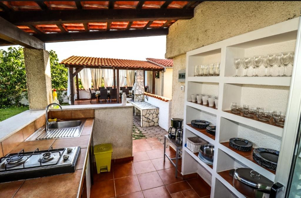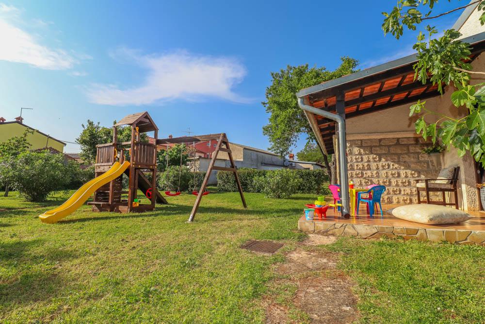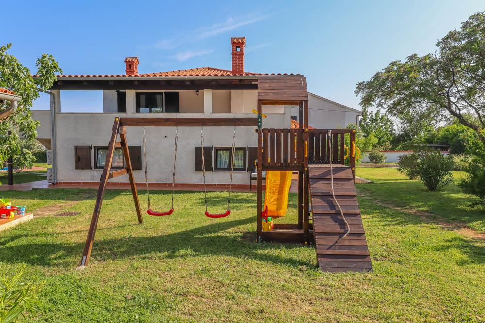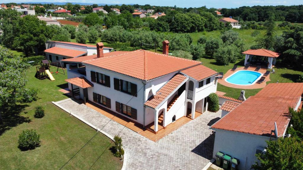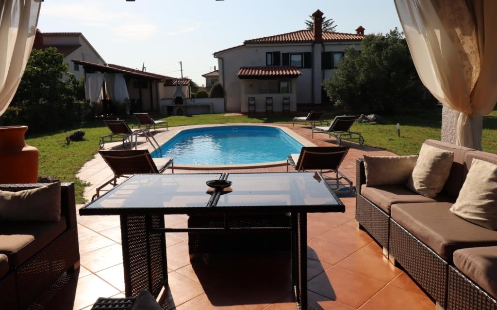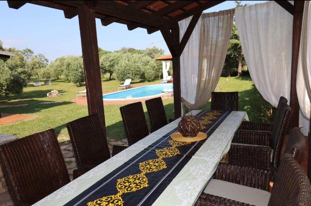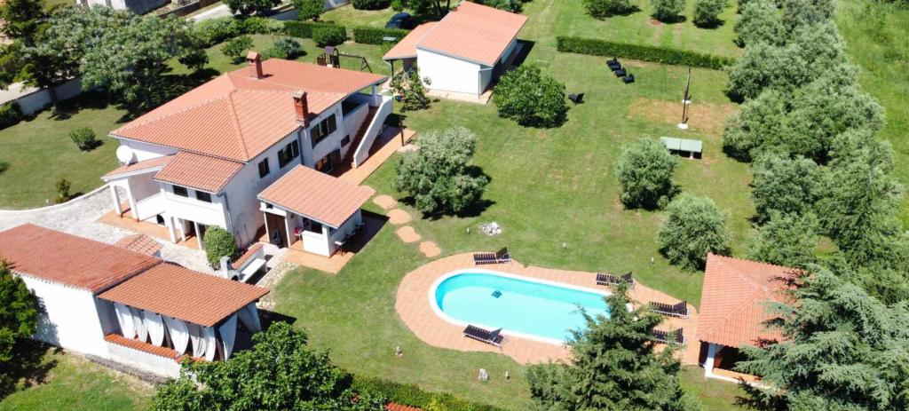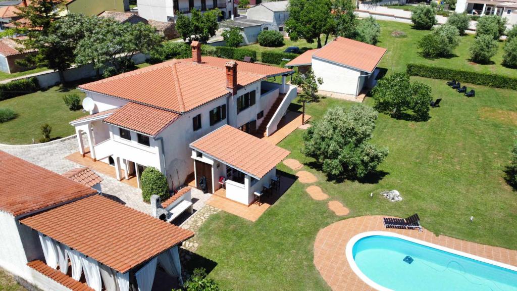 Krásná vila Eufemia se třemi apartmány se nachází v klidné vesnici Muntić a je ideální pro rodiny a přátele. Nabízí soukromí, pohodlí a řadu zařízení, které udělají váš pobyt výjimečným. Vila má čtyři ložnice – dva apartmány s jednou ložnicí a jeden apartmán se dvěma ložnicemi. Každý apartmán je vybaven koupelnou s vanou nebo sprchovým koutem, klimatizací, kuchyní a satelitní TV. Prostorný, oplocený dvůr o rozloze 2000 m² nabízí bazén, altán a letní kuchyni s grilem, ideální pro venkovní vyžití. Terasa pojme až 10 osob, ideální pro setkání. K rekreaci slouží volejbalové hřiště, stolní tenis, posilovna a sauna, večer si můžete odpočinout u kulečníku v taverně. Vila nabízí naprosté soukromí s oploceným pozemkem a třemi parkovacími místy. Minimarket je vzdálen minutu chůze a větší supermarkety a město Pula jsou vzdálené 10 kilometrů. Domácí mazlíčci jsou vítáni, což z vily dělá perfektní místo pro dovolenou pro celou rodinu.