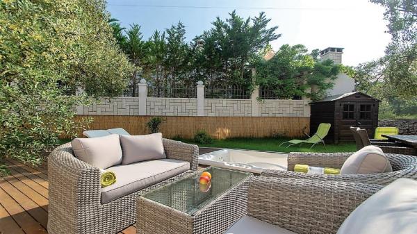 Nově postavený dům v bezprostřední blízkosti moře (zátoka Račišće, Lumbarda). Dům je postaven z nejkvalitnějších přírodních materiálů (kámen, dřevo, keramika) a vybaven moderní technologií (solární systém na ohřev teplé vody, špičkové invertorové klimatizace ve všech místnostech), aby bylo pohodlné bydlet i během nejteplejší dny. Je obklopen staletými olivovníky, které dodávají prostoru zvláštní atmosféru a kouzlo. Dům se skládá z přízemí s otevřeným prostorem obývacího pokoje, kuchyně a prostorné jídelny s otevřeným krbem (gril), ložnice s manželskou postelí a koupelny. Přízemí je orientováno do zahrady a na terasu s terasou z tropického dřeva a vířivkou, takže prostor zaručuje soukromí a relaxaci. V prvním patře je velká ložnice s manželskou postelí pro dvě osoby a vlastní velká terasa s výhledem na moře a Pelješac. Z galerie se vstupuje do luxusní koupelny s velkou vanou a balkonem. K PRONÁJMU CELÉ VILY, ŽÁDNÍ DALŠÍ HOSTÉ