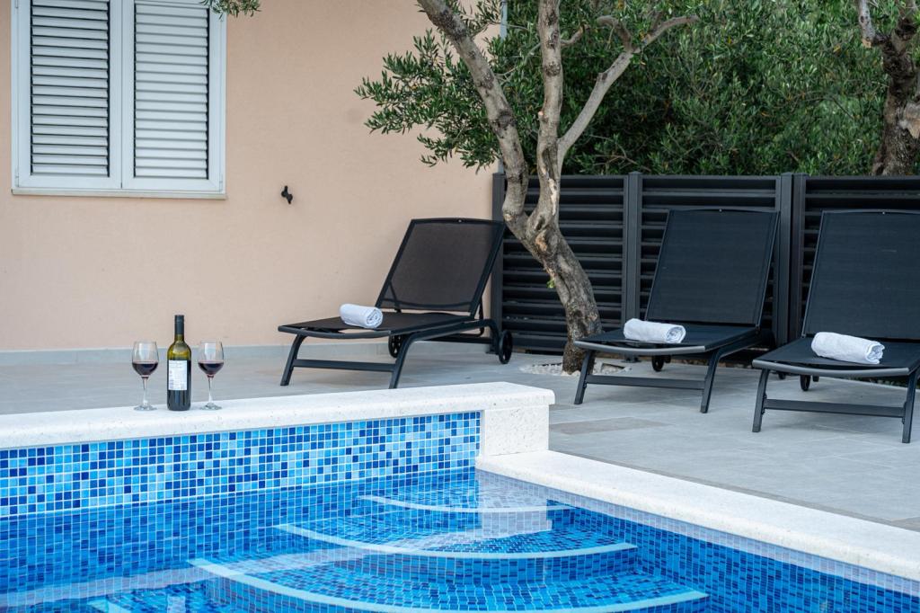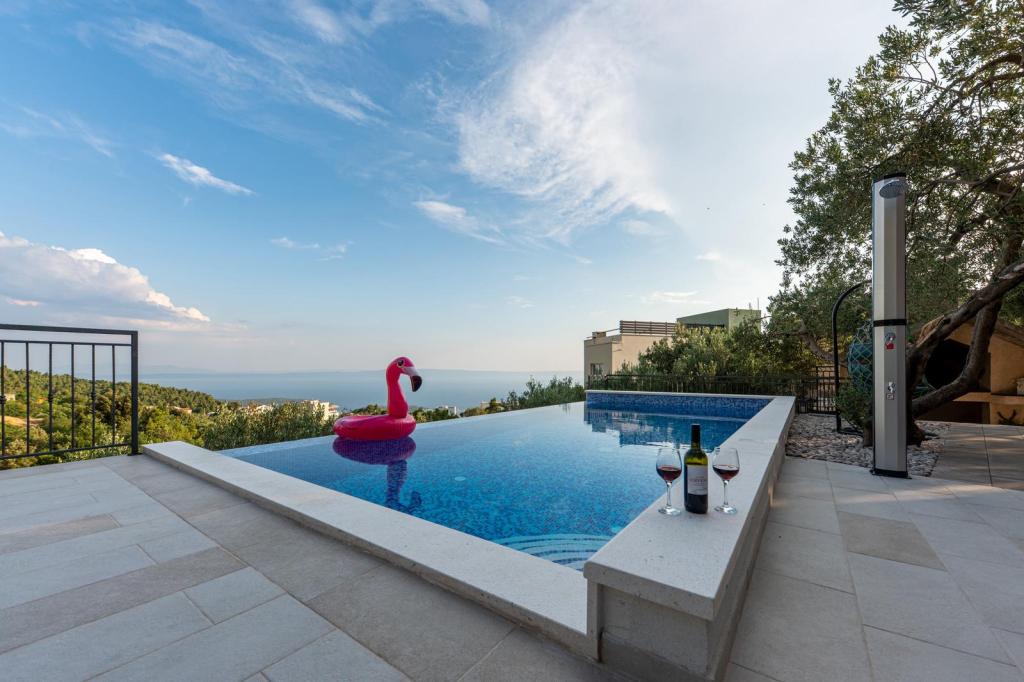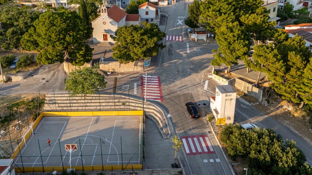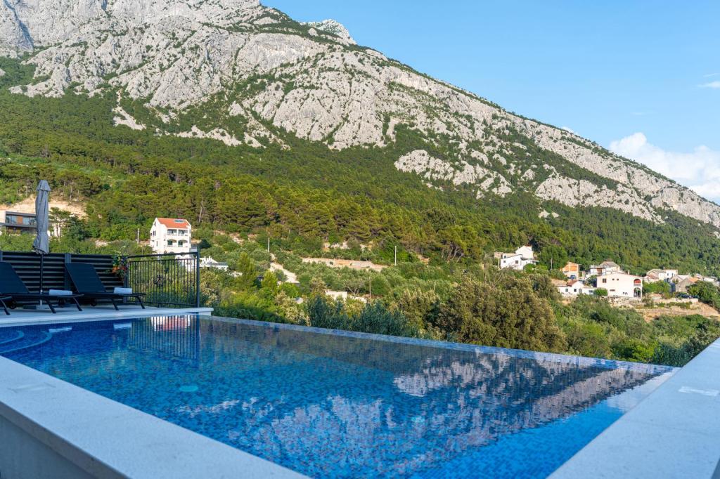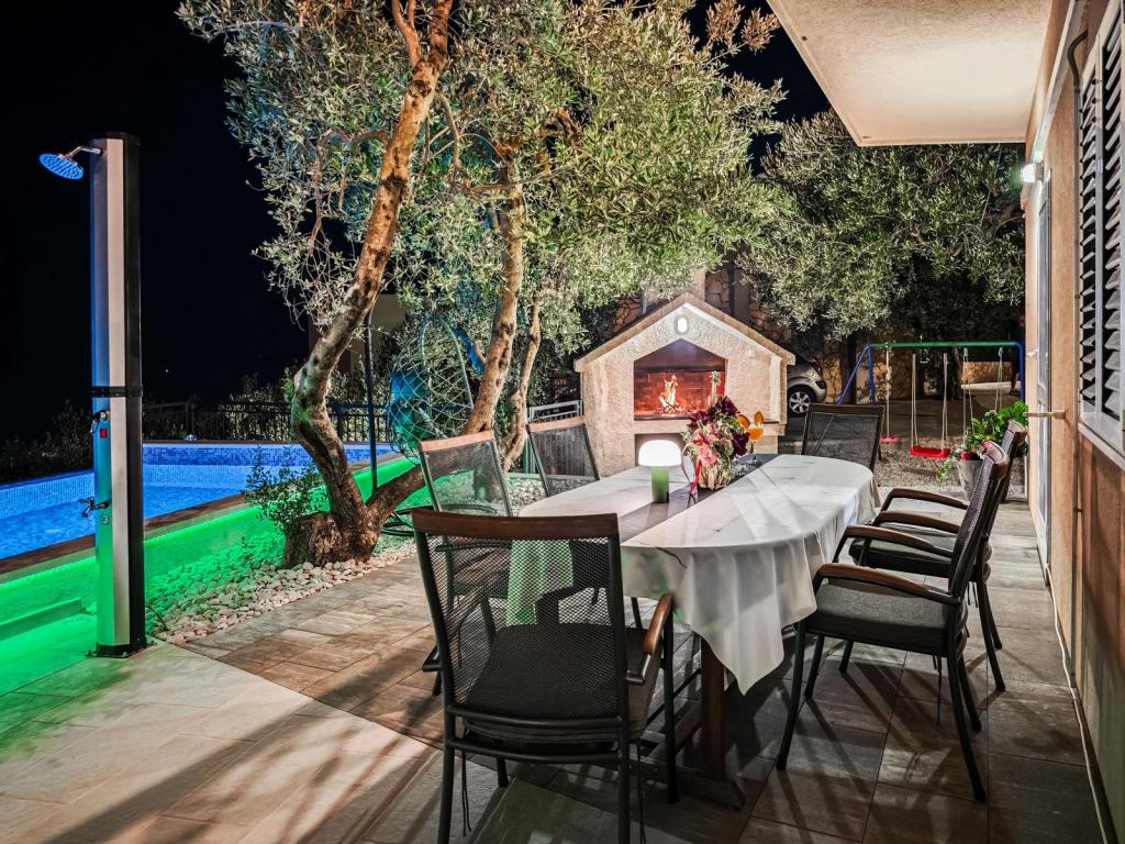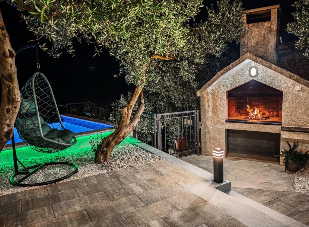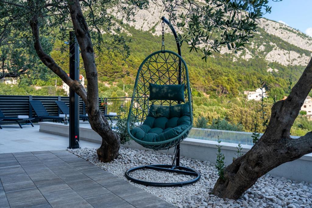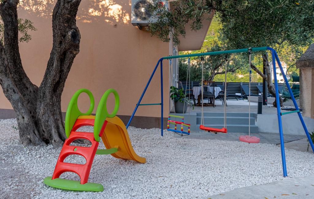 Místo je bezpečné a relaxační s dostatkem parkovacích míst a v bezprostřední blízkosti (30 m) se nachází restaurace, která nabízí vynikající jídlo. Strávte nezapomenutelné chvíle u venkovního bazénu, krbu a venkovního prostoru pro zábavu s výhledem na Makarskou a Biokovo. Postarali jsme se také o dětské aktivity, jako jsou houpačky, skluzavka a zábava pro dospělé i děti s kulečníkem, šipkami a PlayStationem. K dispozici je také fotbalové a basketbalové hřiště jen 30 metrů od domu.