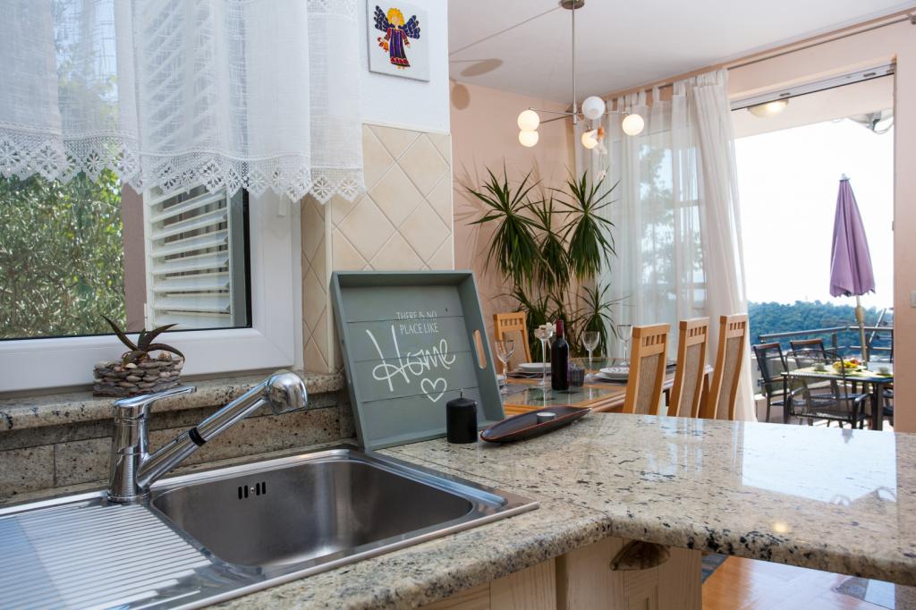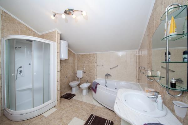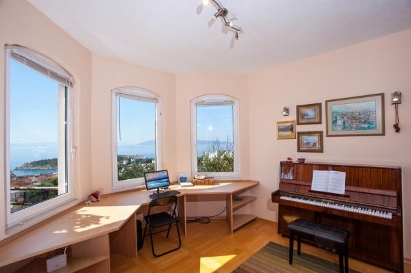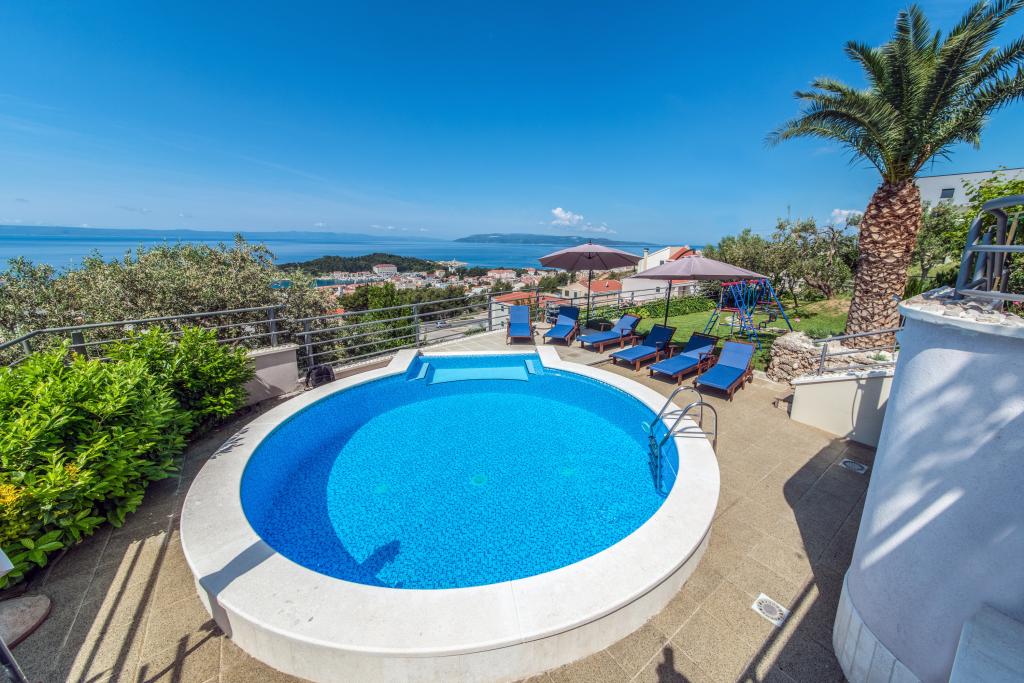 Moderně zařízený dům s bazénem nad městem Makarska, obklopený zelenými trávníky, zeleninových rostlin, ovocných stromů a zelených ploch. Na třech podlažích a 350 m2 architektonických genia dovedností jsou rozmístěny 5 ložnic, 2 obývací pokoje, 5 koupelen, 6 WC ea.U dům může ubytovat 10 osob v primárním a až 6 přistýlek. Ceny jsou označeny zůstat až 11 lidí, zbytek je navíc. Ve vile jsou 4 malé malá a velká kuchyň se dvěma myčky. Vila je klimatizovaná, s výjimkou zemí a v horku není potřeba. Hosté mohou využít odrna s hrozny a čerstvé fíky. Jsme schopni zajistit služby snídani nebo večeři. Bazén v přední části domu, odkud výhled na město, přístav, moře a okolní ostrovy v průměru je 5 metrů hloubky, 01:20 m. Vila je pronajmout od 2 Pochod k měsíci říjnu. To si lze vypůjčit přes zimu, ale nejméně tři týdny. Ve dvoře vily je možné zaparkovat až 5 aut. Vedle domu je taverna s grilem.