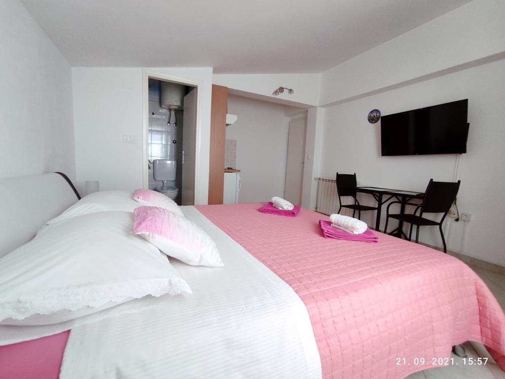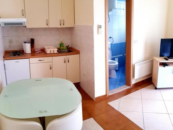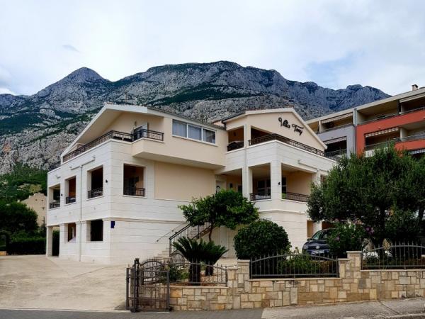 Kompletně a moderně vybavená vila s bazénem nedaleko centra Makarské, 7-8 minut od centra města. Zařízení má apartmán se 2 ložnicemi pro 4+ 3 osoby, 1 apartmán se 2 ložnicemi pro 4 osoby, byt pro 2 +1 osoby a 3 ložnice se společnou kuchyní. Každá ložnice má vlastní koupelnu, TV, lednici a balkon. Hosté mají k dispozici bazén o rozměrech 4x6 metrů, altán s letní kuchyní, dětská hřiště, hlídaná parkovací místa a prostorný dvůr se zahradou. V bezprostřední blízkosti budovy (1 km) se nachází známá pláž FKK Nugal, na kterou se dostanete pouze pěšky. V blízkosti domu jsou všechny velké supermarkety (Lidl, Kaufland, Konzum) a také čerpací stanice a nemocnice. Vila je vhodná pro větší skupiny lidí, stejně jako pro páry a rodiny s dětmi.