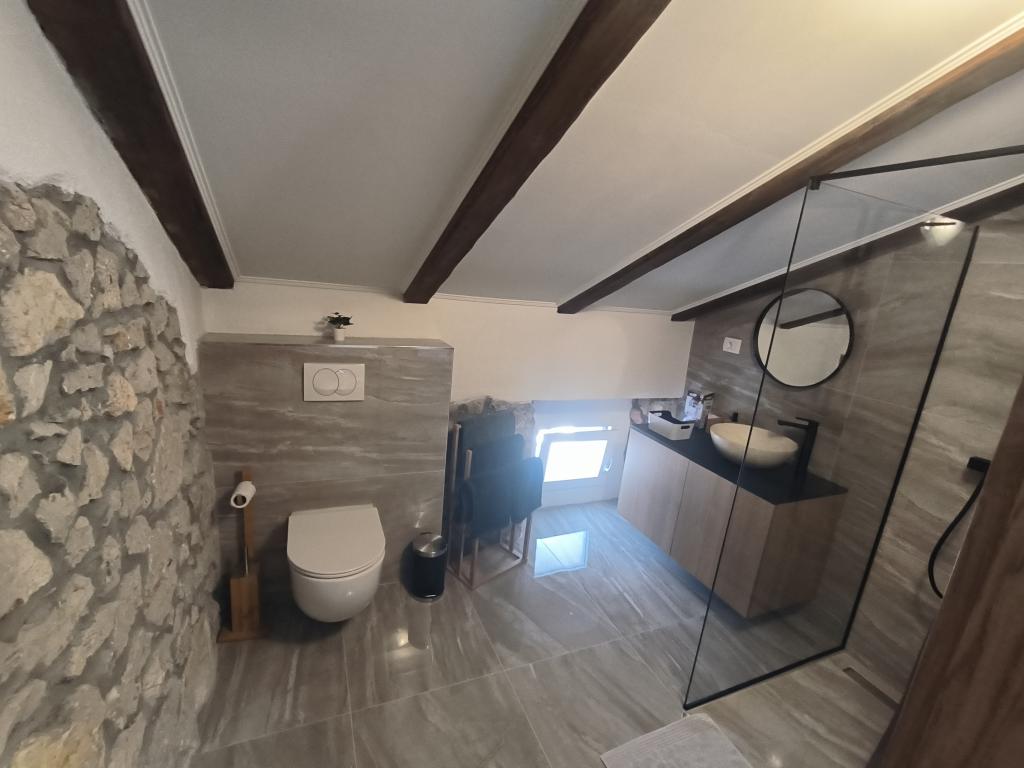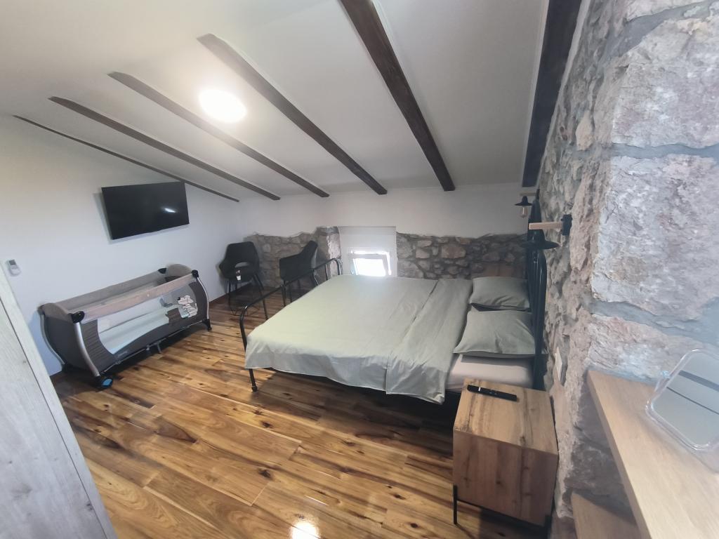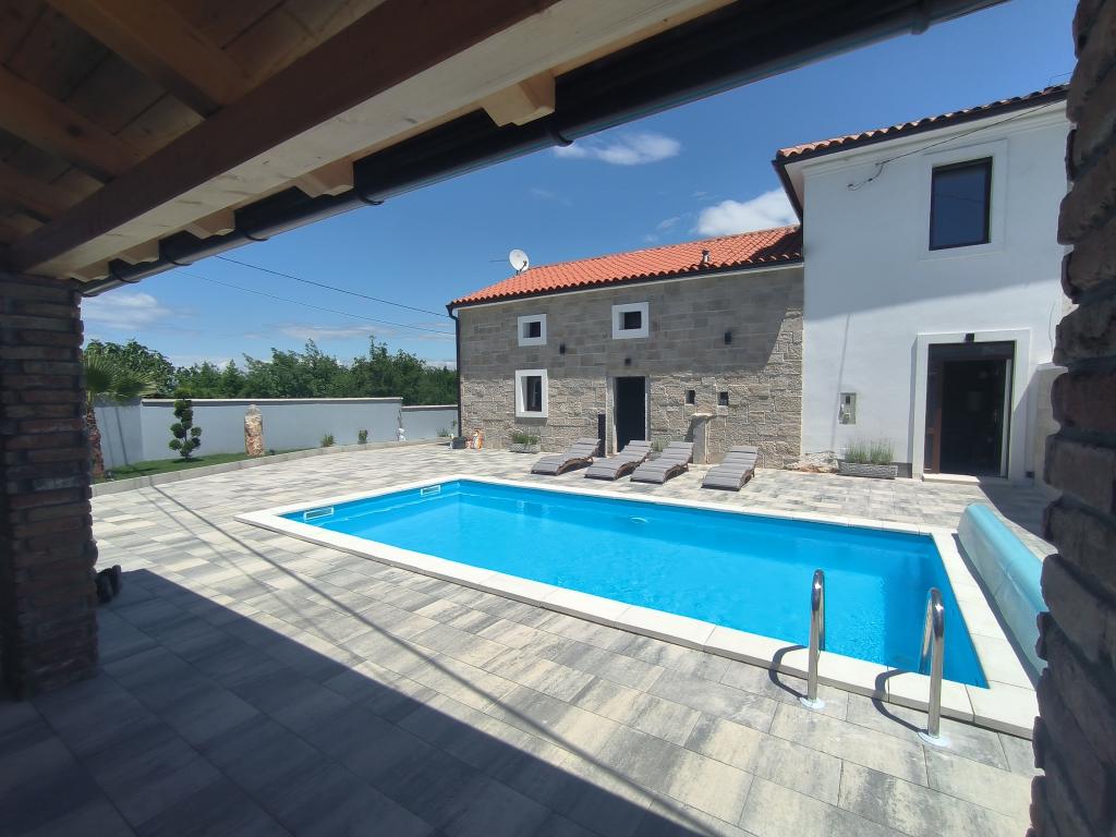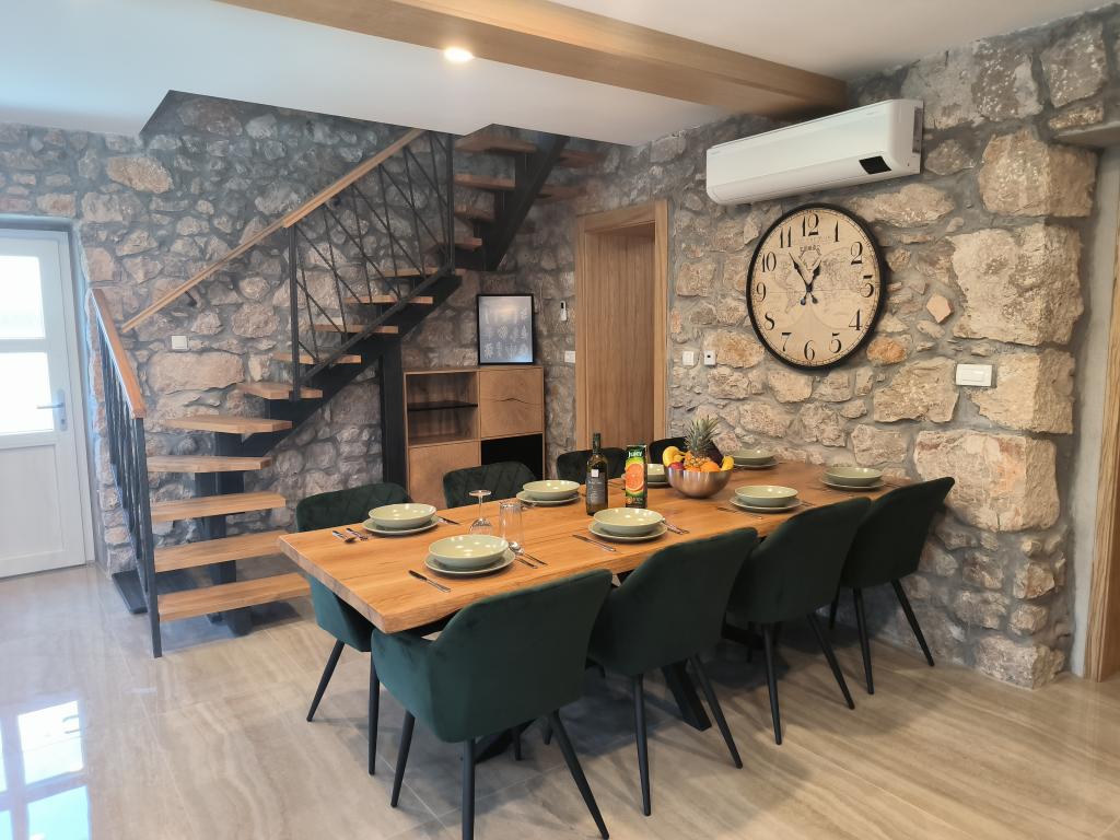 Villa Kristina je zrekonstruovaná a moderně zařízená vila, která na svých 140 m2 pojme 6-8 osob. Nachází se v klidné vesnici Gabonjin, nedaleko města a turistického centra Malinska. Vila má dvě patra a nabízí hostům kuchyň s jídelním koutem, obývací pokoj a koupelnu v přízemí a 3 klimatizované ložnice s manželskými postelemi a vlastní koupelnou s hydromasážními sprchami v horním patře. Před domem je dvůr o velikosti 200 m2, kde mohou hosté využívat vyhřívaný bazén o velikosti 30 m2 nebo si připravovat jídla na grilu. Na dvoře je také venkovní sprcha. Klimatizace a internet jsou zahrnuty v ceně. Na pozemku jsou 3 parkovací místa.