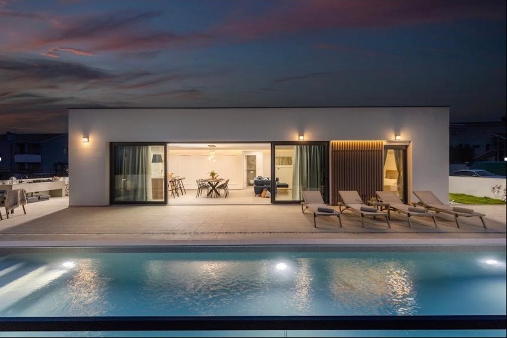 Villa Coralis se nachází ve Vrsi, pouhých 5 km od královského města Nin a 20 km od města Zadar. Tato moderní kráska zaujme hosty, kteří hledají luxusní a klidnou dovolenou a kteří si budou užívat opalování, koupání a relaxaci společně s rodinou nebo přáteli. Vrsi je malé turistické místo, které vítá hosty z celého světa svými moderními a krásnými vilami a svou přátelskostí. Užijete si procházky po dlouhých oblázkových plážích, kde si užijete slunce, čisté moře a venkovní posilovnu. Vila Coralis byla postavena v moderním stavebním stylu v roce 2022, má 130 m2 obytné plochy, 45 m2 je velký bazén a celková plocha nemovitosti je 450 m2. Vila je plně klimatizovaná a může se v ní ubytovat maximálně 8 osob, optimální počet je 6. Vila je jednopatrová a pohodlně se ubytujete ve 3 ložnicích s manželskými postelemi, které mají vlastní sociální zařízení. koupelny se sprchou a další koupelna. Jeho součástí je také dětské hřiště, stolní tenis a PS4.