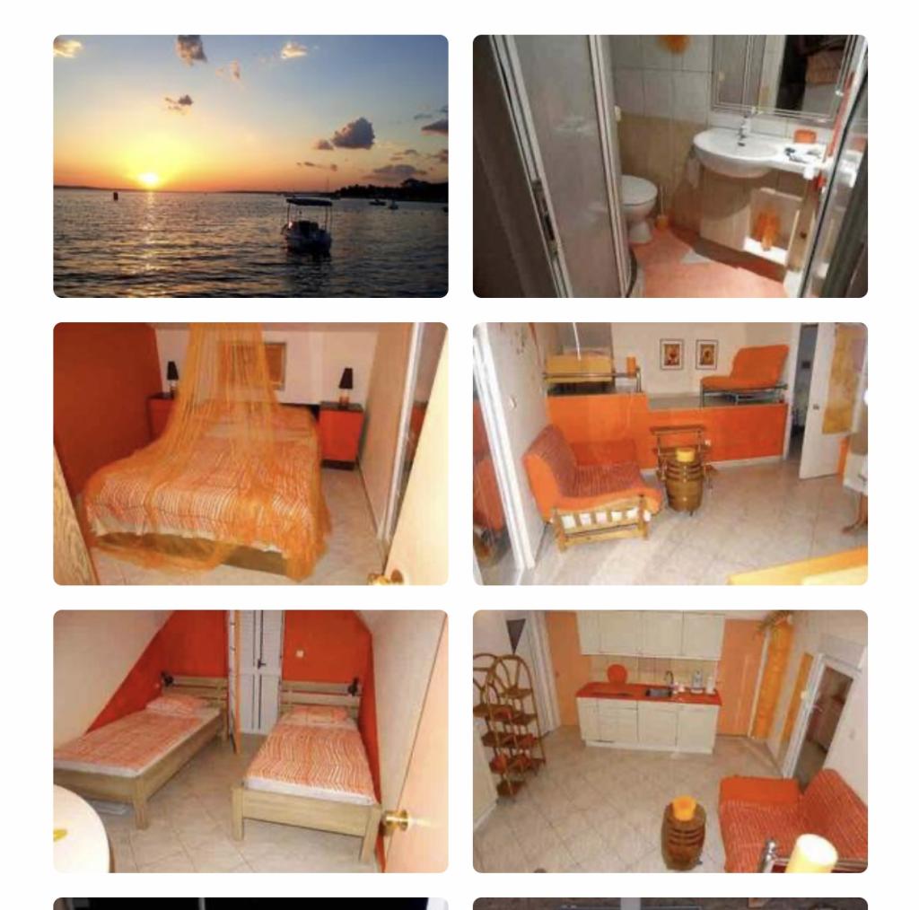 plně vybavená vila se 7 samostatnými apartmány růžový apartmán pro 3 os. 70 € žlutý apartmán 4 osoby 110 € modrý apartmán 7+1. 140 € zelený apartmán 6 osob 130 € oranžový apartmán 7 osob 140 € červený apartmán 6+1 130 € hnědý apartmán 2+2 děti 75 € ve dvoutisícové velké kuchyni na gril a 30 € navíc závěrečný úklid a 2 € na osobu pobytová taxa .