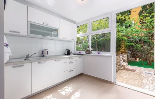 Tento krásný rekreační dům se nachází u moře v malé okouzlující vesnici Smokvica Krmpotska. Daleko od shonu najdete tady klid a klid. Dům se skládá ze tří samostatných apartmánů, které jsou propojeny vnějšími schody a ve skupině máte možnost si vychutnávat soukromí. V přední části domu, vedle bazénu, je velká krytá terasa, kde můžete strávit většinu svého času, vychutnat osvěžující nápoj nebo připravit lahůdky na grilu. Smokvica je malé místo, kde nejsou žádné restaurace a kavárny, ale dojedete za pár minut jízdy do Klenovice nebo Novi Vinodolski. Během dovolené můžete navštívit ostrov Krk, Crikvenici nebo některé z blízkých národních parků.